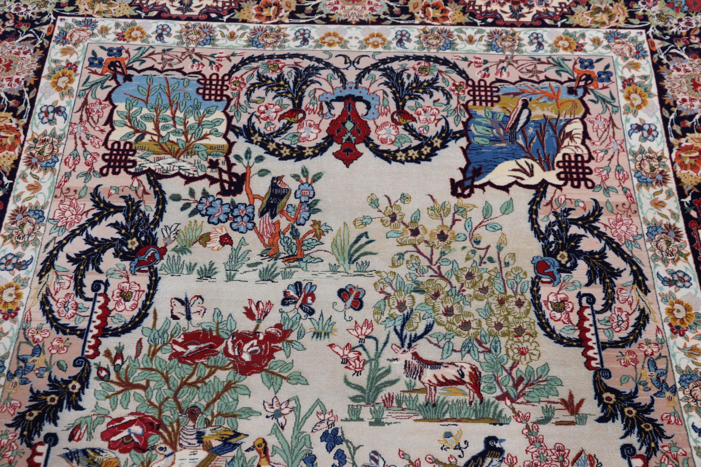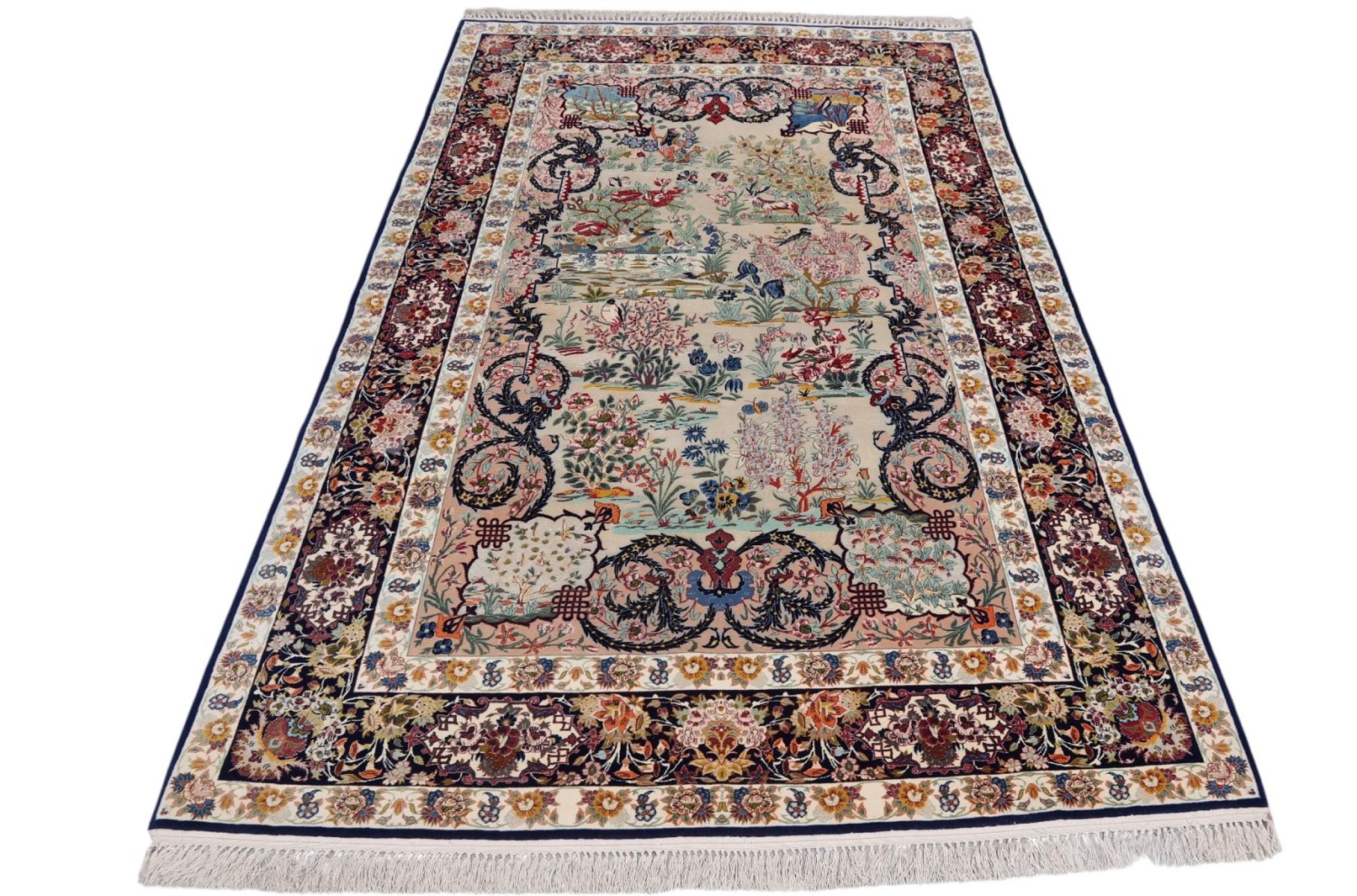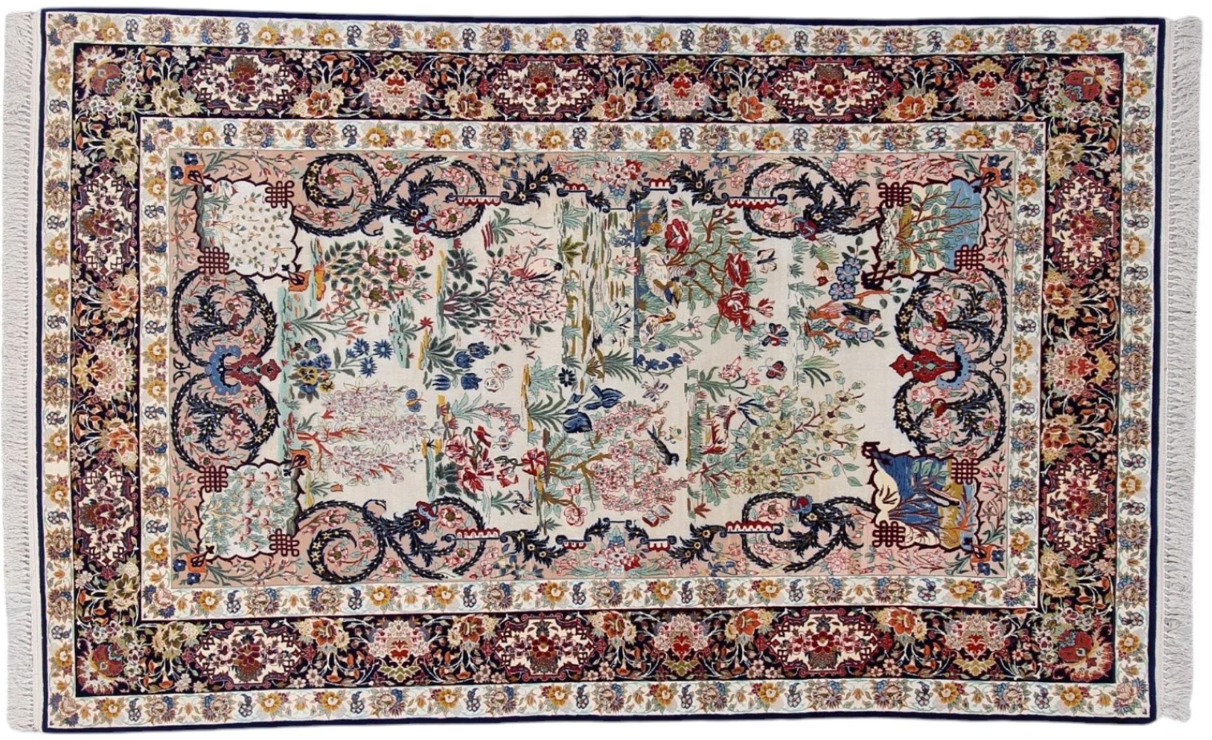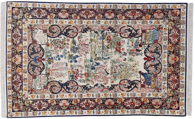 Alfombra número: 278621007157317 Tamaño: 241x151 cm Espesor: alrededor de 5 mm Nudos: 750 000 / m² Elaboración: Anudado a mano Crespón: Lana con seda Urdimbre: Seda Origen: Persia / Iran Edad: Nuevo Peso: alrededor de 13 kg Cantidad en stock: Única - Solo 1 en stock