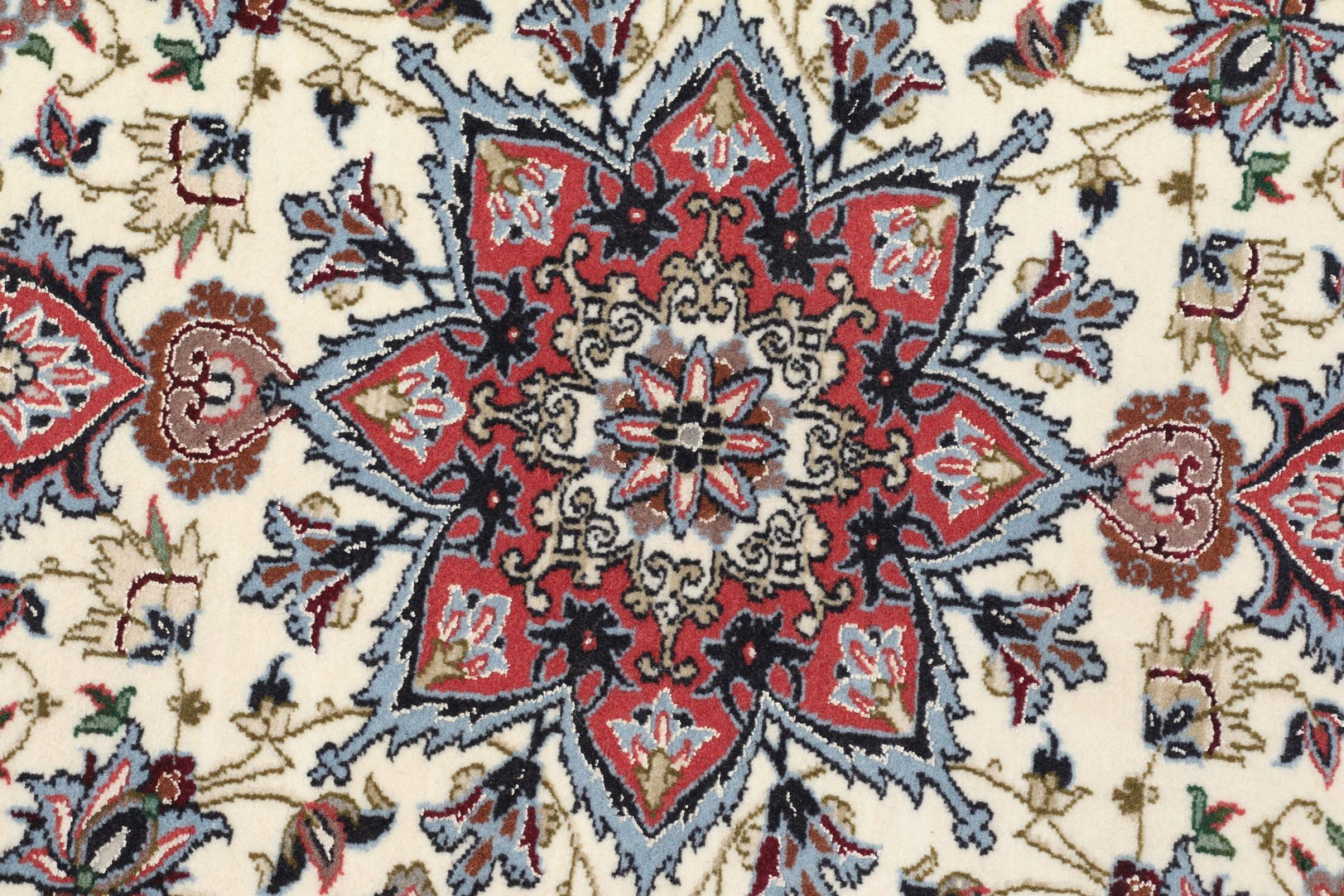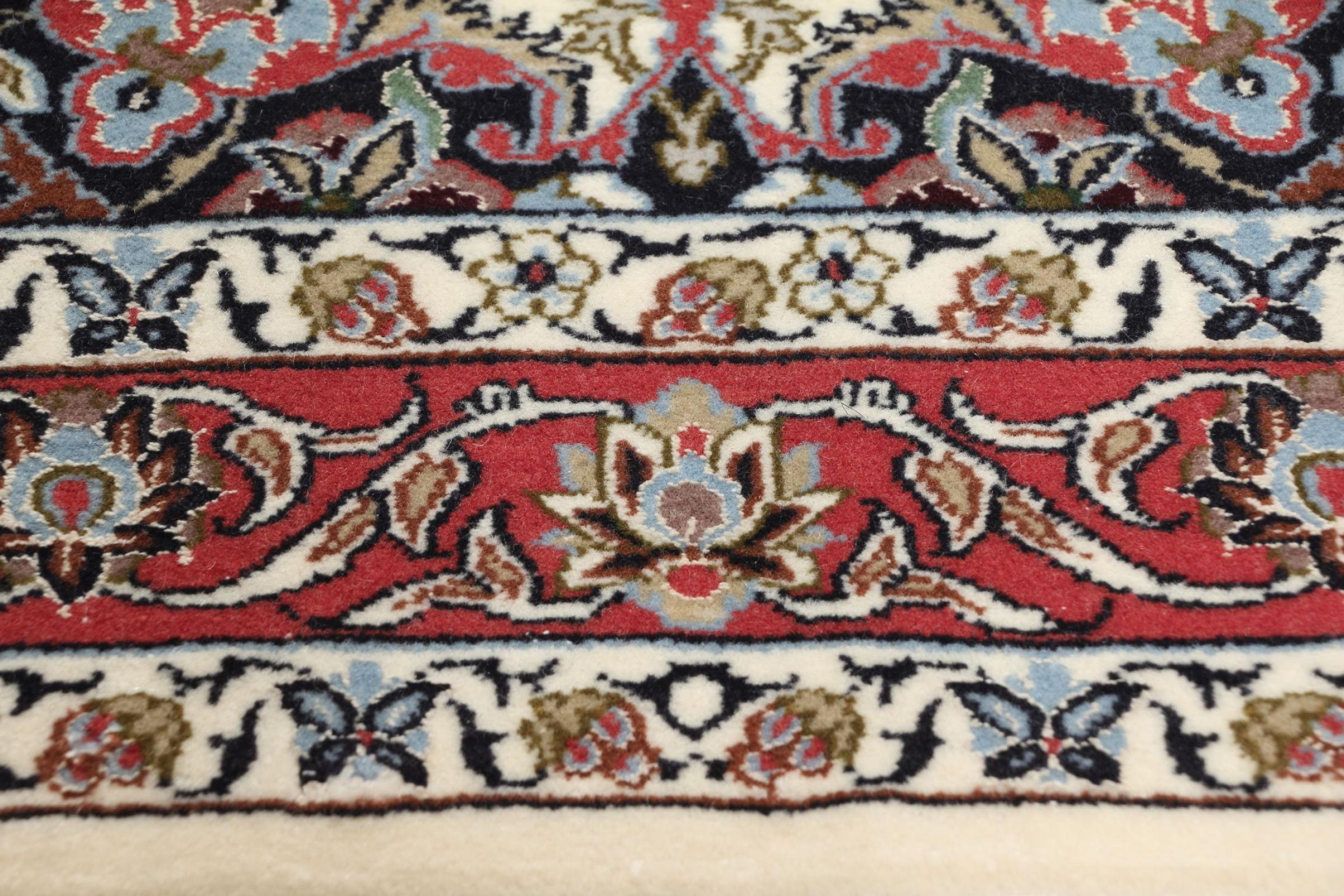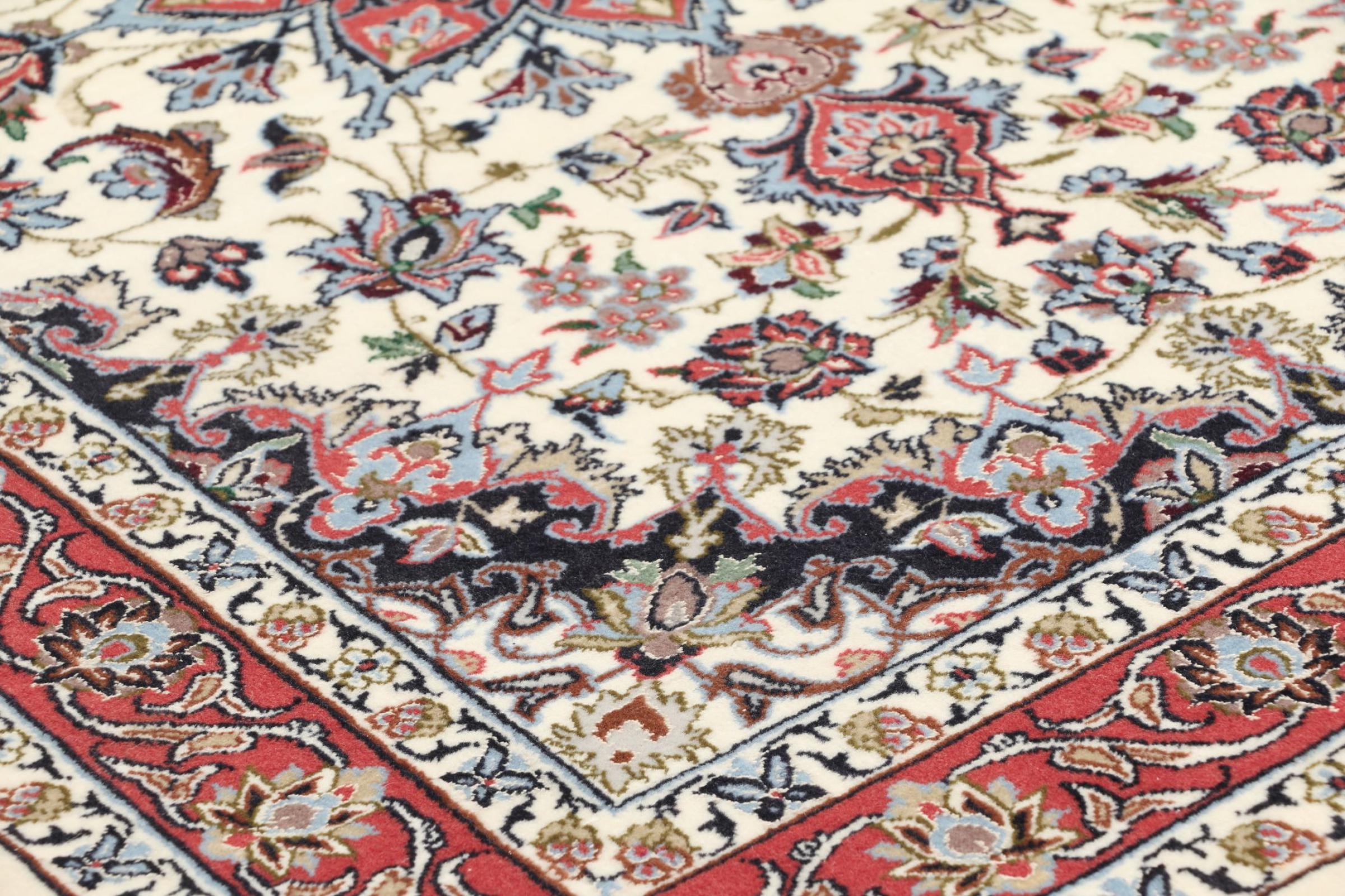 Esta alfombra de Ispahán está hecha con el arte del anudado más tradicional y elevado. Está magistralmente elaborada y decorada con fascinantes ornamentos. La alfombra persa fue anudada a mano en Isfahan, probablemente la ciudad más bella de Irán, a partir de los hilos más finos. Las alfombras de Isfahán se encuentran entre las persas más valiosas y pueden ser una verdadera inversión.