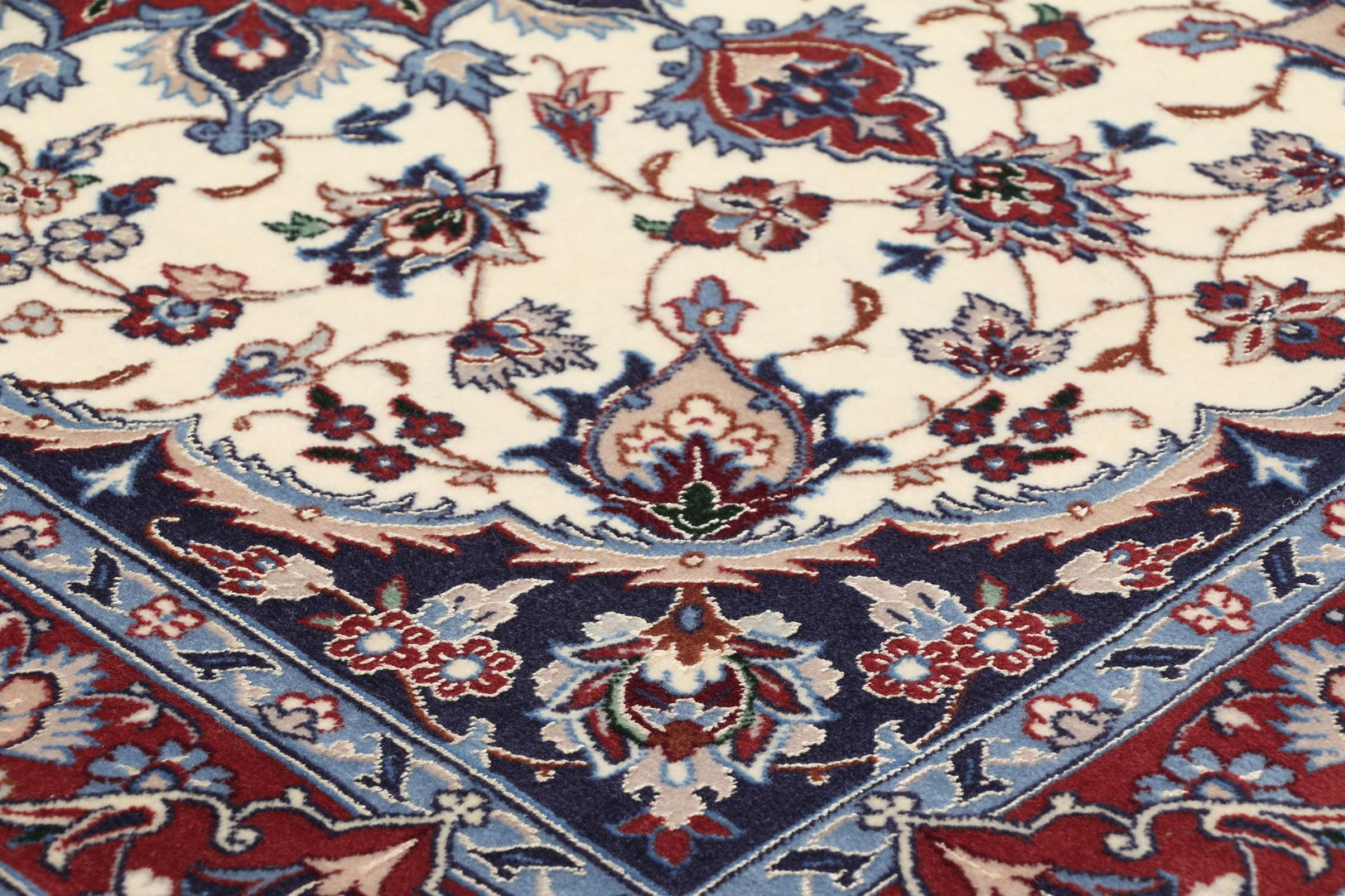 Esta alfombra de Ispahán está hecha con el arte del anudado más tradicional y elevado. Está magistralmente elaborada y decorada con fascinantes ornamentos. La alfombra persa fue anudada a mano en Isfahan, probablemente la ciudad más bella de Irán, a partir de los hilos más finos. Las alfombras de Isfahán se encuentran entre las persas más valiosas y pueden ser una verdadera inversión.
