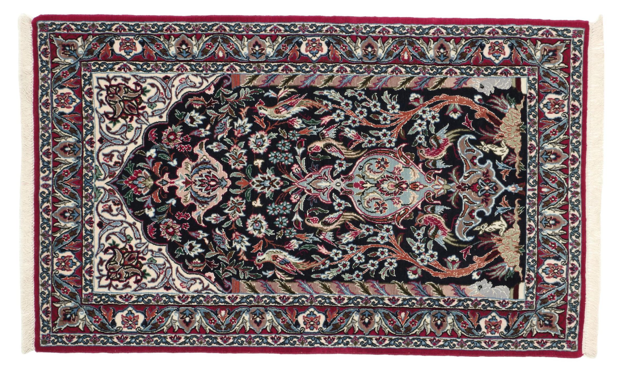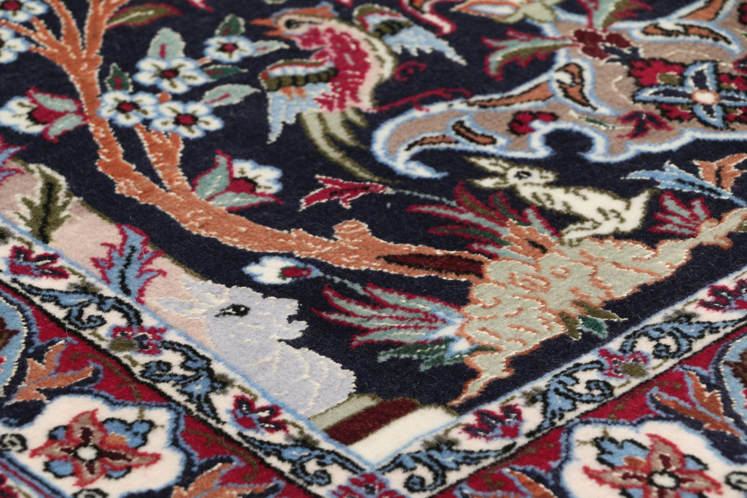 Esta alfombra de Ispahán está hecha con el arte del anudado más tradicional y elevado. Está magistralmente elaborada y decorada con fascinantes ornamentos. La alfombra persa fue anudada a mano en Isfahan, probablemente la ciudad más bella de Irán, a partir de los hilos más finos. Las alfombras de Isfahán se encuentran entre las persas más valiosas y pueden ser una verdadera inversión.