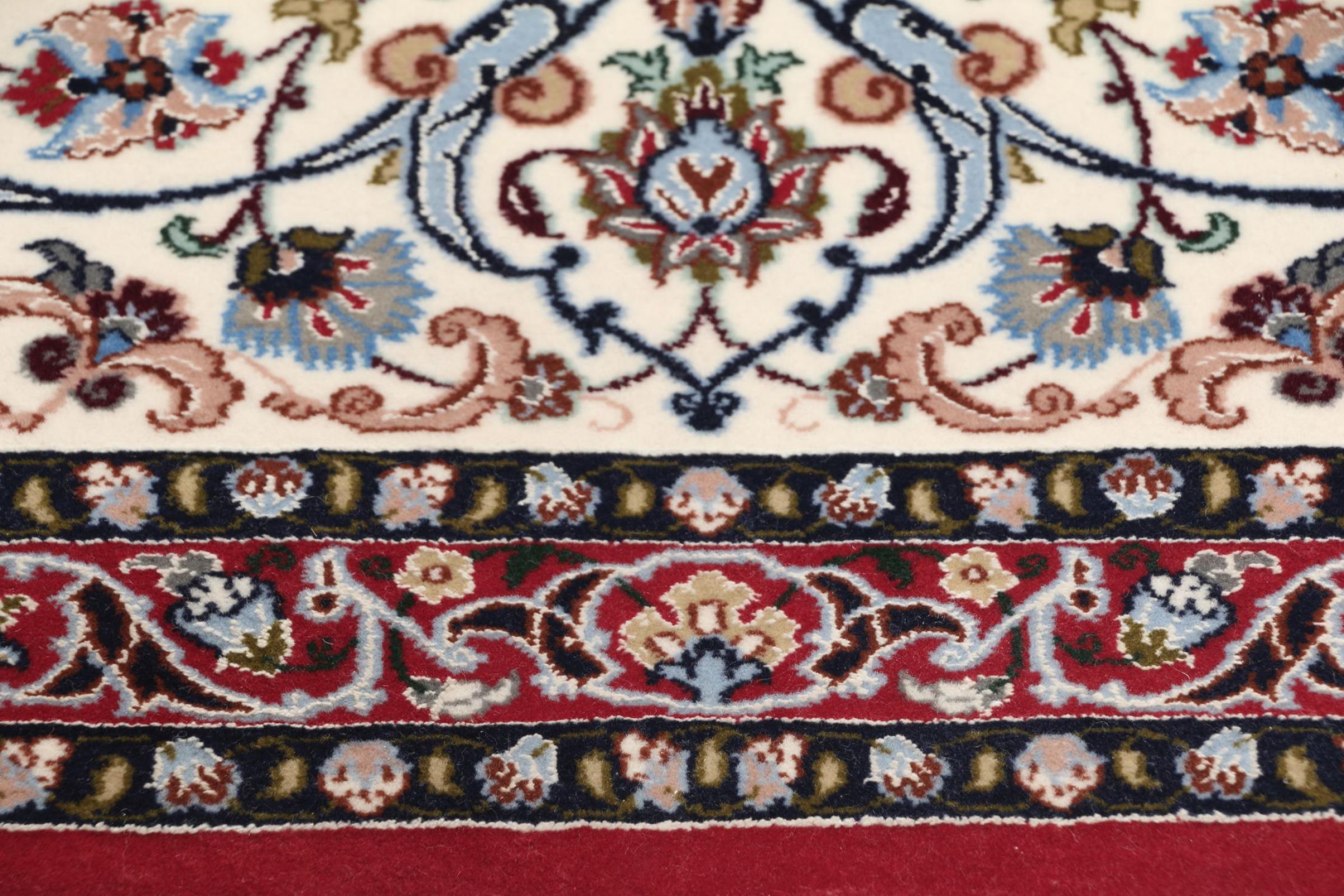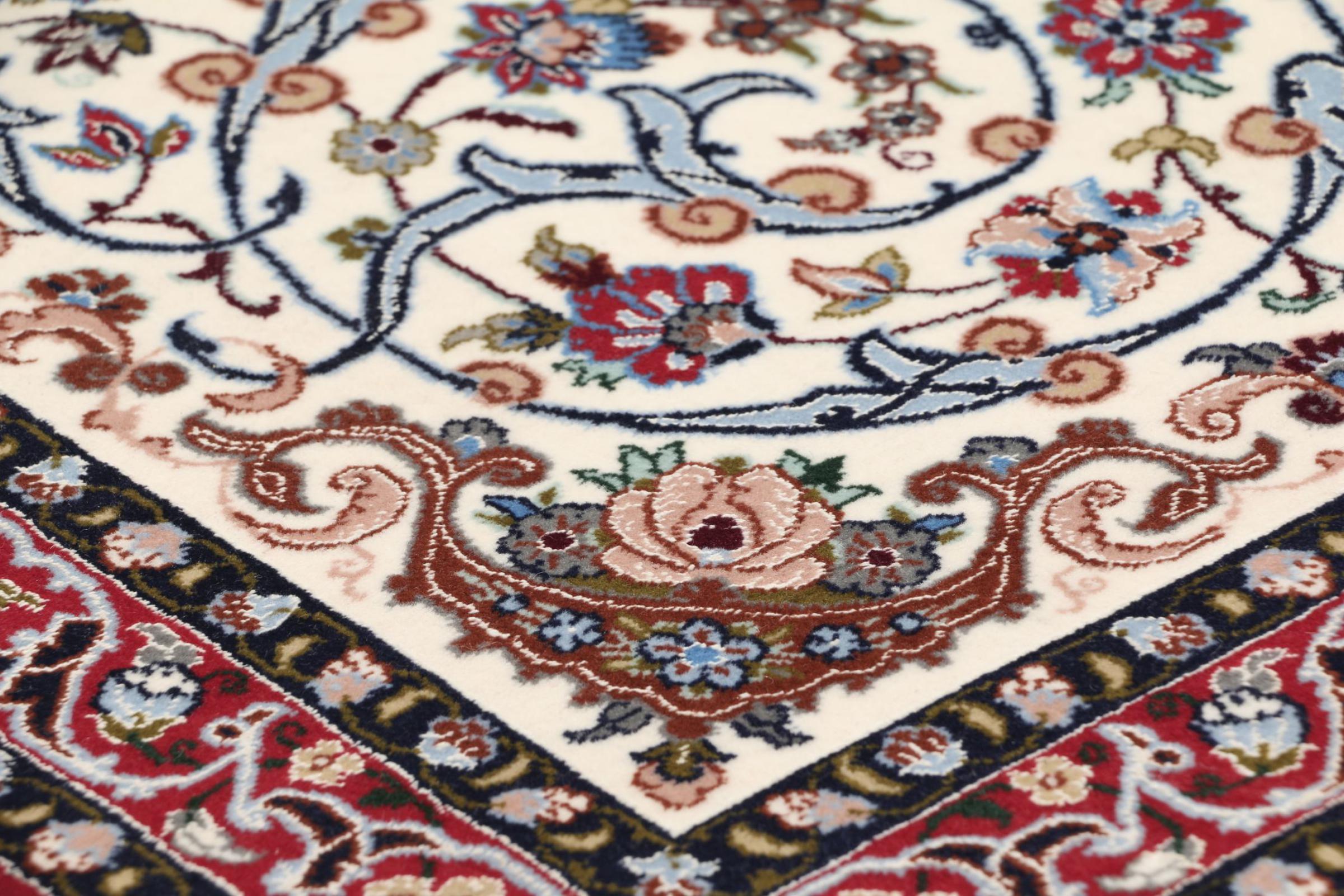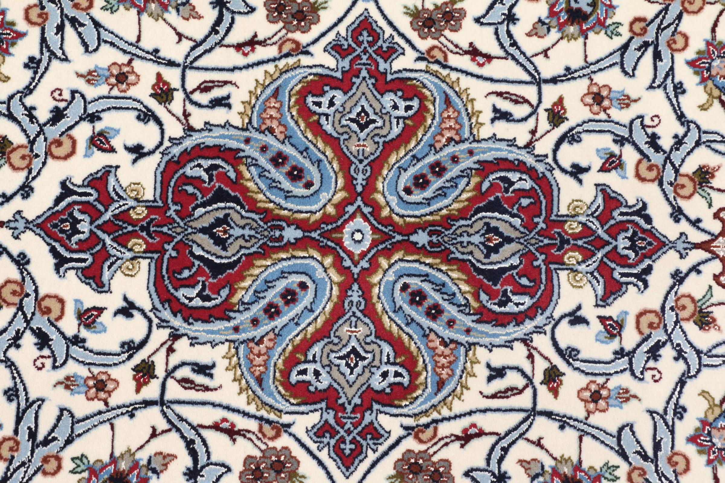 Esta alfombra de Ispahán está hecha con el arte del anudado más tradicional y elevado. Está magistralmente elaborada y decorada con fascinantes ornamentos. La alfombra persa fue anudada a mano en Isfahan, probablemente la ciudad más bella de Irán, a partir de los hilos más finos. Las alfombras de Isfahán se encuentran entre las persas más valiosas y pueden ser una verdadera inversión.