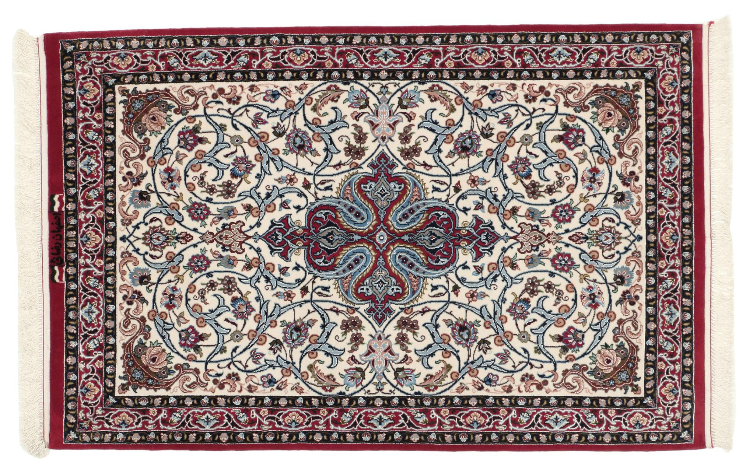 Las alfombras de esta ciudad pertenecen a las probablemente más valiosas alfombras persas anudadas a mano en todo el mundo. Las alfombras muy finas de Isfahán provienen de los estudios de maestros tejedores de fama mundial que logran una densidad de nudos de más de un millón de nudos por metro cuadrado. Poseer un Isfahan significa tener una alfombra persa de arte de anudar largo y alto. El diseño de estas alfombras se inspira en gran medida en las impresionantes mezquitas y plazas de la ciudad del mismo nombre.