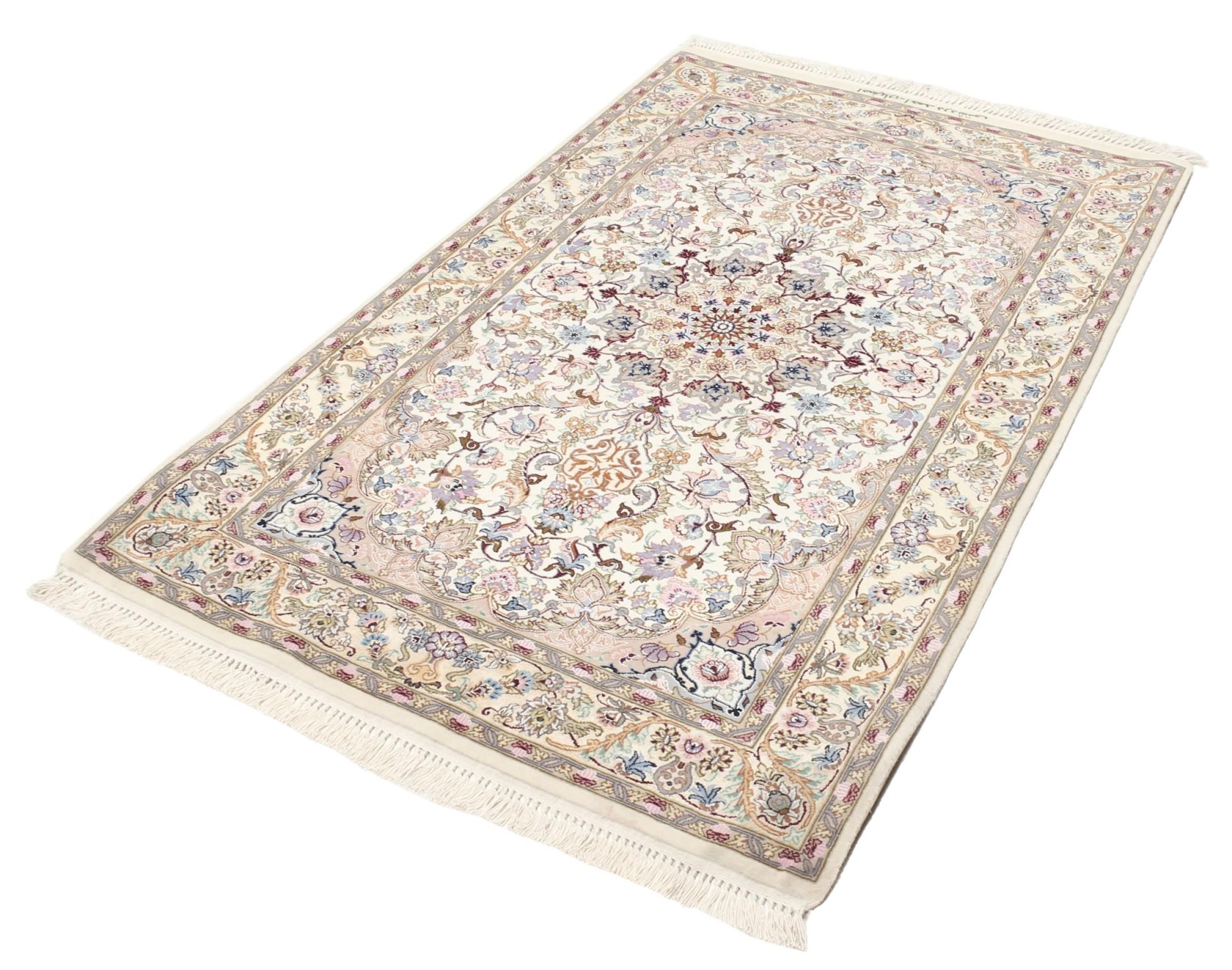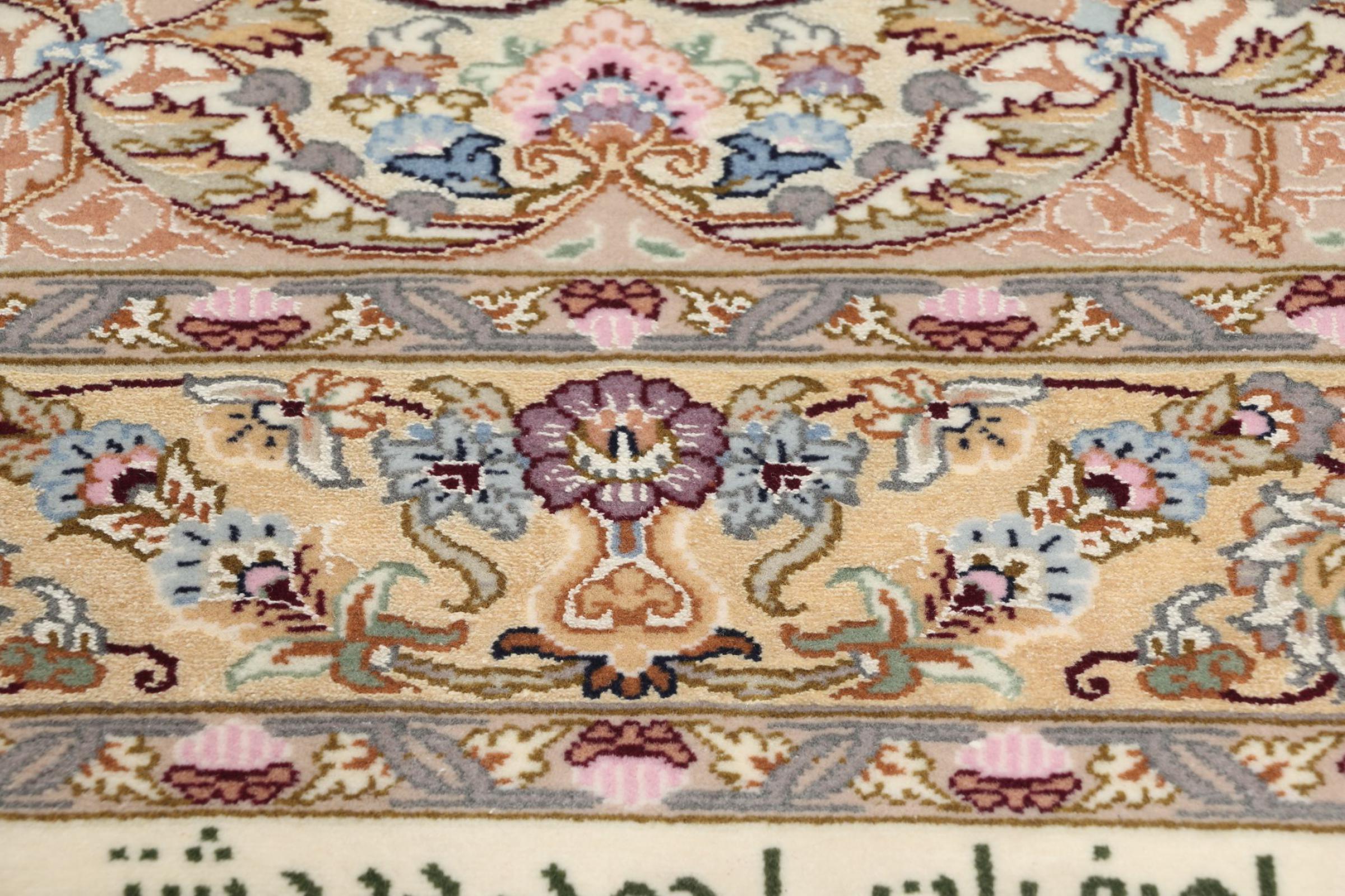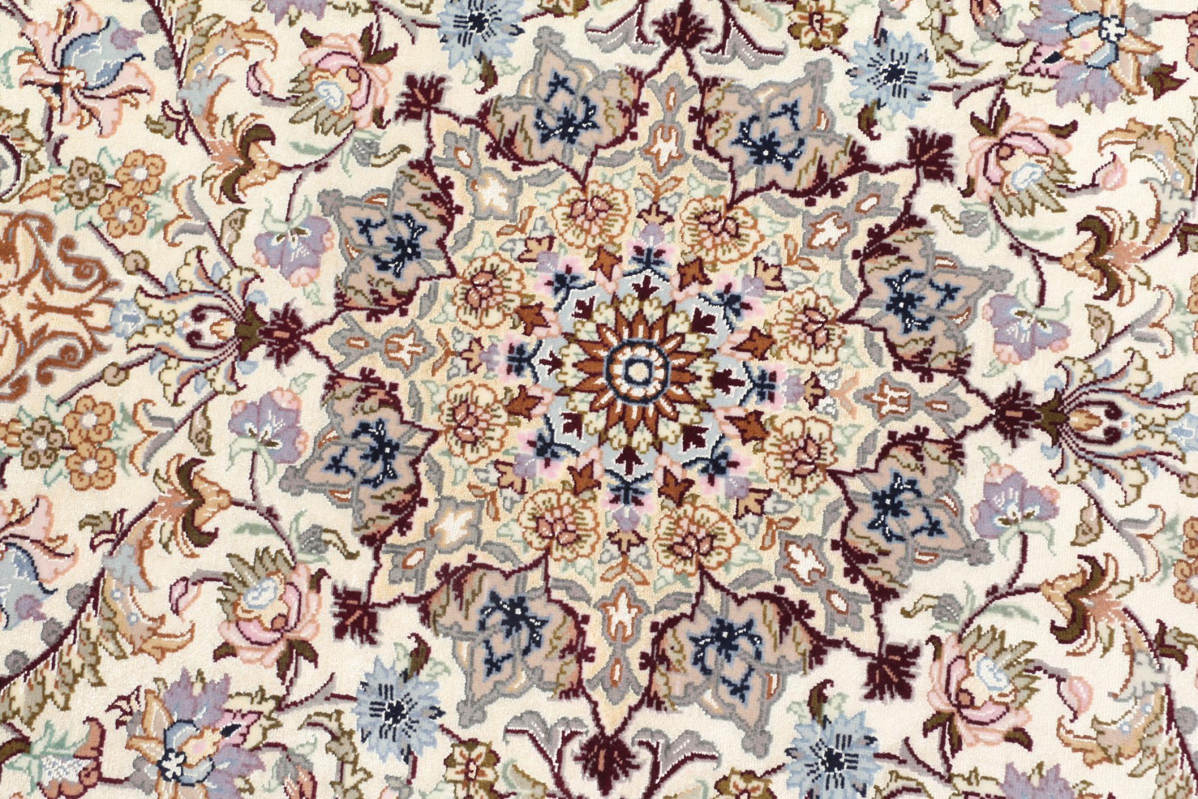 Alfombra número: 309304007343452 Tamaño: 139x89 cm Espesor: alrededor de 6 mm Nudos: 810 000 / m² Elaboración: Anudado a mano Crespón: Lana con seda Urdimbre: Seda Origen: Persia / Iran Edad: Nuevo Peso: alrededor de 4 kg Cantidad en stock: Única - Solo 1 en stock