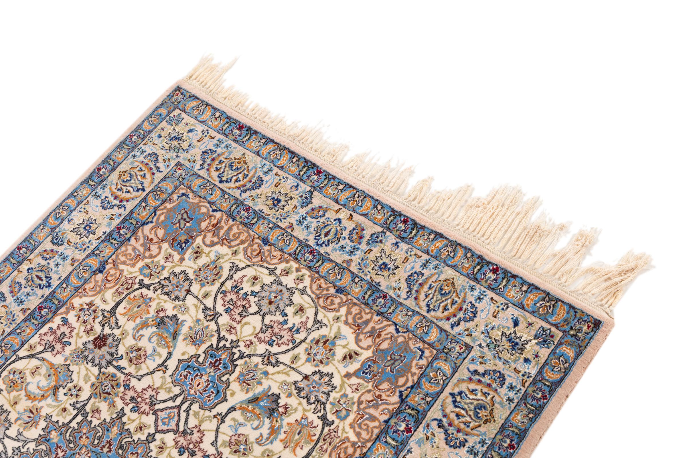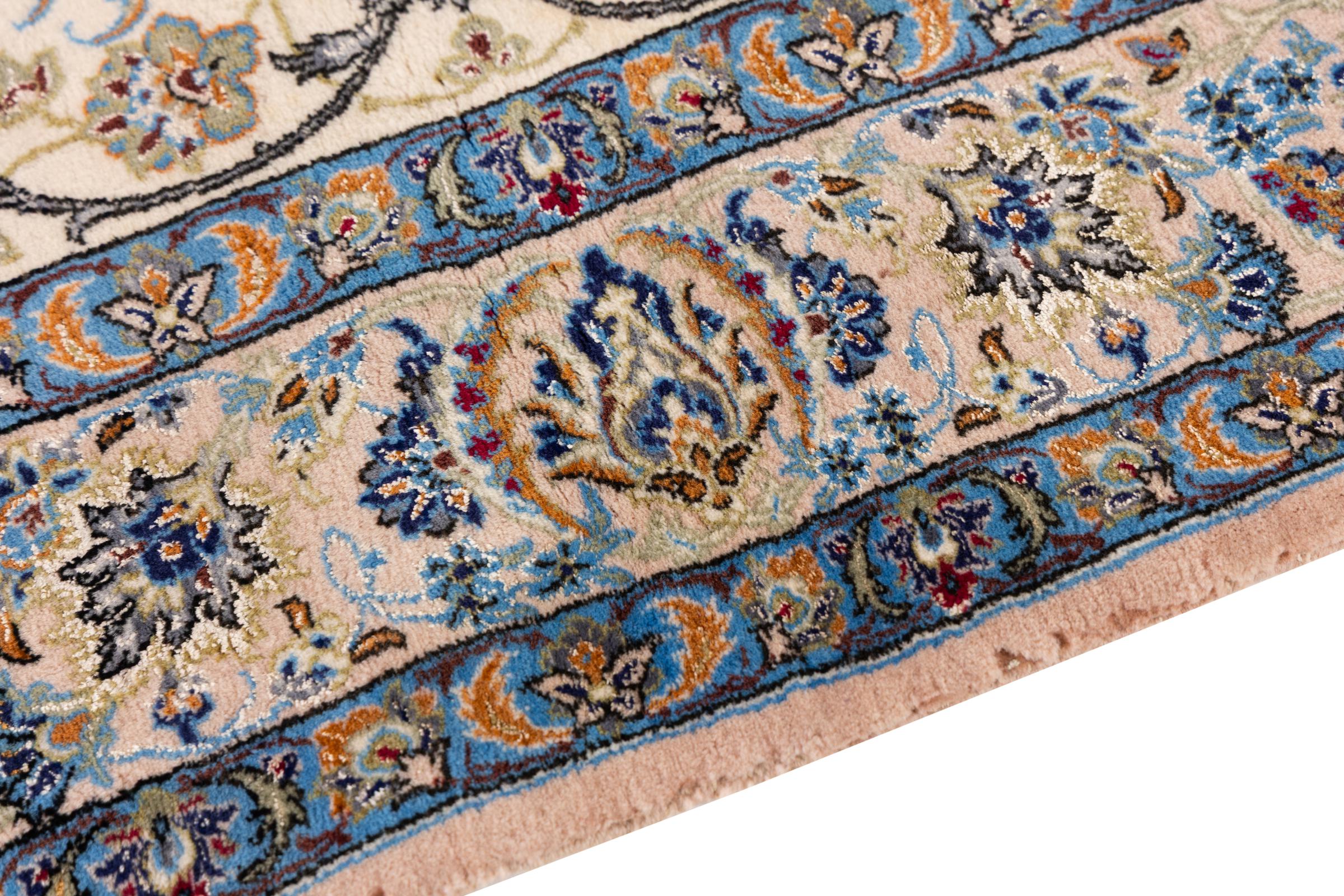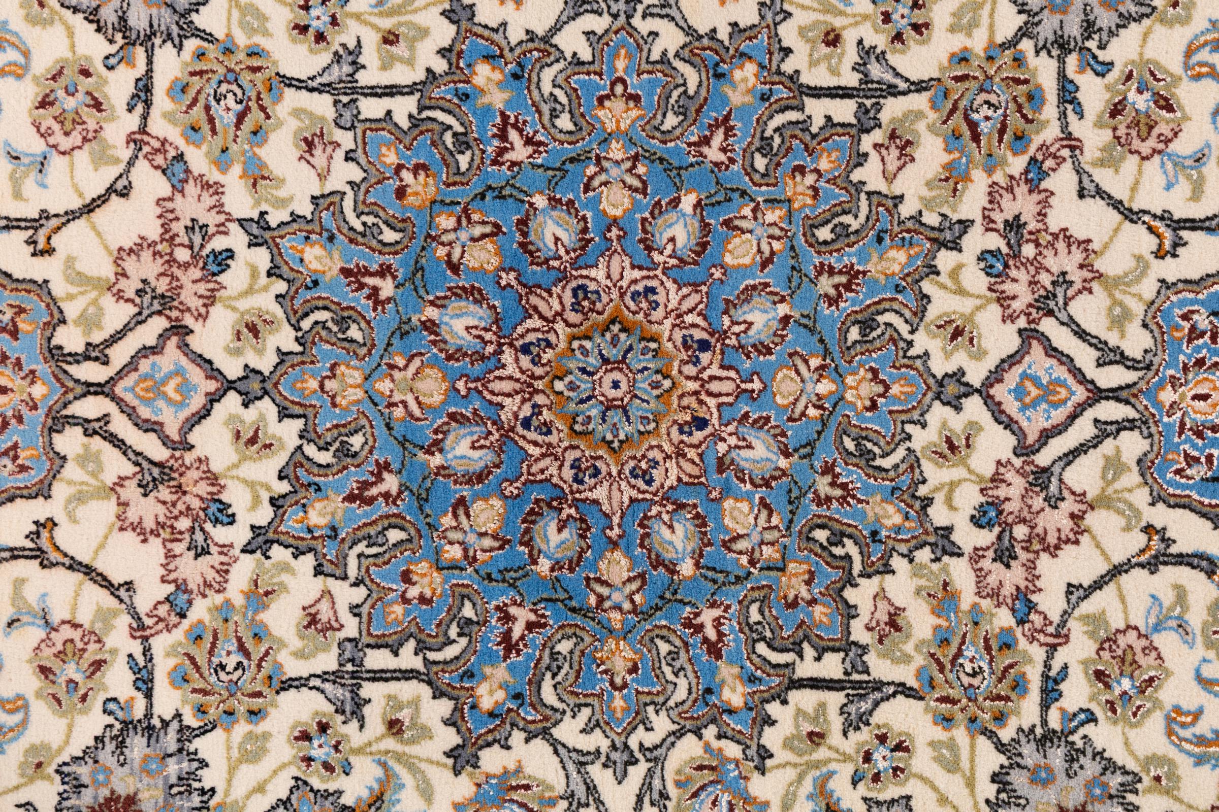 Esta alfombra de Ispahán está hecha con el arte del anudado más tradicional y elevado. Está magistralmente elaborada y decorada con fascinantes ornamentos. La alfombra persa fue anudada a mano en Isfahan, probablemente la ciudad más bella de Irán, a partir de los hilos más finos. Las alfombras de Isfahán se encuentran entre las persas más valiosas y pueden ser una verdadera inversión.