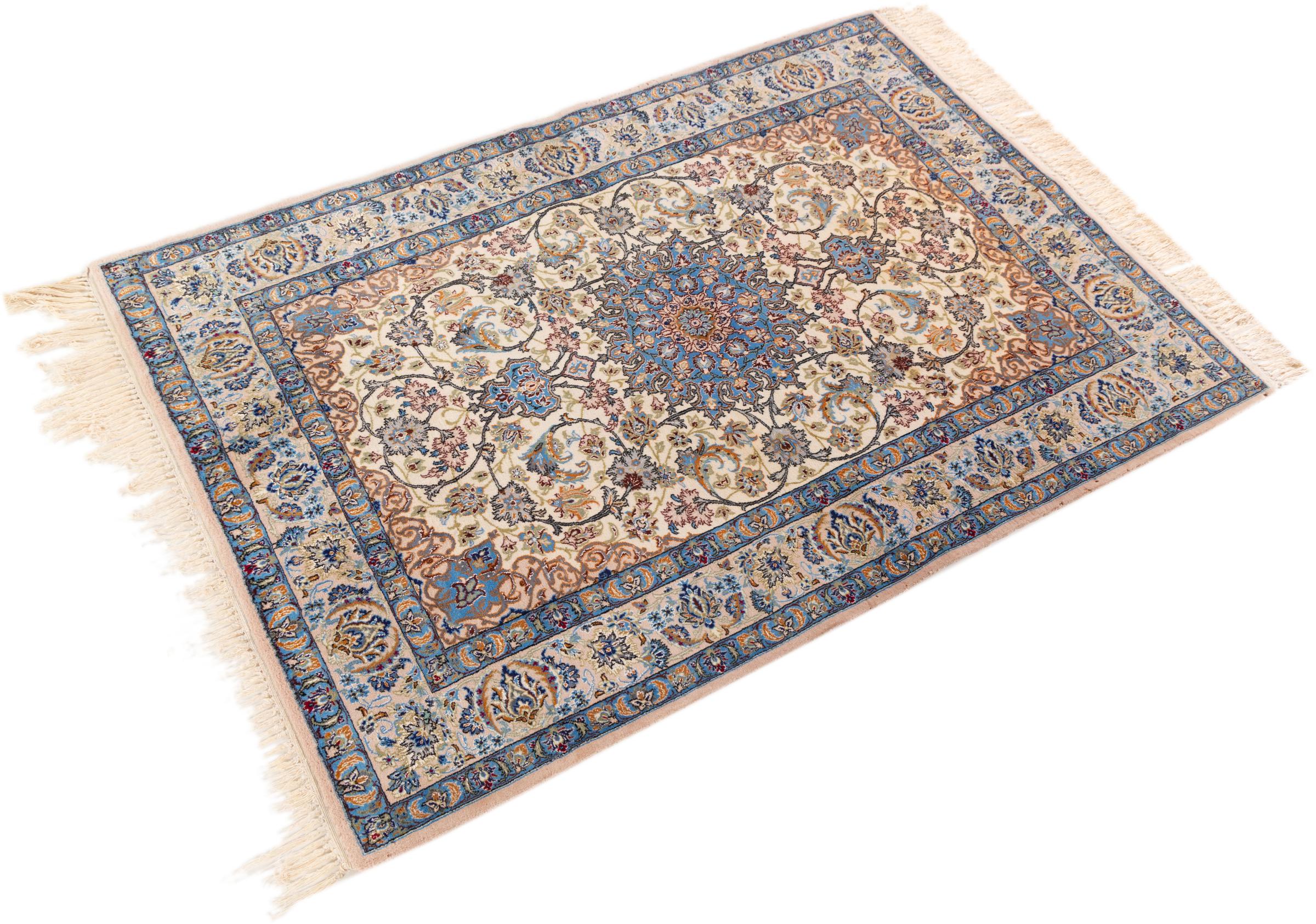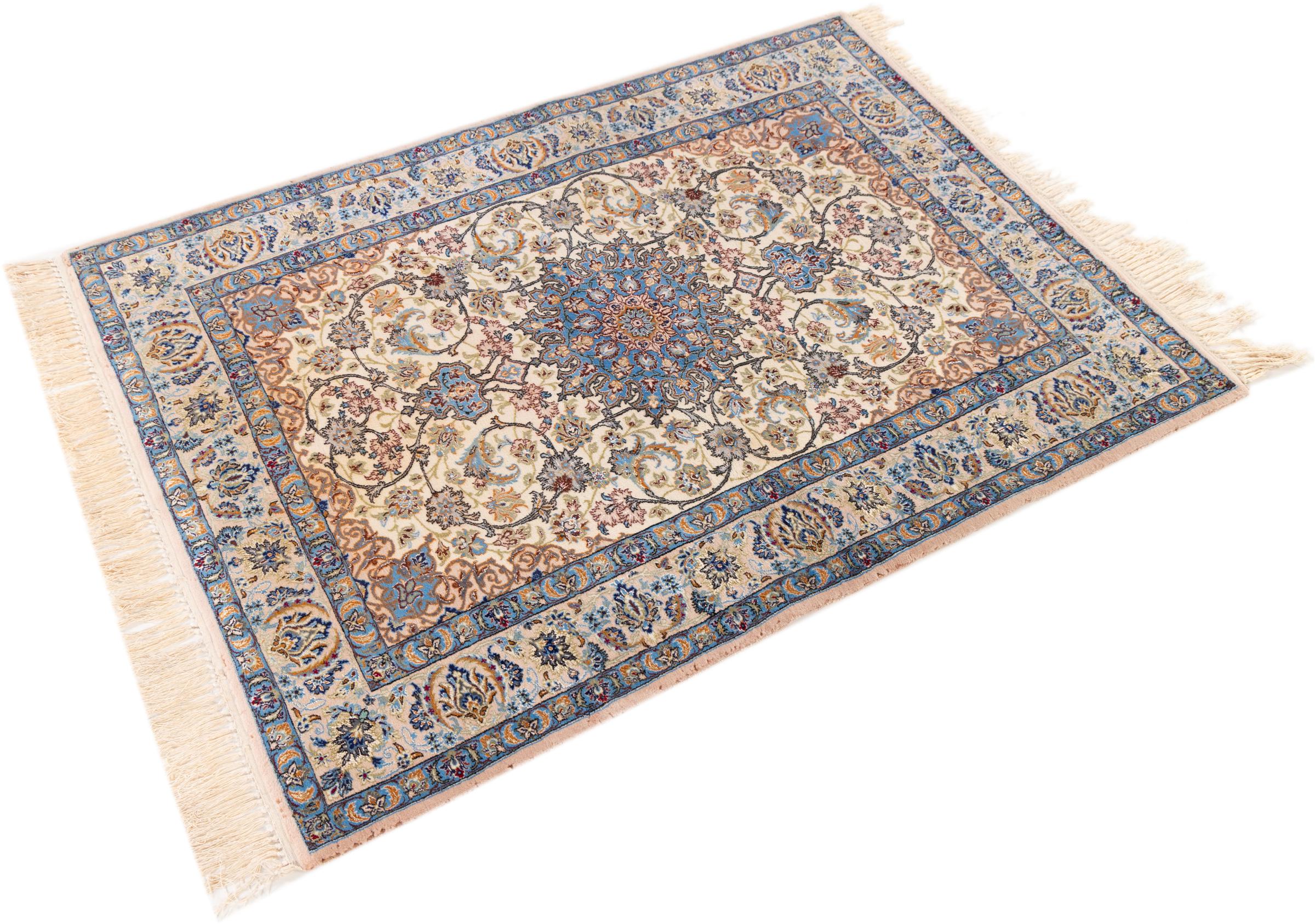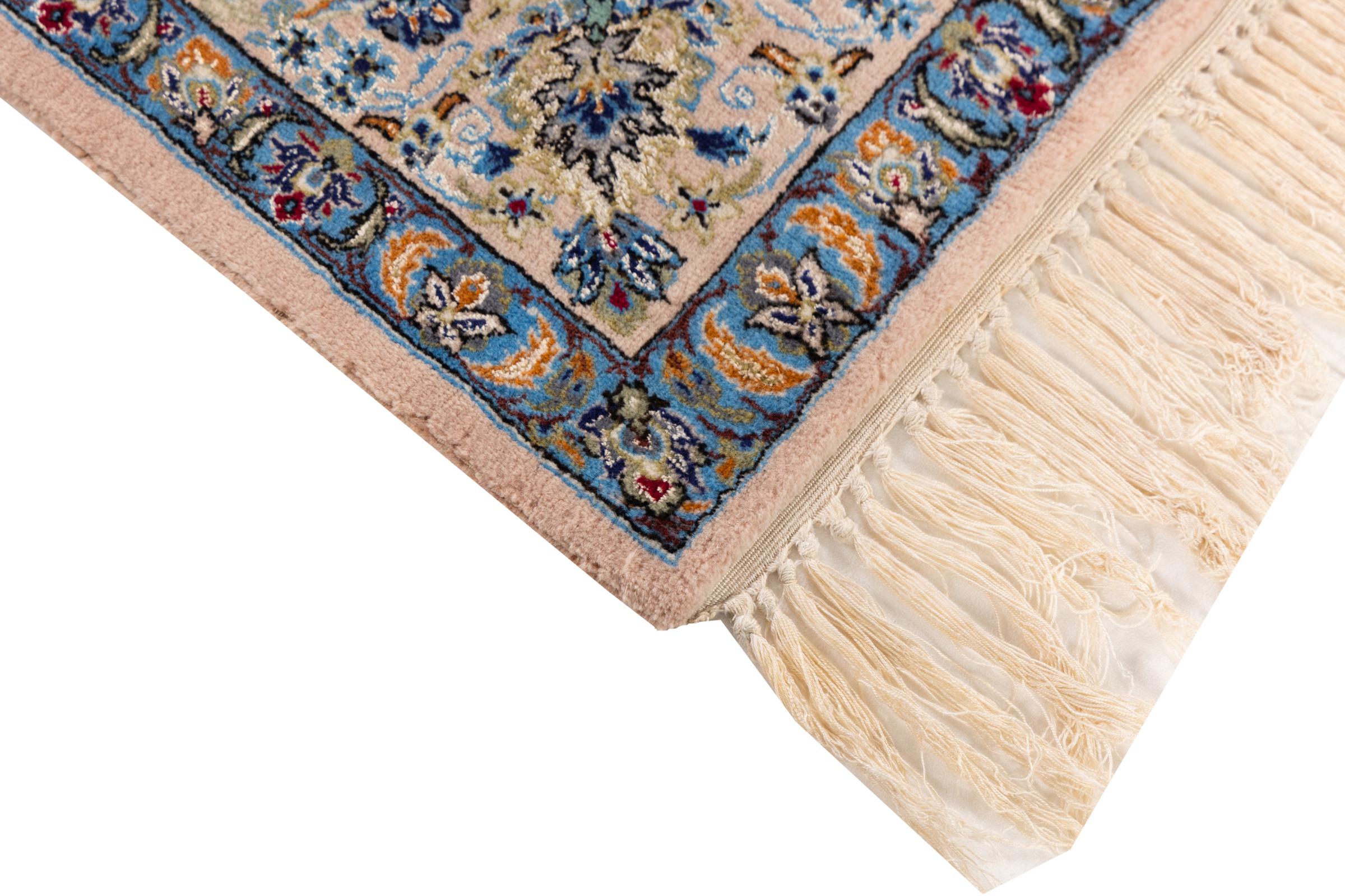 Esta alfombra de Ispahán está hecha con el arte del anudado más tradicional y elevado. Está magistralmente elaborada y decorada con fascinantes ornamentos. La alfombra persa fue anudada a mano en Isfahan, probablemente la ciudad más bella de Irán, a partir de los hilos más finos. Las alfombras de Isfahán se encuentran entre las persas más valiosas y pueden ser una verdadera inversión.