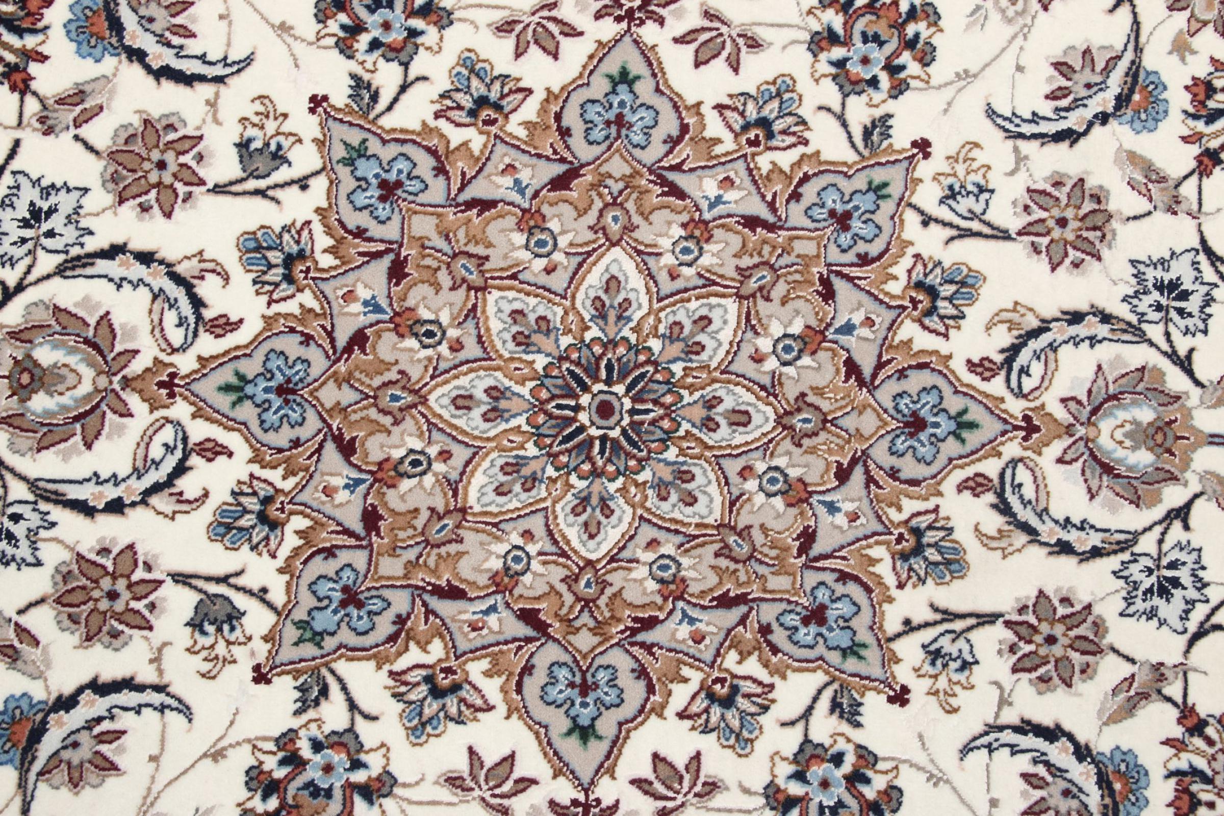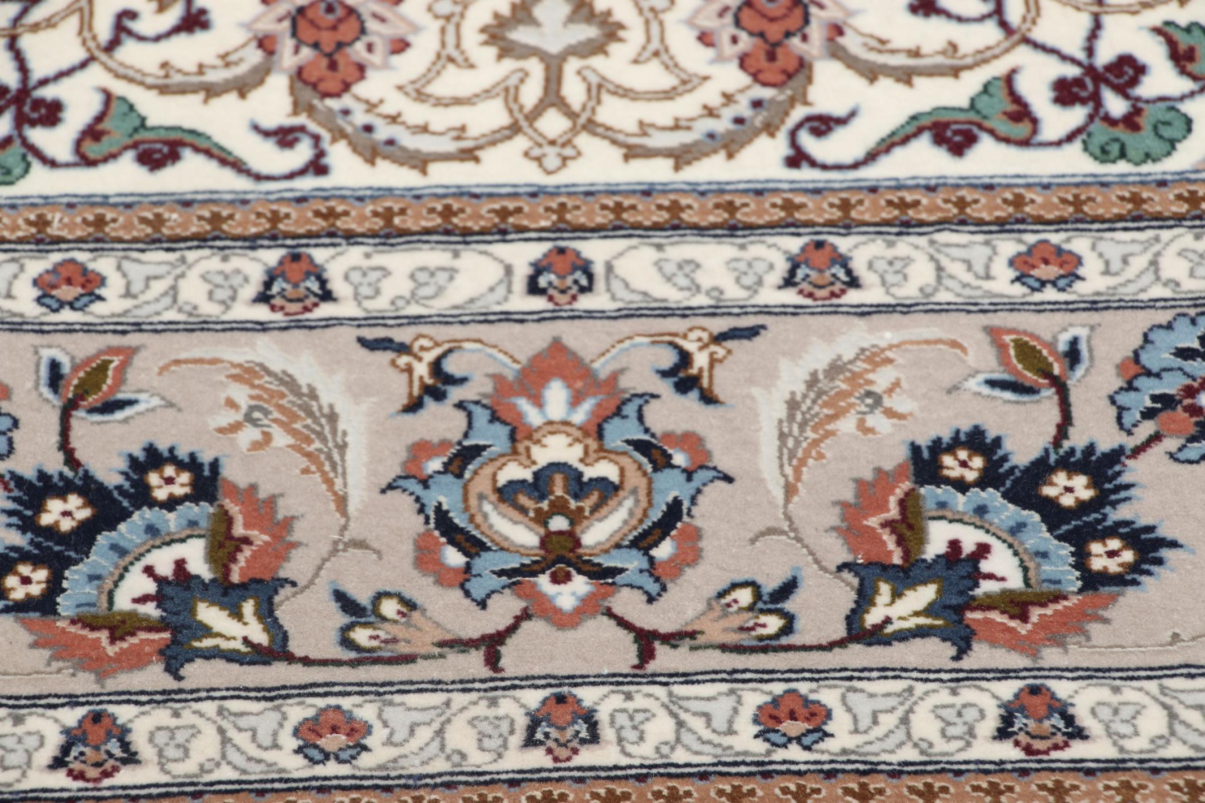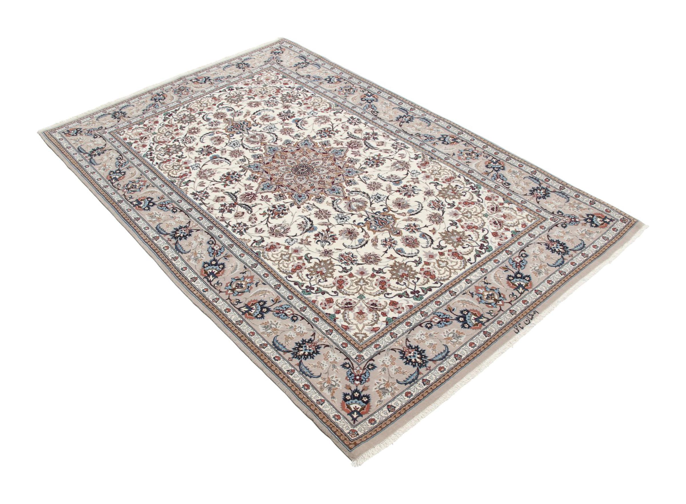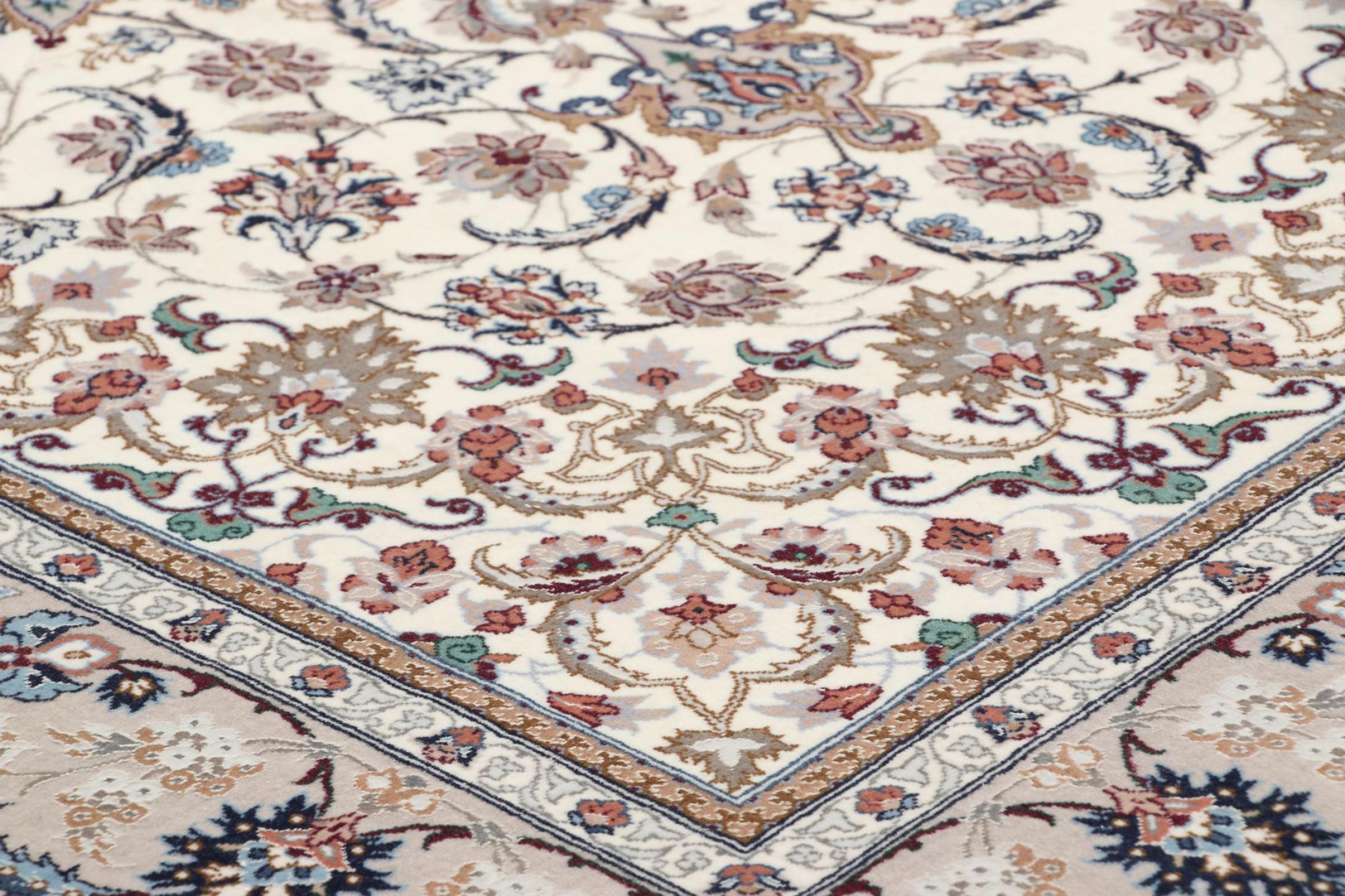 Esta alfombra de Ispahán está hecha con el arte del anudado más tradicional y elevado. Está magistralmente elaborada y decorada con fascinantes ornamentos. La alfombra persa fue anudada a mano en Isfahan, probablemente la ciudad más bella de Irán, a partir de los hilos más finos. Las alfombras de Isfahán se encuentran entre las persas más valiosas y pueden ser una verdadera inversión.