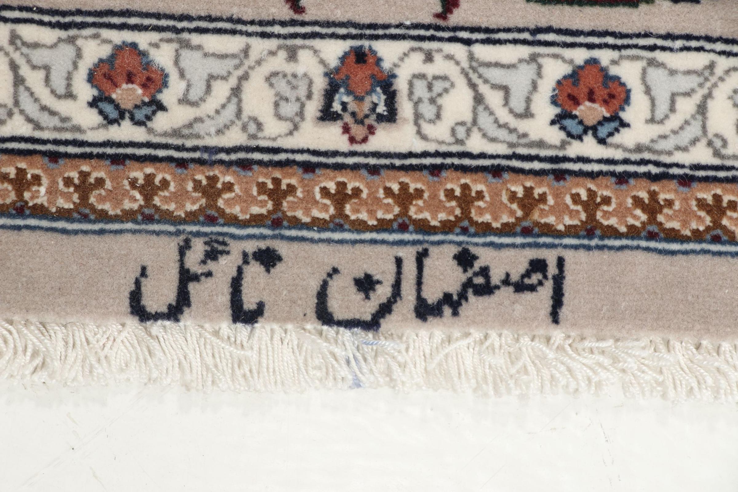 Las alfombras de esta ciudad pertenecen a las probablemente más valiosas alfombras persas anudadas a mano en todo el mundo. Las alfombras muy finas de Isfahán provienen de los estudios de maestros tejedores de fama mundial que logran una densidad de nudos de más de un millón de nudos por metro cuadrado. Poseer un Isfahan significa tener una alfombra persa de arte de anudar largo y alto. El diseño de estas alfombras se inspira en gran medida en las impresionantes mezquitas y plazas de la ciudad del mismo nombre.
