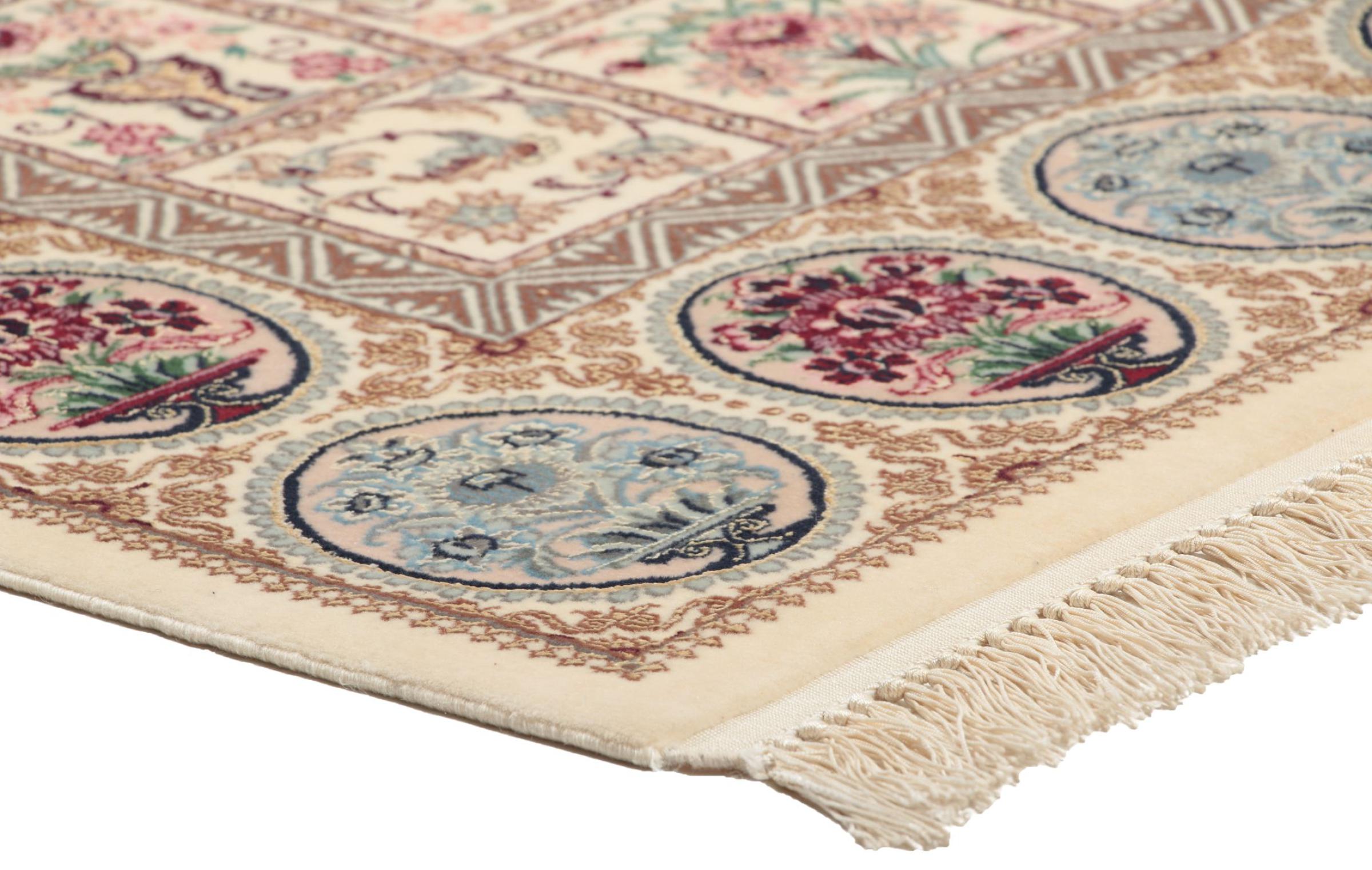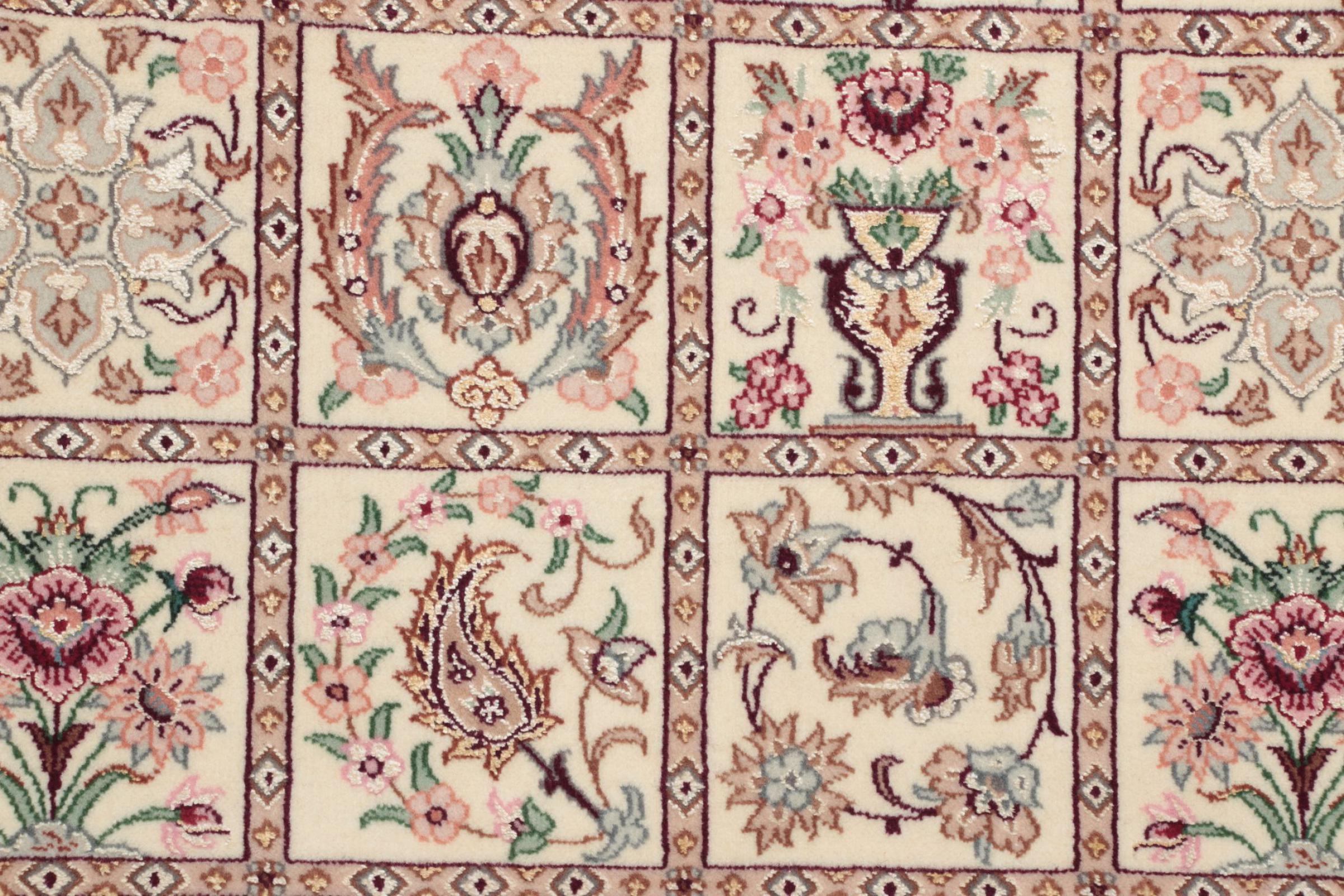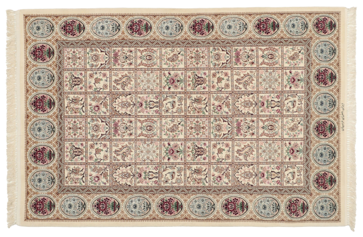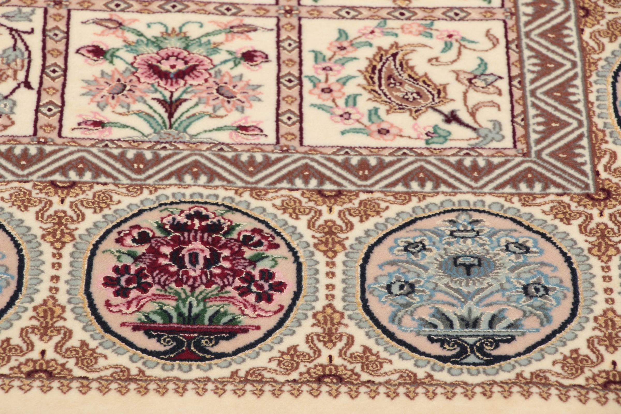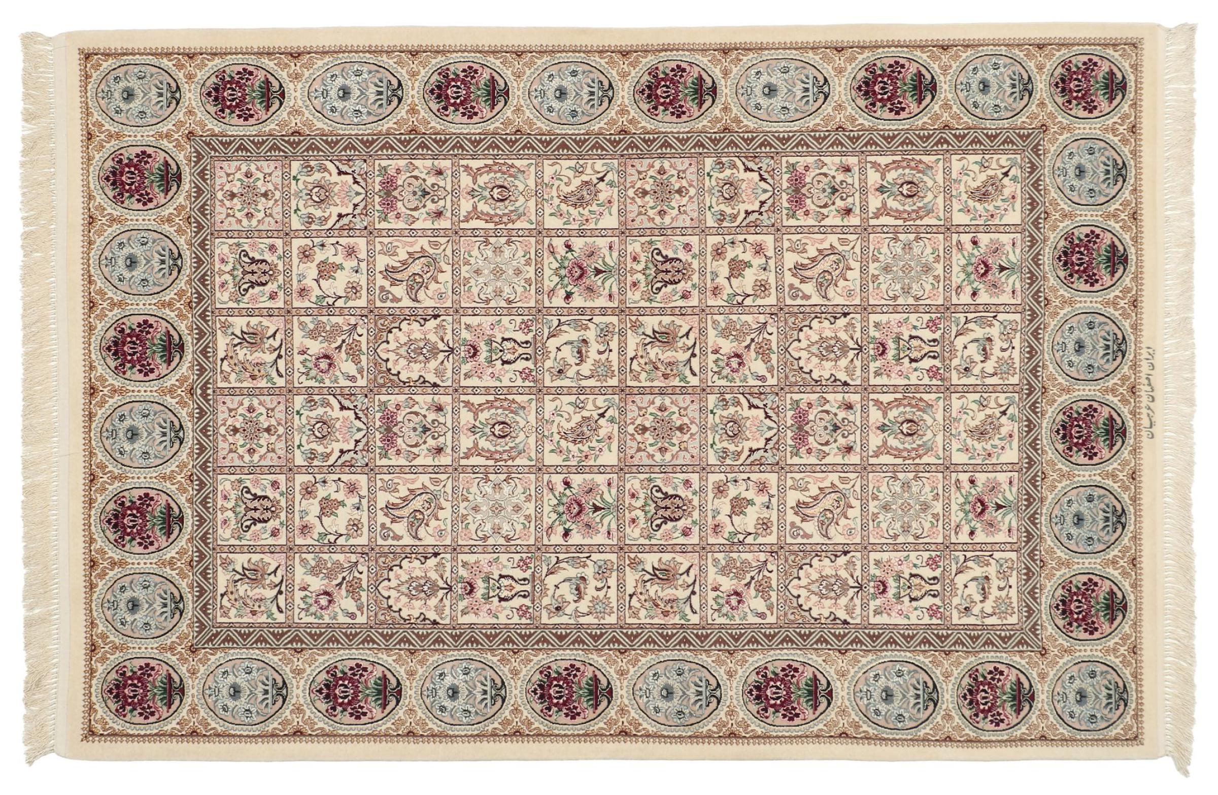 Alfombra número: 309106006627400 Tamaño: 193x132 cm Espesor: alrededor de 6 mm Nudos: 810 000 / m² Elaboración: Anudado a mano Crespón: Lana con seda Urdimbre: Seda Origen: Persia / Iran Edad: Nuevo Peso: alrededor de 8 kg Cantidad en stock: Única - Solo 1 en stock