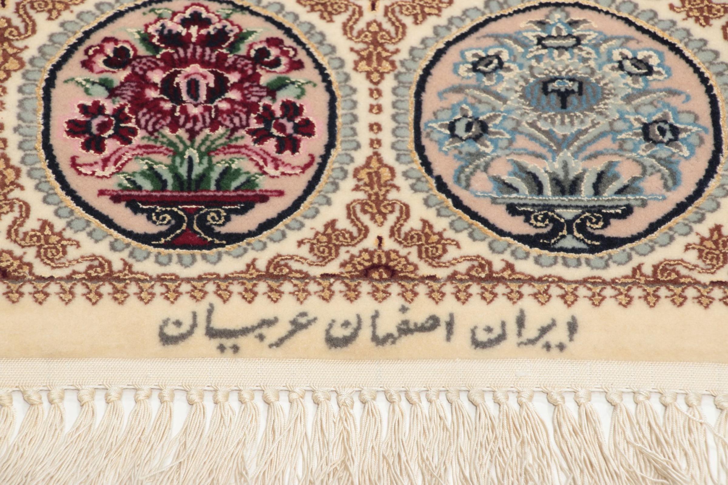 Las alfombras de esta ciudad pertenecen a las probablemente más valiosas alfombras persas anudadas a mano en todo el mundo. Las alfombras muy finas de Isfahán provienen de los estudios de maestros tejedores de fama mundial que logran una densidad de nudos de más de un millón de nudos por metro cuadrado. Poseer un Isfahan significa tener una alfombra persa de arte de anudar largo y alto. El diseño de estas alfombras se inspira en gran medida en las impresionantes mezquitas y plazas de la ciudad del mismo nombre.