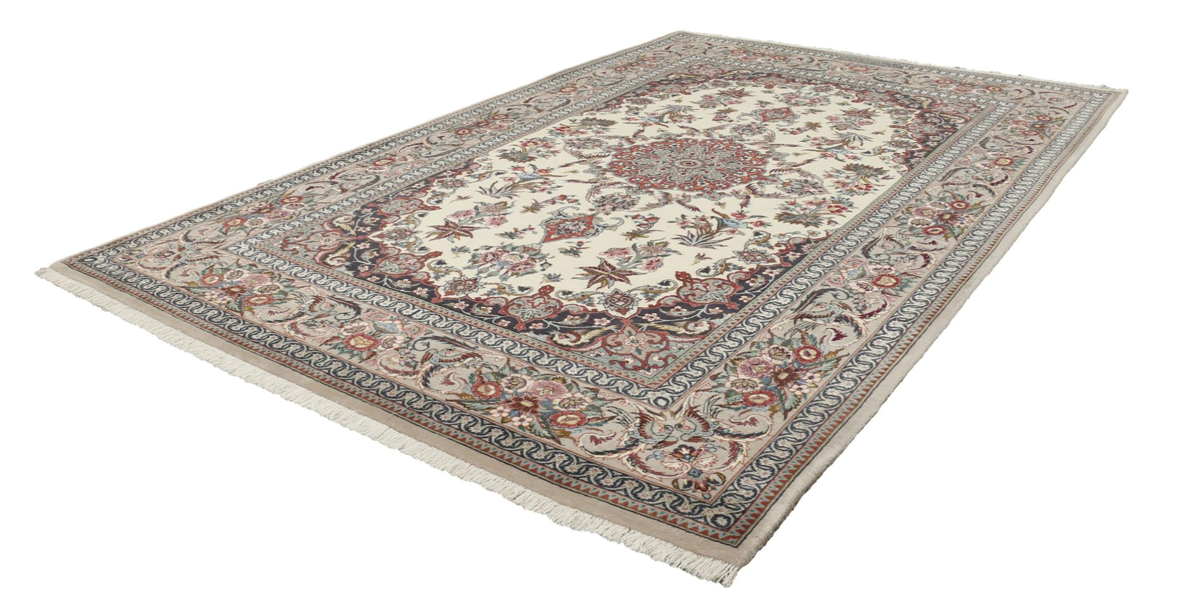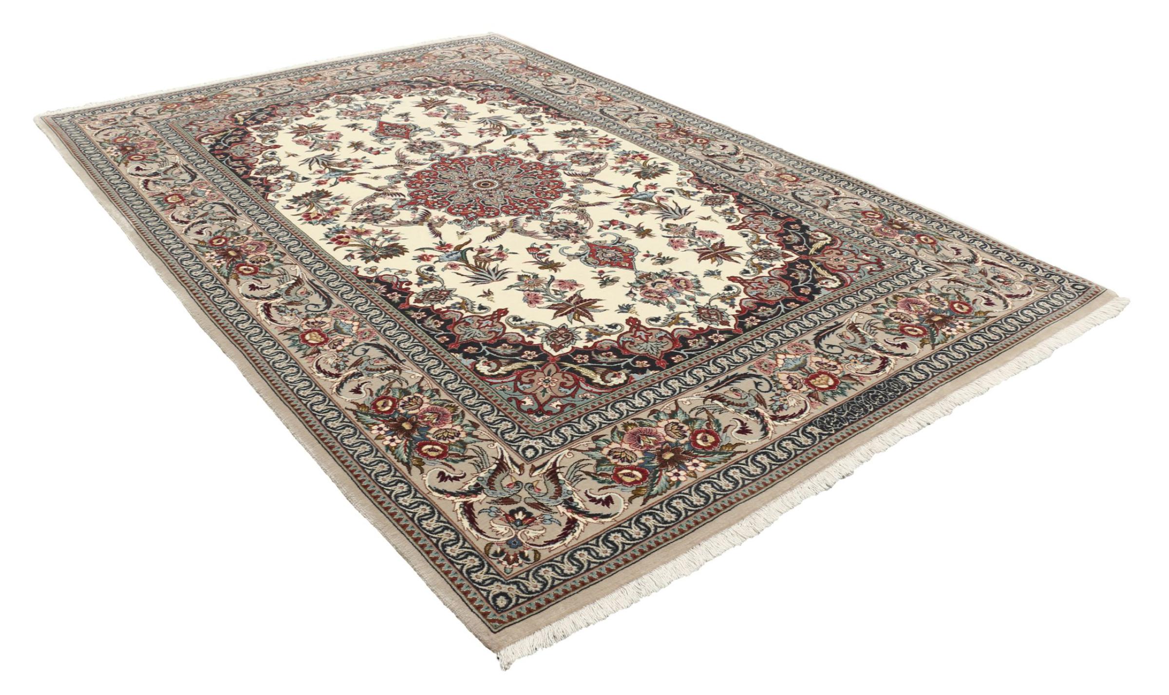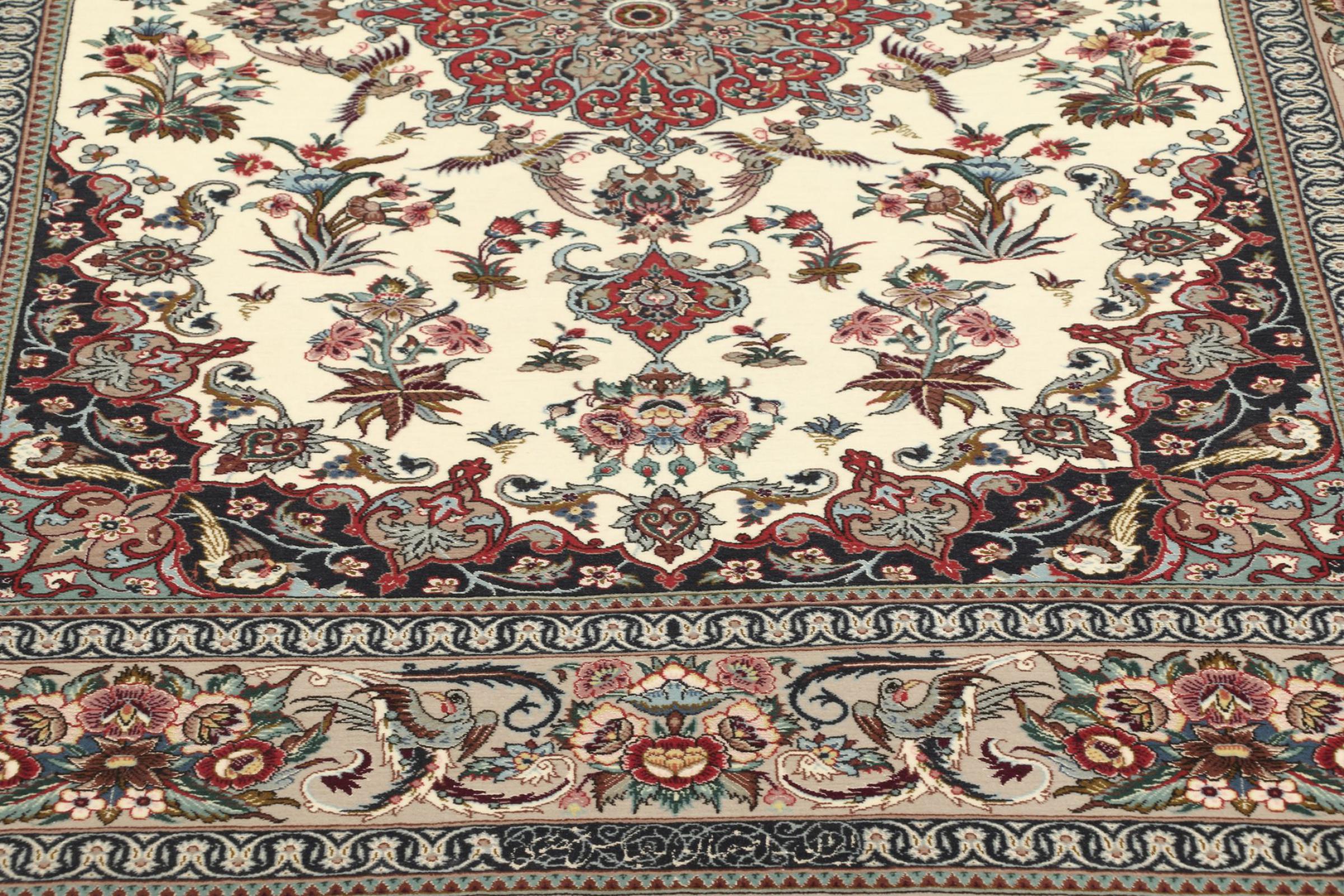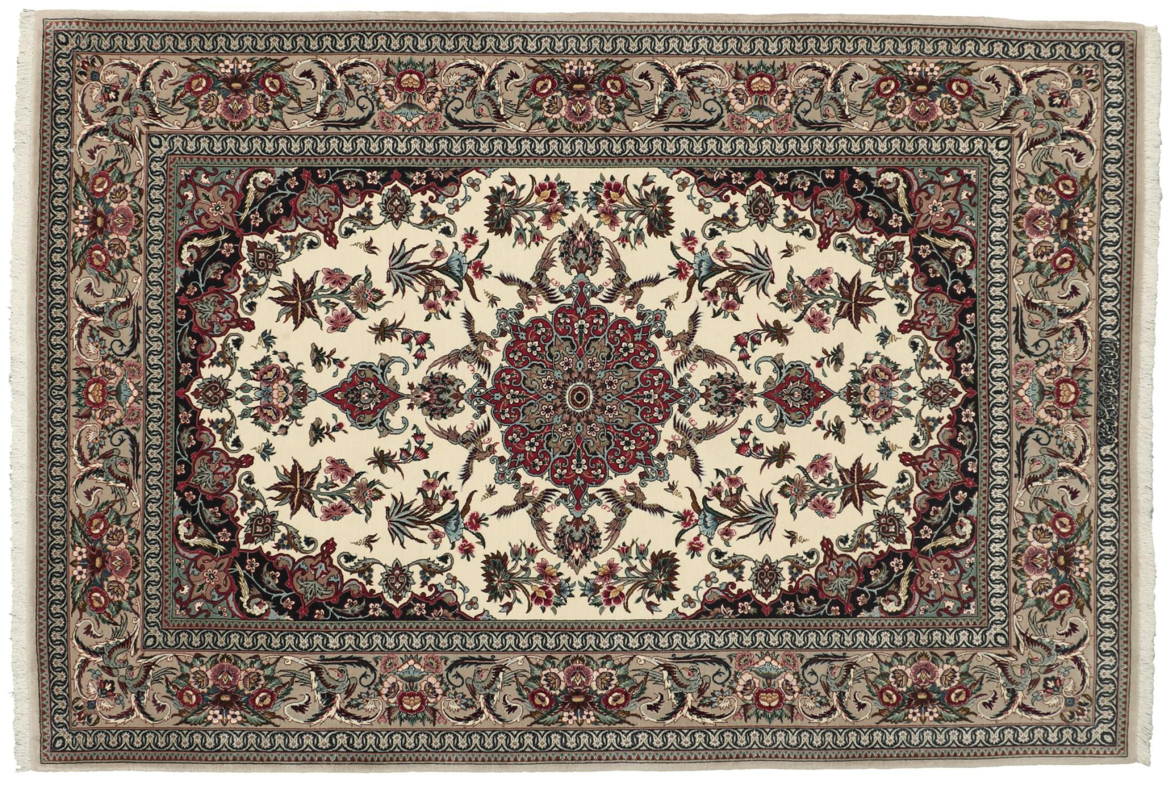 Alfombra número: 308732001240835 Tamaño: 195x133 cm Espesor: alrededor de 6 mm Nudos: 810 000 / m² Elaboración: Anudado a mano Crespón: Lana con seda Urdimbre: Seda Origen: Persia / Iran Edad: Nuevo Peso: alrededor de 8 kg Cantidad en stock: Única - Solo 1 en stock
