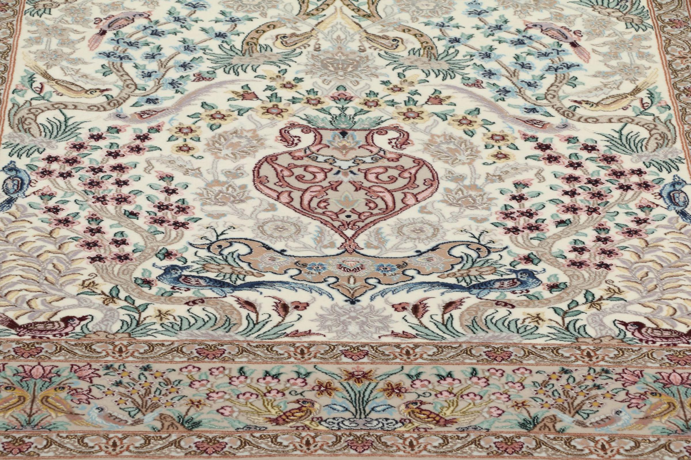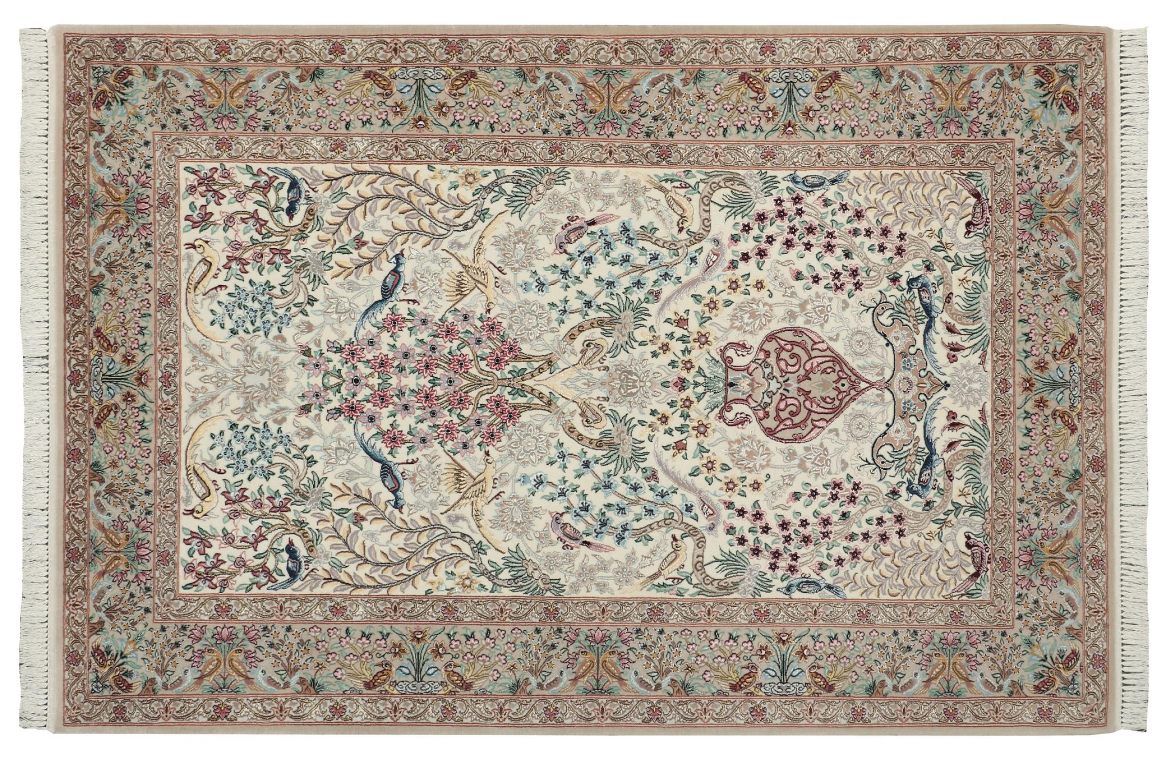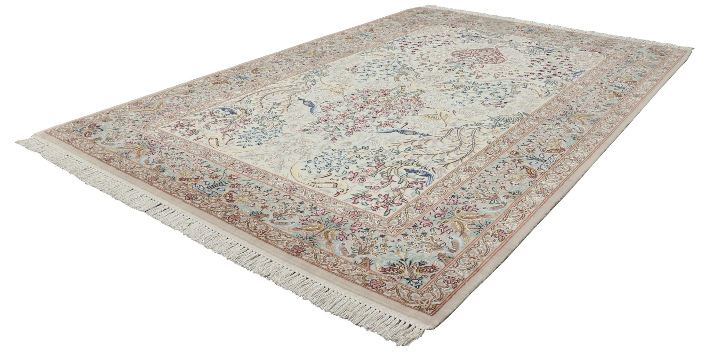 Alfombra número: 309322007115884 Tamaño: 196x133 cm Espesor: alrededor de 6 mm Nudos: 810 000 / m² Elaboración: Anudado a mano Crespón: Lana con seda Urdimbre: Seda Origen: Persia / Iran Edad: Nuevo Peso: alrededor de 8 kg Cantidad en stock: Única - Solo 1 en stock