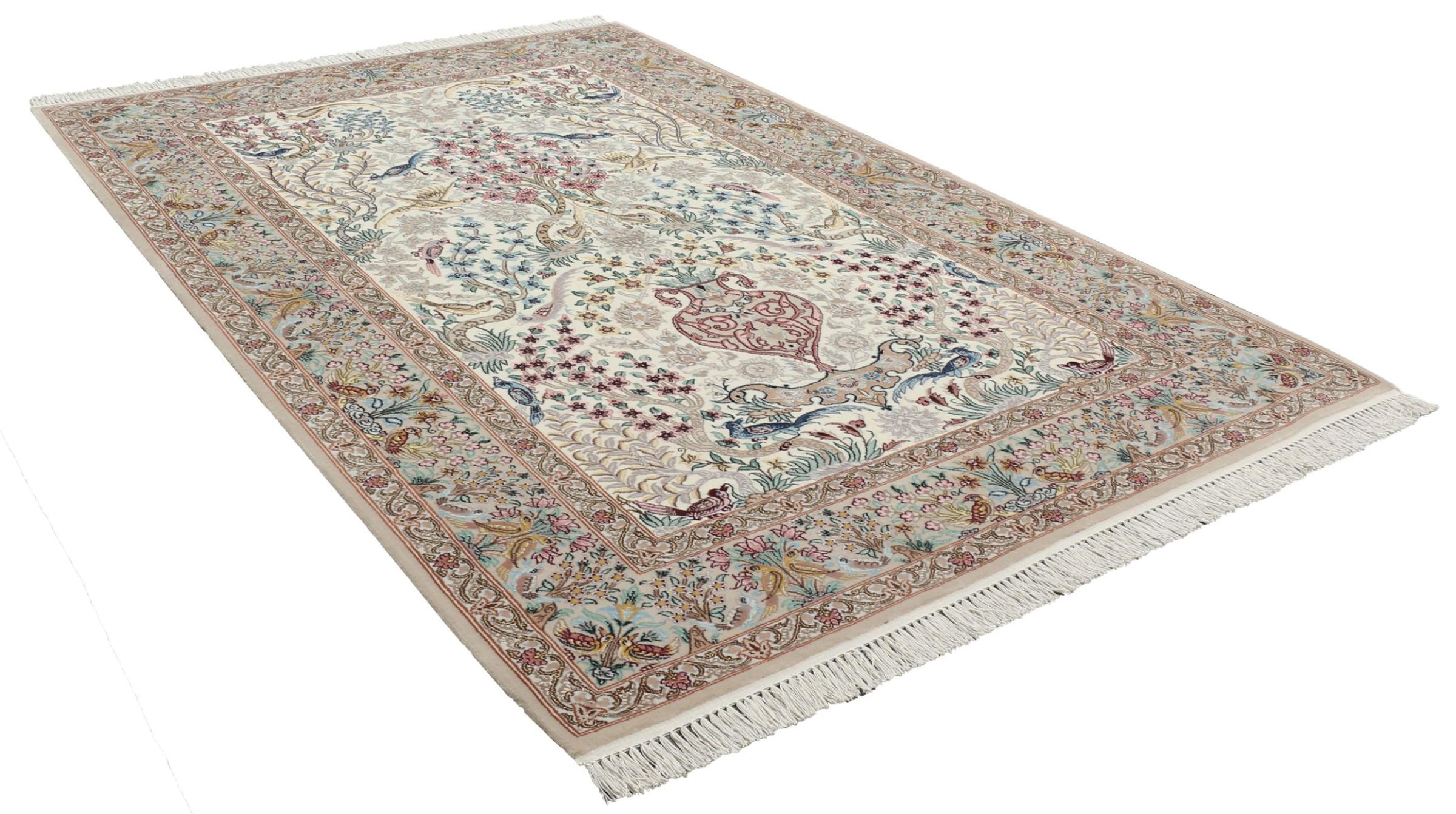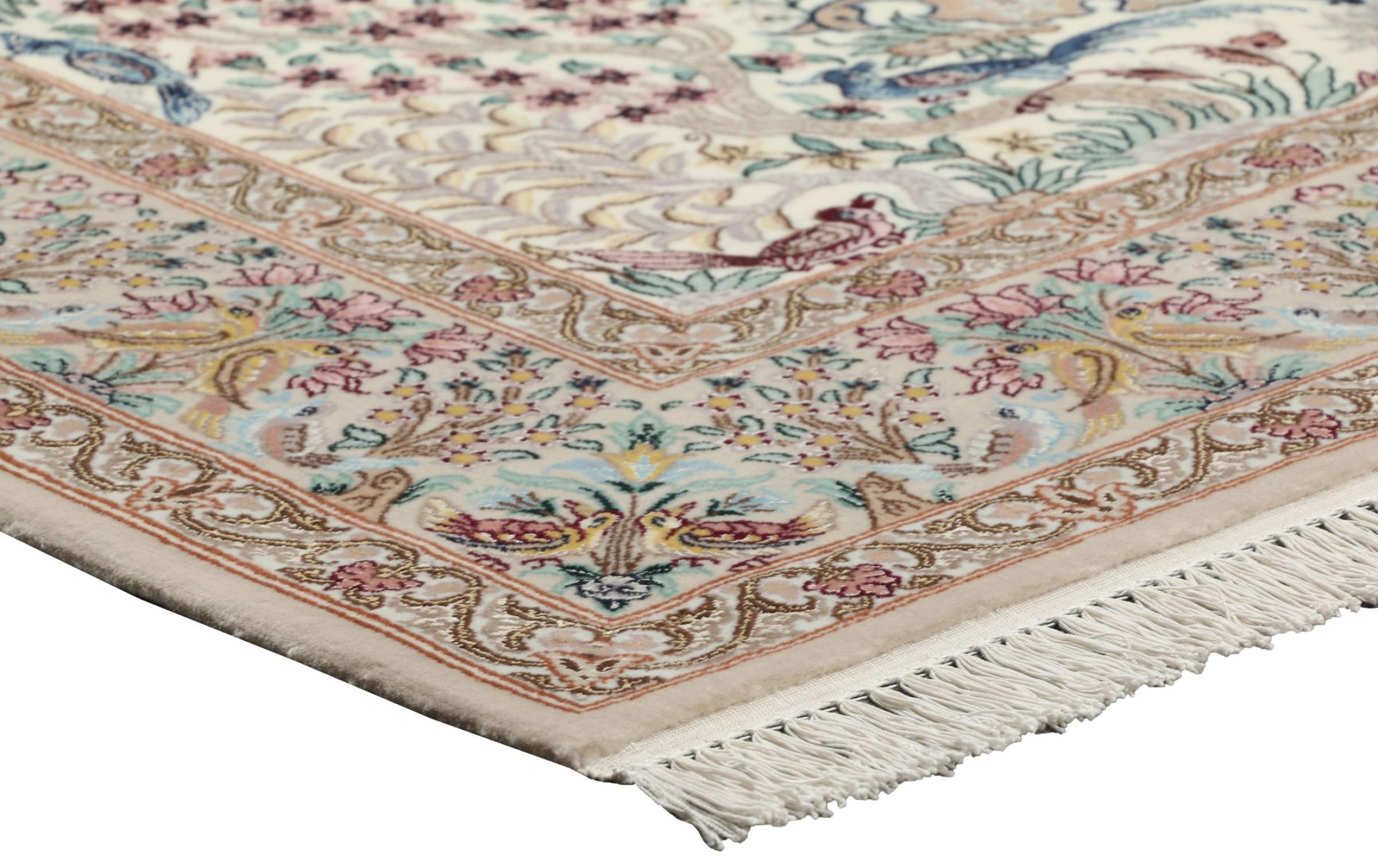 Esta alfombra de Ispahán está hecha con el arte del anudado más tradicional y elevado. Está magistralmente elaborada y decorada con fascinantes ornamentos. La alfombra persa fue anudada a mano en Isfahan, probablemente la ciudad más bella de Irán, a partir de los hilos más finos. Las alfombras de Isfahán se encuentran entre las persas más valiosas y pueden ser una verdadera inversión.