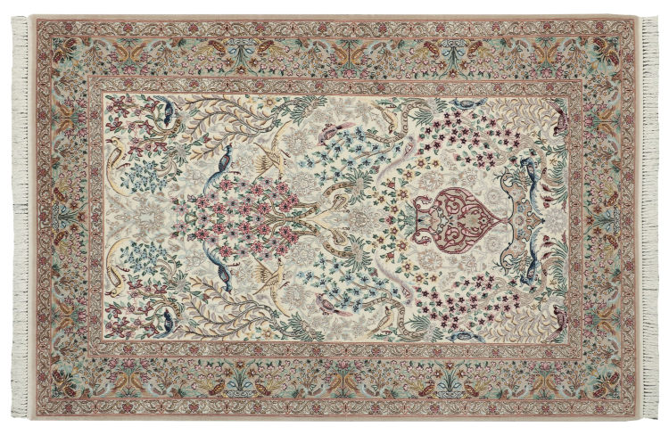 Las alfombras de esta ciudad pertenecen a las probablemente más valiosas alfombras persas anudadas a mano en todo el mundo. Las alfombras muy finas de Isfahán provienen de los estudios de maestros tejedores de fama mundial que logran una densidad de nudos de más de un millón de nudos por metro cuadrado. Poseer un Isfahan significa tener una alfombra persa de arte de anudar largo y alto. El diseño de estas alfombras se inspira en gran medida en las impresionantes mezquitas y plazas de la ciudad del mismo nombre.