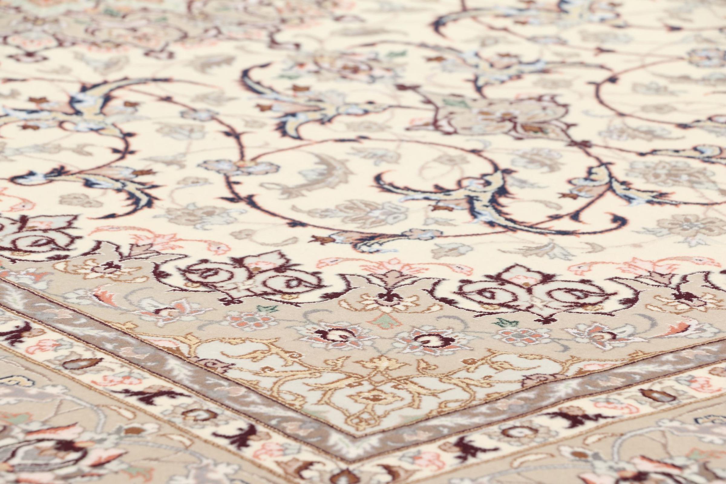 Esta alfombra de Ispahán está hecha con el arte del anudado más tradicional y elevado. Está magistralmente elaborada y decorada con fascinantes ornamentos. La alfombra persa fue anudada a mano en Isfahan, probablemente la ciudad más bella de Irán, a partir de los hilos más finos. Las alfombras de Isfahán se encuentran entre las persas más valiosas y pueden ser una verdadera inversión.
