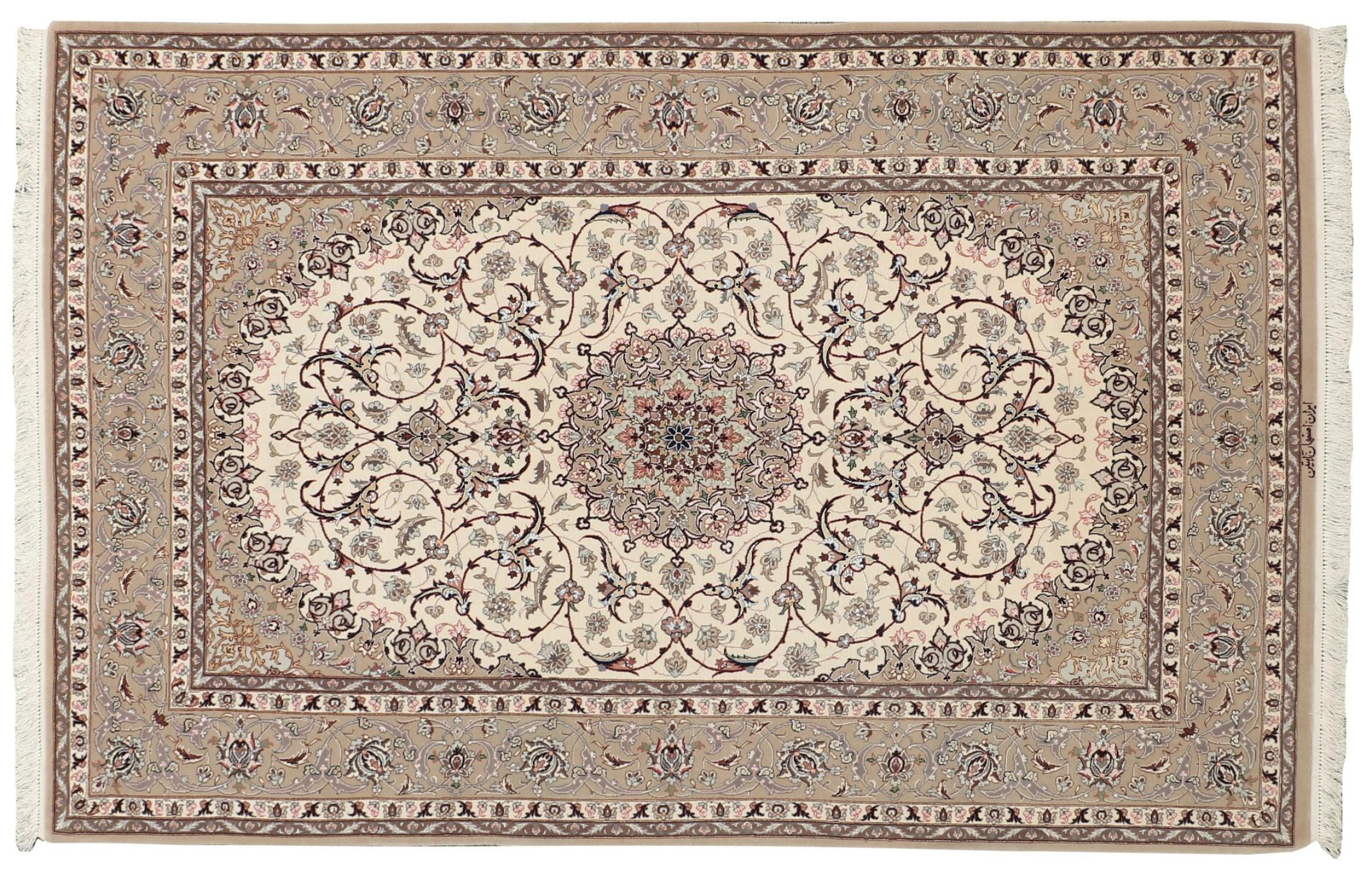 Alfombra número: 309303002046164 Tamaño: 199x129 cm Espesor: alrededor de 6 mm Nudos: 810 000 / m² Elaboración: Anudado a mano Crespón: Lana con seda Urdimbre: Seda Origen: Persia / Iran Edad: Nuevo Peso: alrededor de 8 kg Cantidad en stock: Única - Solo 1 en stock