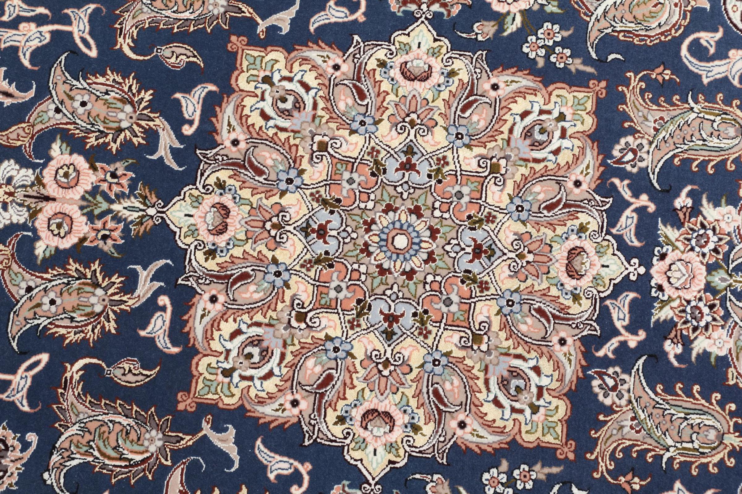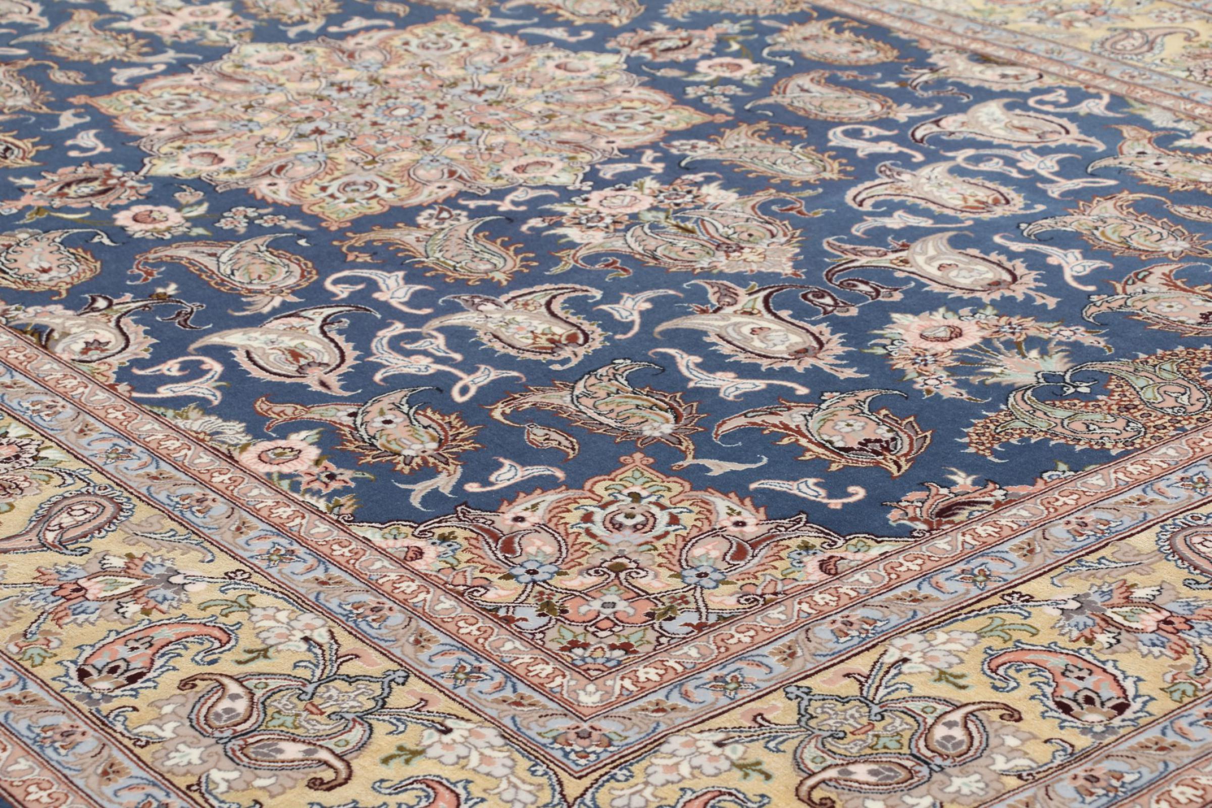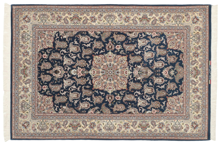 Alfombra número: 309369009742228 Tamaño: 199x133 cm Espesor: alrededor de 6 mm Nudos: 810 000 / m² Elaboración: Anudado a mano Crespón: Lana con seda Urdimbre: Seda Origen: Persia / Iran Edad: Nuevo Peso: alrededor de 8 kg Cantidad en stock: Única - Solo 1 en stock