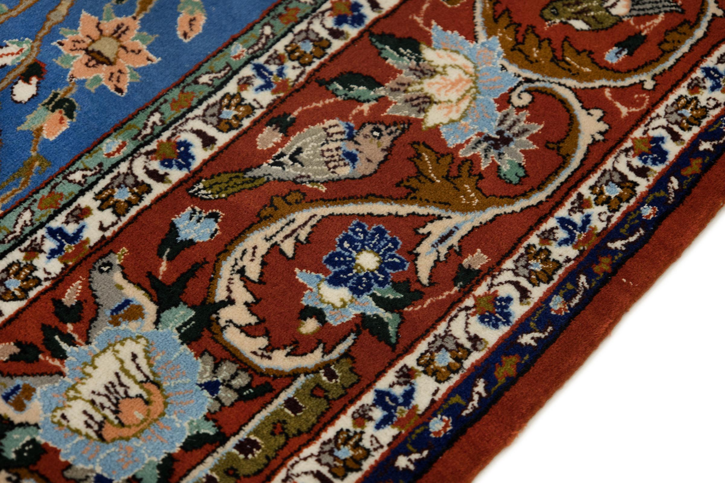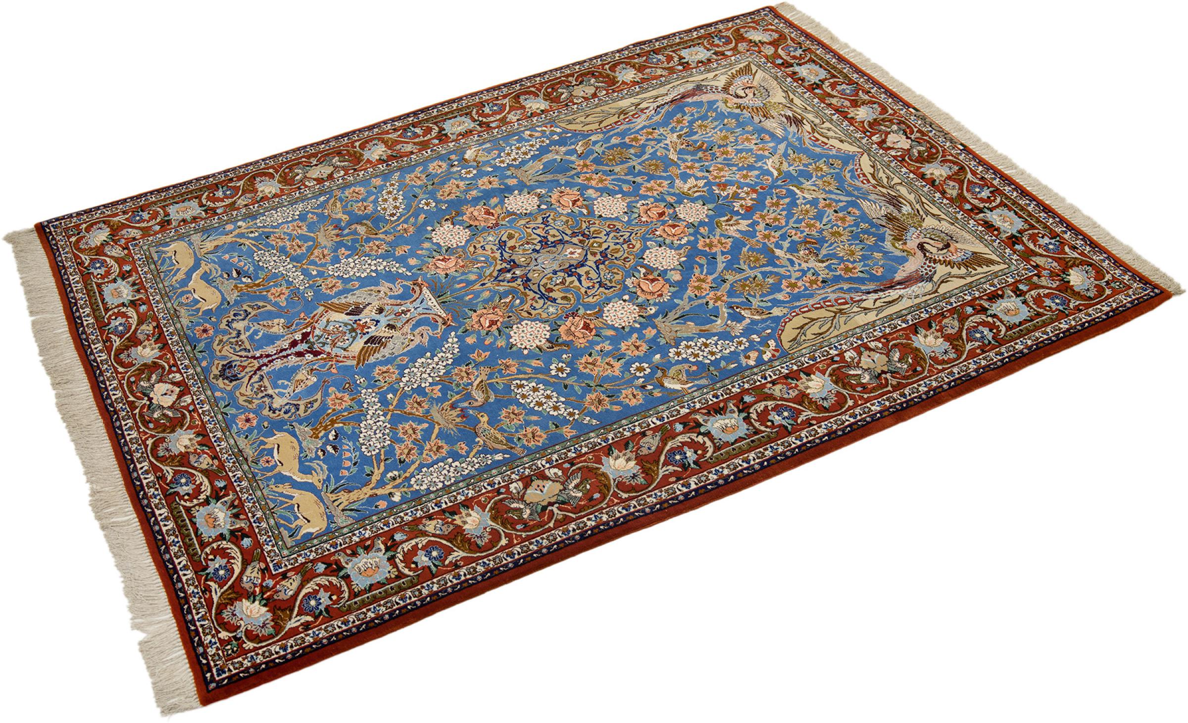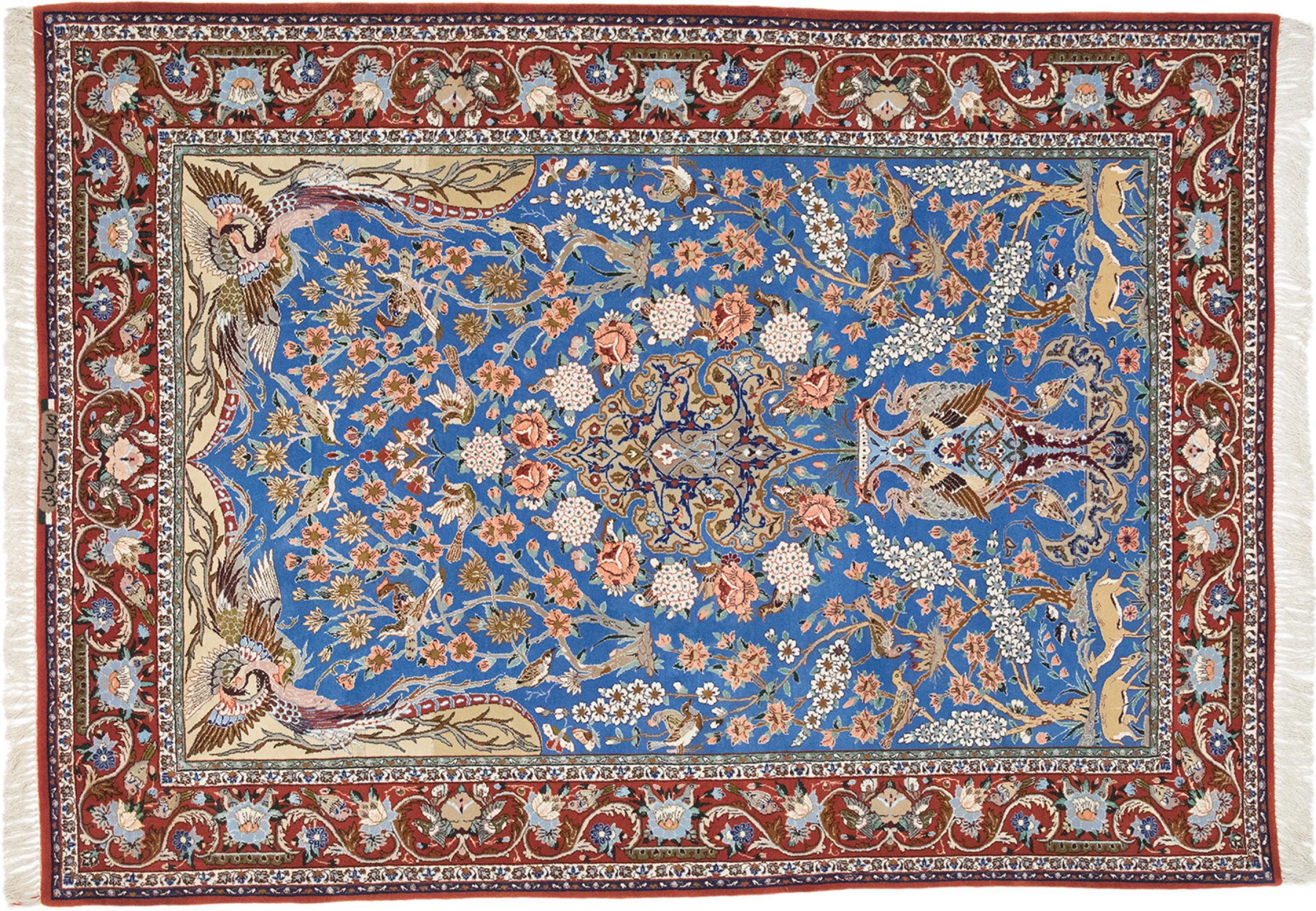 Esta alfombra de Ispahán está hecha con el arte del anudado más tradicional y elevado. Está magistralmente elaborada y decorada con fascinantes ornamentos. La alfombra persa fue anudada a mano en Isfahan, probablemente la ciudad más bella de Irán, a partir de los hilos más finos. Las alfombras de Isfahán se encuentran entre las persas más valiosas y pueden ser una verdadera inversión.