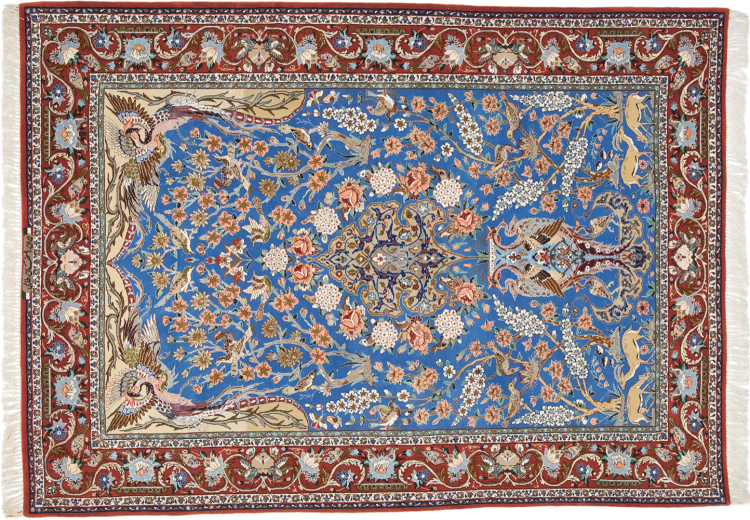 Las alfombras de esta ciudad pertenecen a las probablemente más valiosas alfombras persas anudadas a mano en todo el mundo. Las alfombras muy finas de Isfahán provienen de los estudios de maestros tejedores de fama mundial que logran una densidad de nudos de más de un millón de nudos por metro cuadrado. Poseer un Isfahan significa tener una alfombra persa de arte de anudar largo y alto. El diseño de estas alfombras se inspira en gran medida en las impresionantes mezquitas y plazas de la ciudad del mismo nombre.