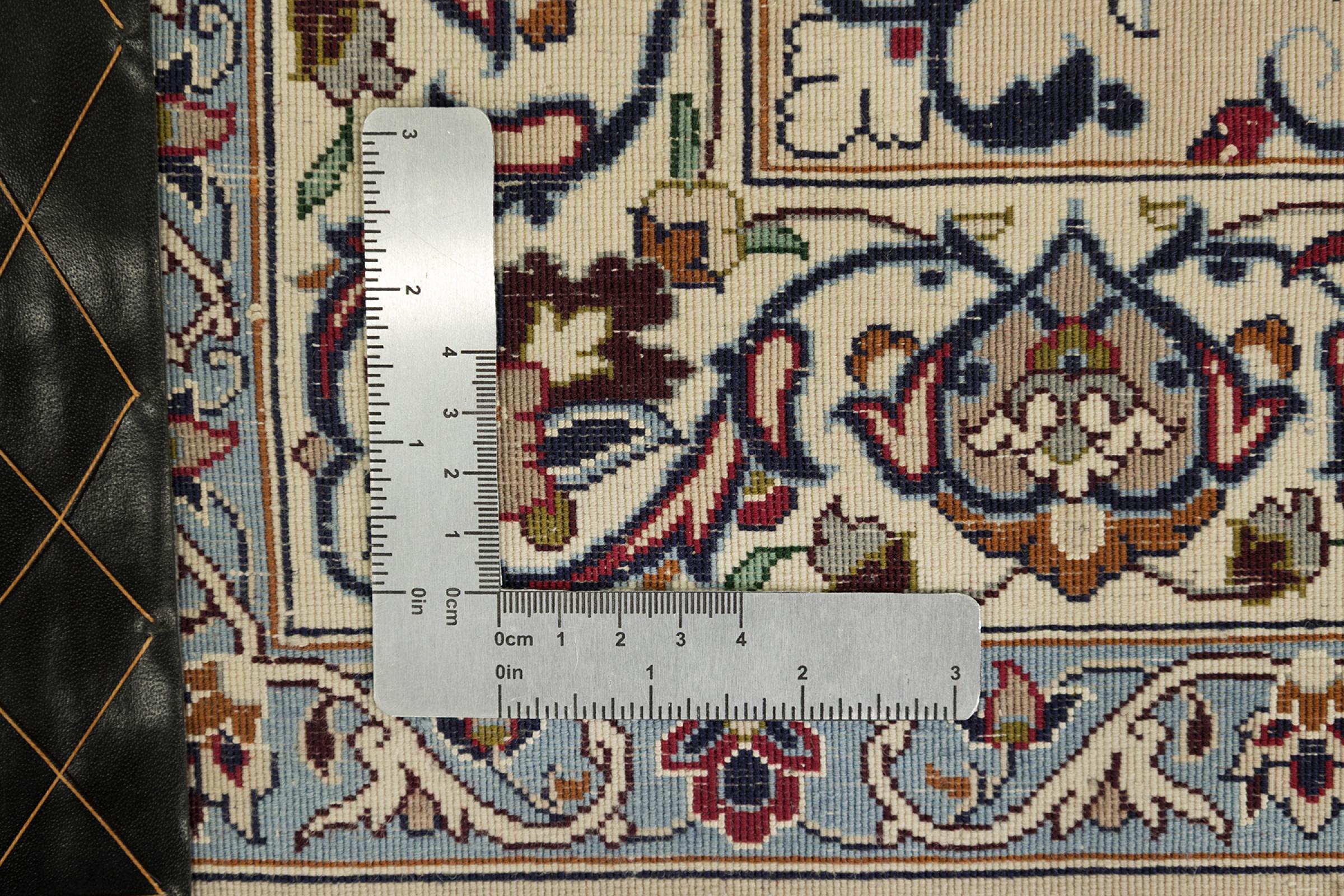 Alfombra número: 316508006398797 Tamaño: 411x311 cm Espesor: alrededor de 8 mm Nudos: 810 000 / m² Elaboración: Anudado a mano Crespón: Lana hilada a mano Urdimbre: Seda Origen: Persia / Iran Edad: Vieja, alrededor de 30-50 años Peso: alrededor de 32 kg Cantidad en stock: Única - Solo 1 en stock