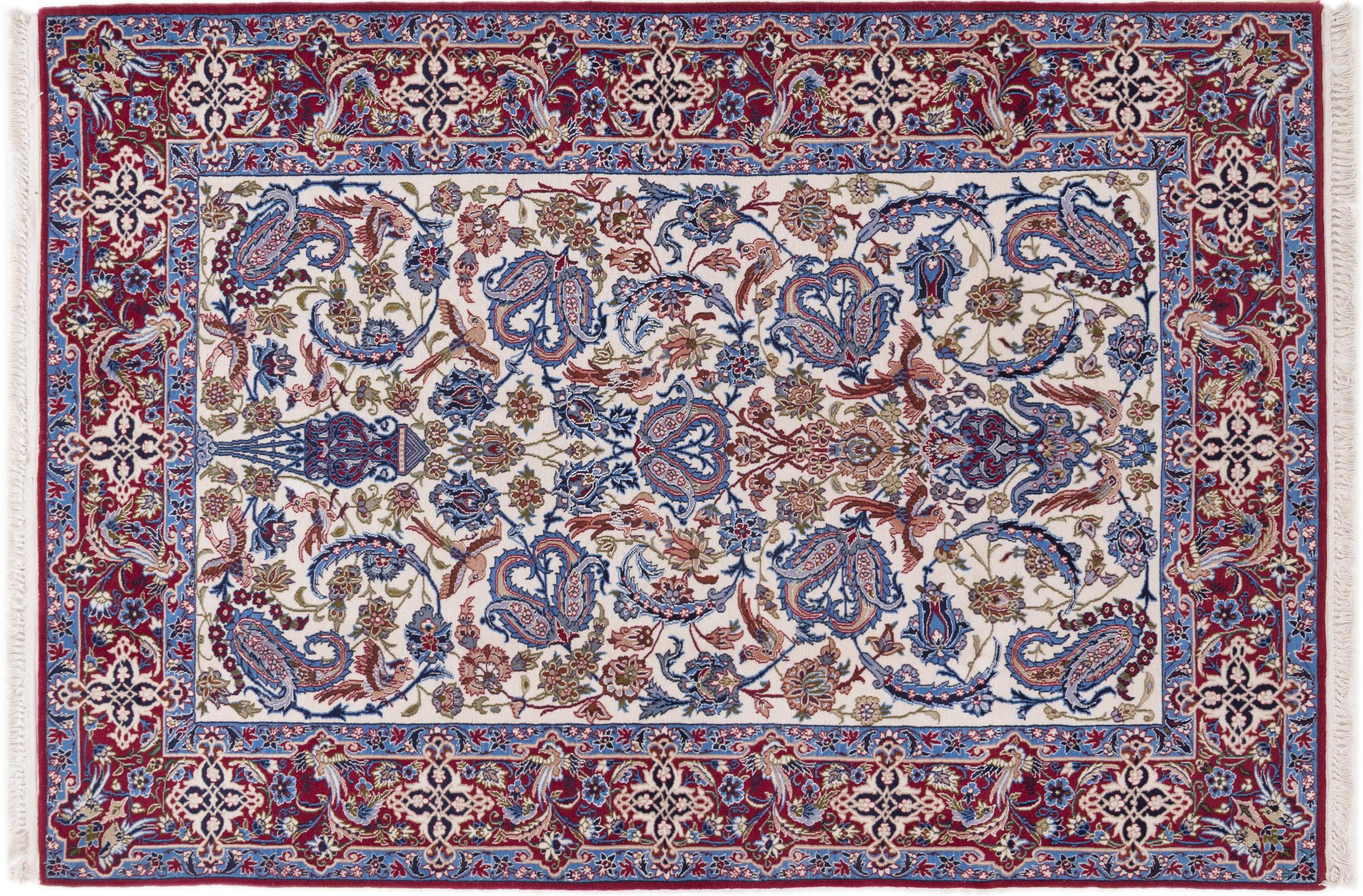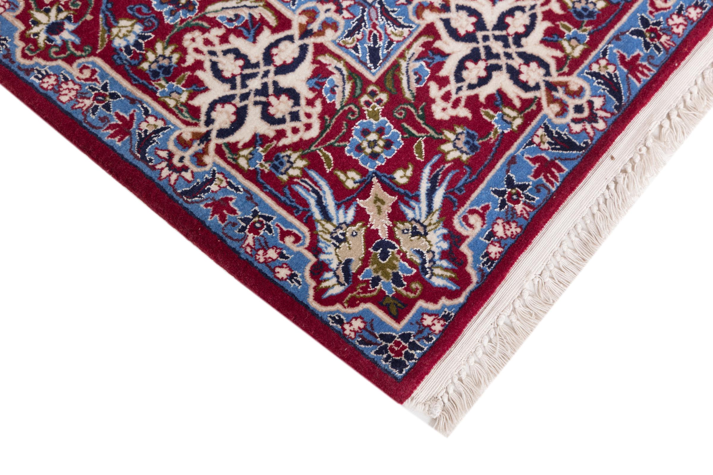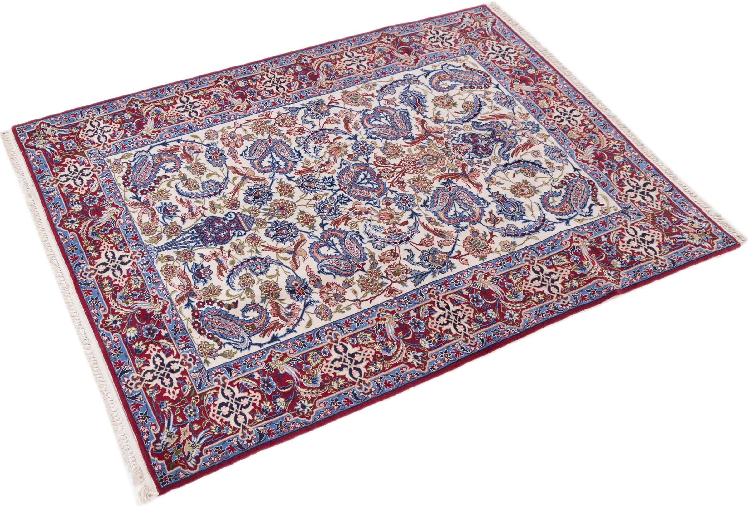 Esta alfombra de Ispahán está hecha con el arte del anudado más tradicional y elevado. Está magistralmente elaborada y decorada con fascinantes ornamentos. La alfombra persa fue anudada a mano en Isfahan, probablemente la ciudad más bella de Irán, a partir de los hilos más finos. Las alfombras de Isfahán se encuentran entre las persas más valiosas y pueden ser una verdadera inversión.