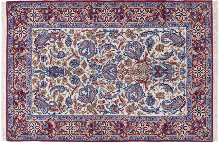 Las alfombras de esta ciudad pertenecen a las probablemente más valiosas alfombras persas anudadas a mano en todo el mundo. Las alfombras muy finas de Isfahán provienen de los estudios de maestros tejedores de fama mundial que logran una densidad de nudos de más de un millón de nudos por metro cuadrado. Poseer un Isfahan significa tener una alfombra persa de arte de anudar largo y alto. El diseño de estas alfombras se inspira en gran medida en las impresionantes mezquitas y plazas de la ciudad del mismo nombre.