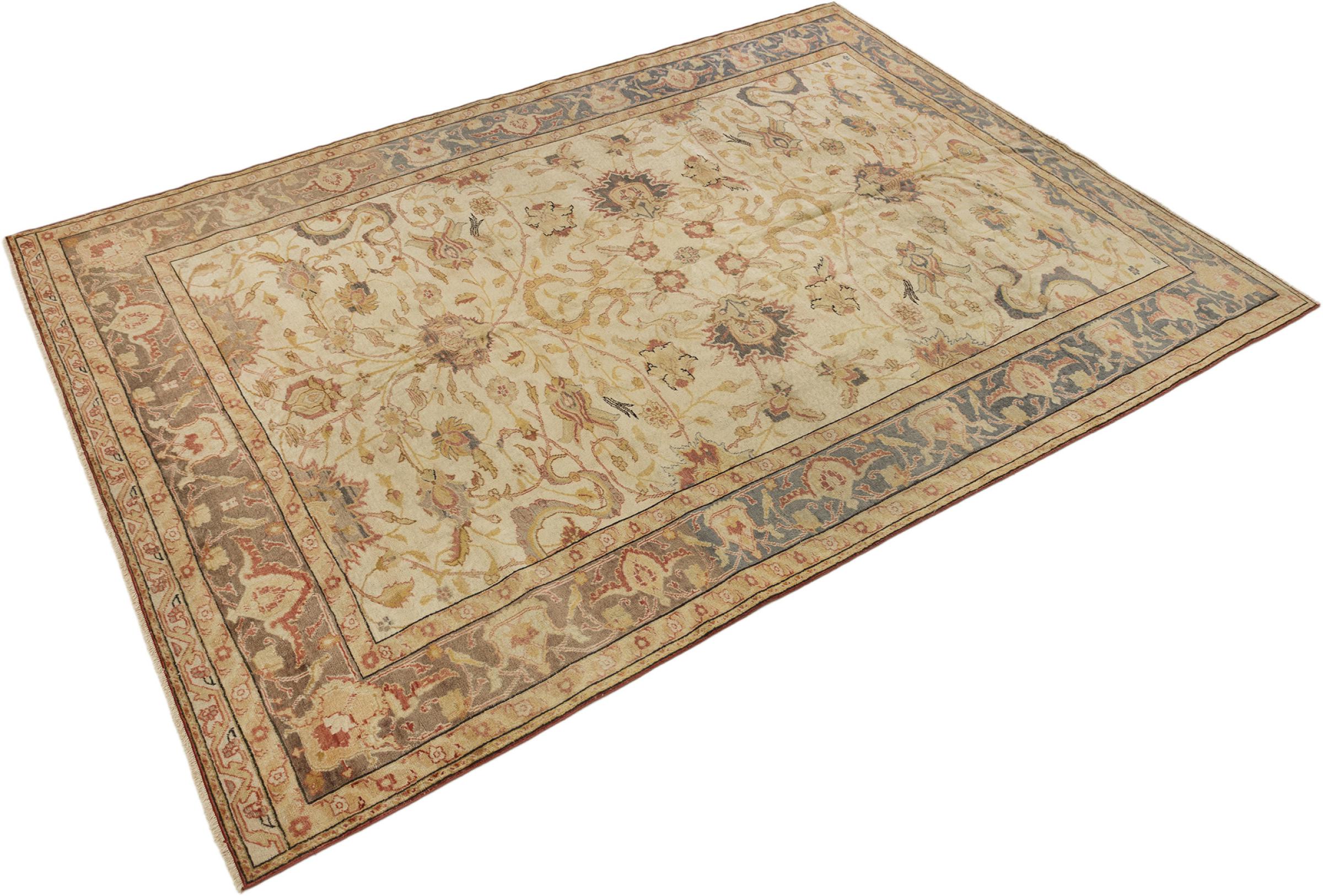Esta alfombra Hereke anudada a mano es un magnífico complemento para su hogar. Esta detallada obra de arte, antaño destinada a los palacios imperiales, adorna ahora su hogar. Sólo se utilizan materiales naturales para crear esta pieza única, tejida por talentosas manos maestras en un diseño tradicional con un fino brillo.