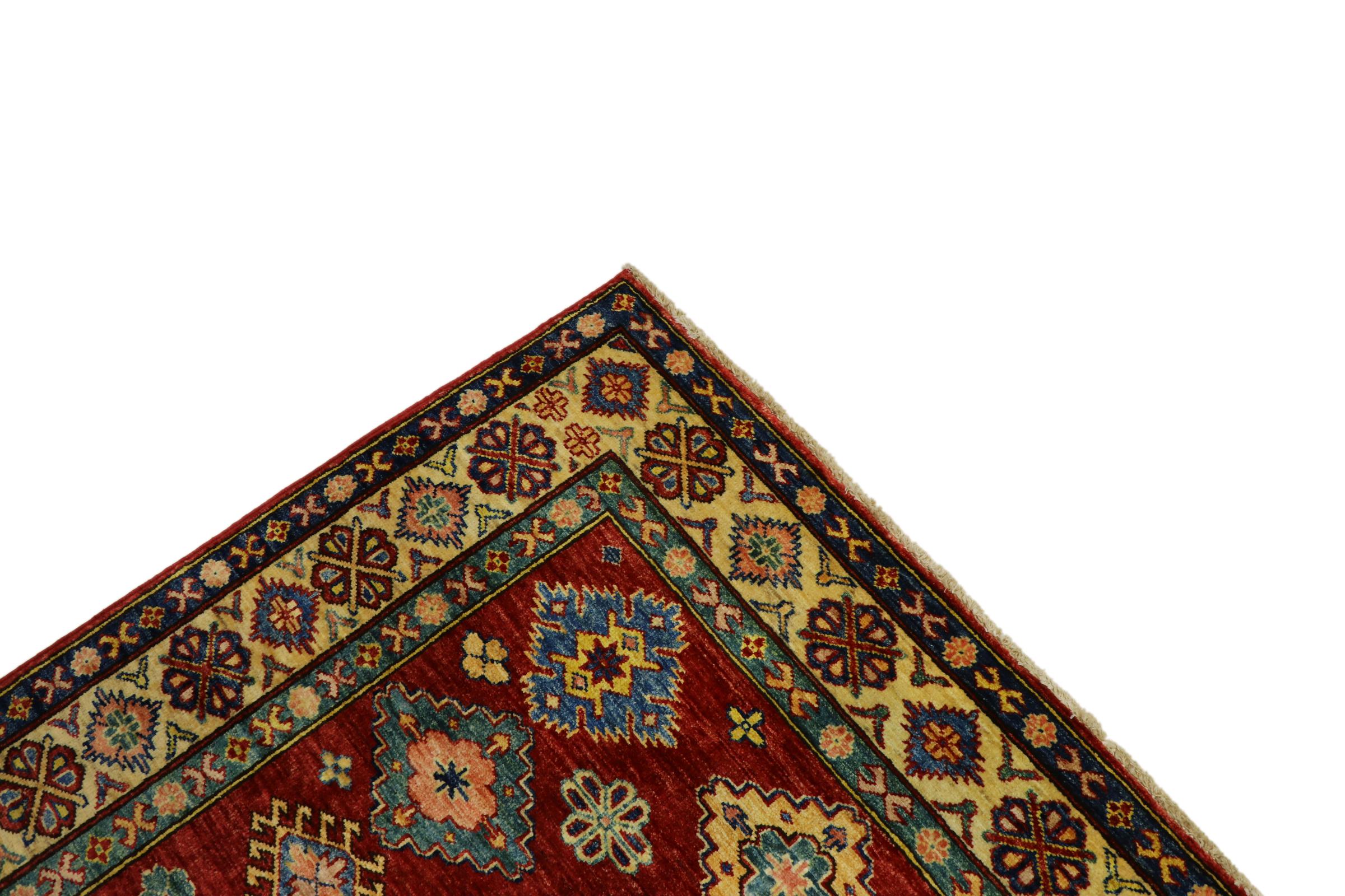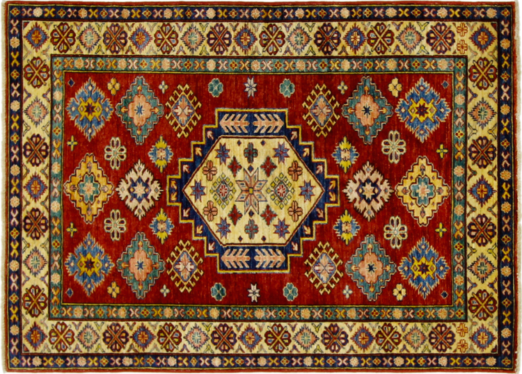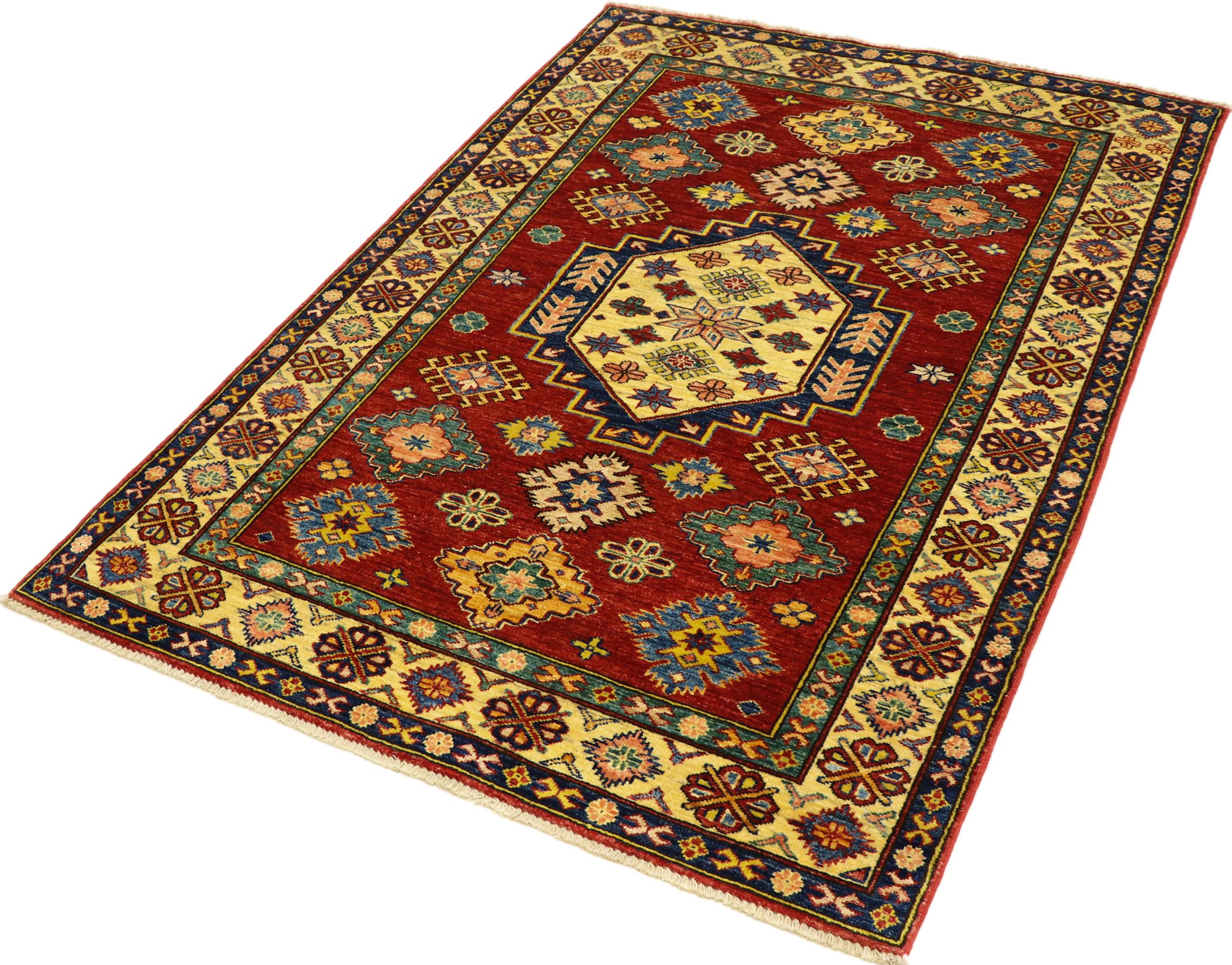 Esta alfombra Kazaka anudada a mano al estilo de las alfombras caucásicas convence por su gran robustez y sus vivos tonos. Así, refleja la cultura del Cáucaso en una bella composición. Una cultura que domina el arte de anudar alfombras desde hace siglos y que lo transmite al mundo exterior con formas encantadoramente sencillas en colores impresionantemente vivos.