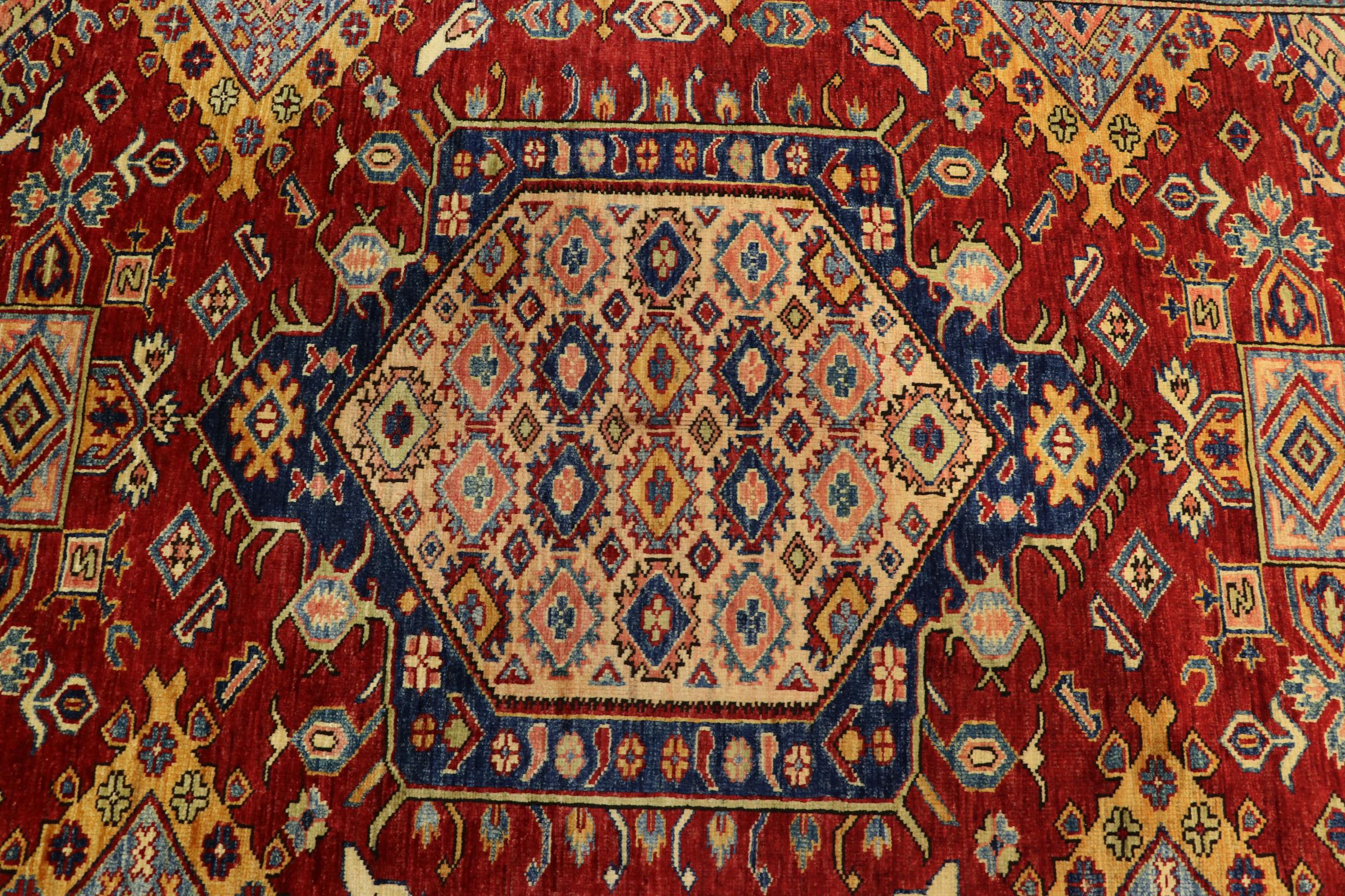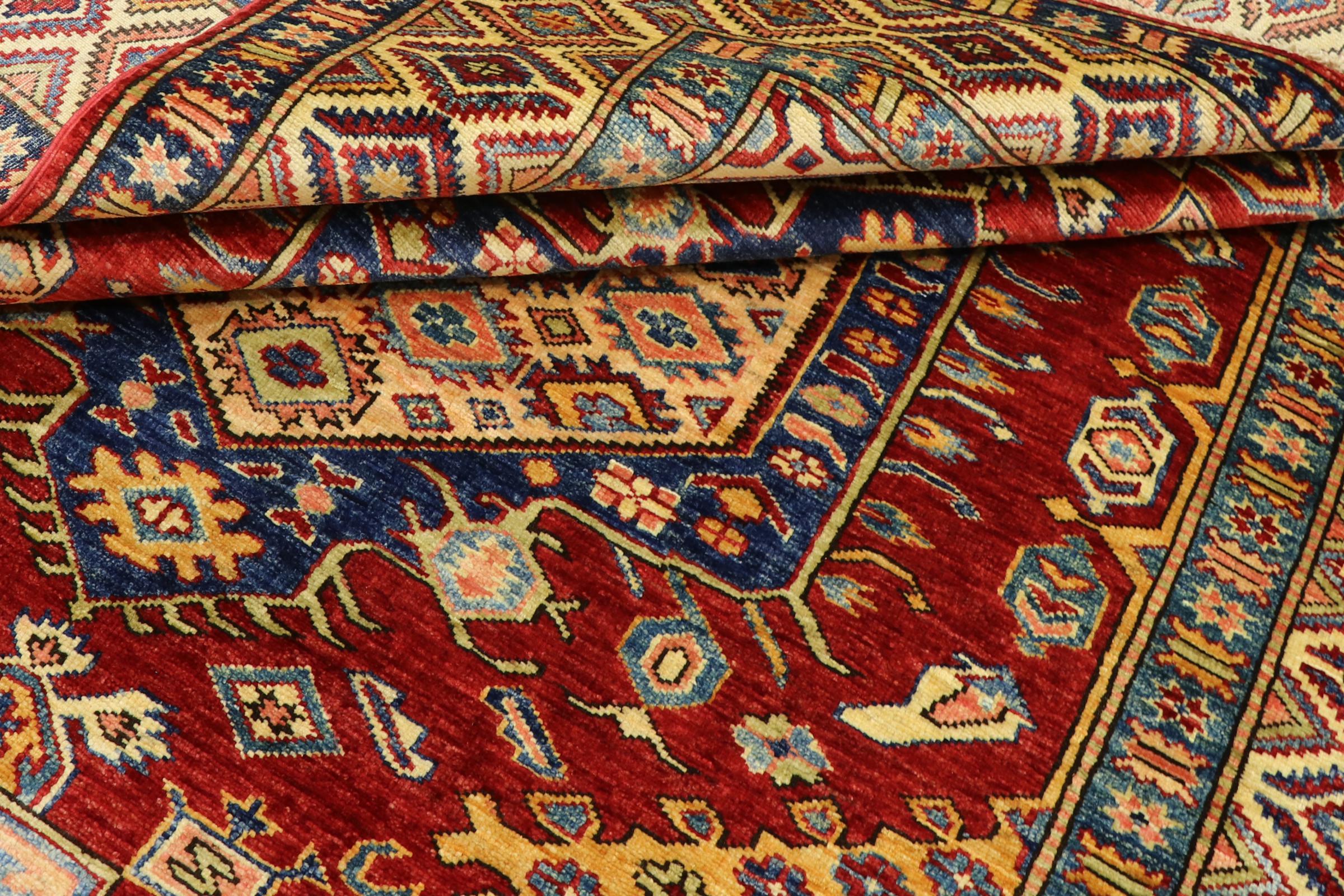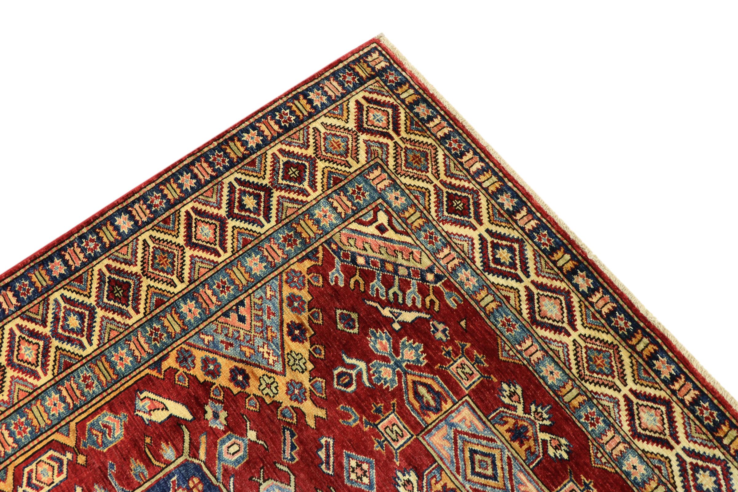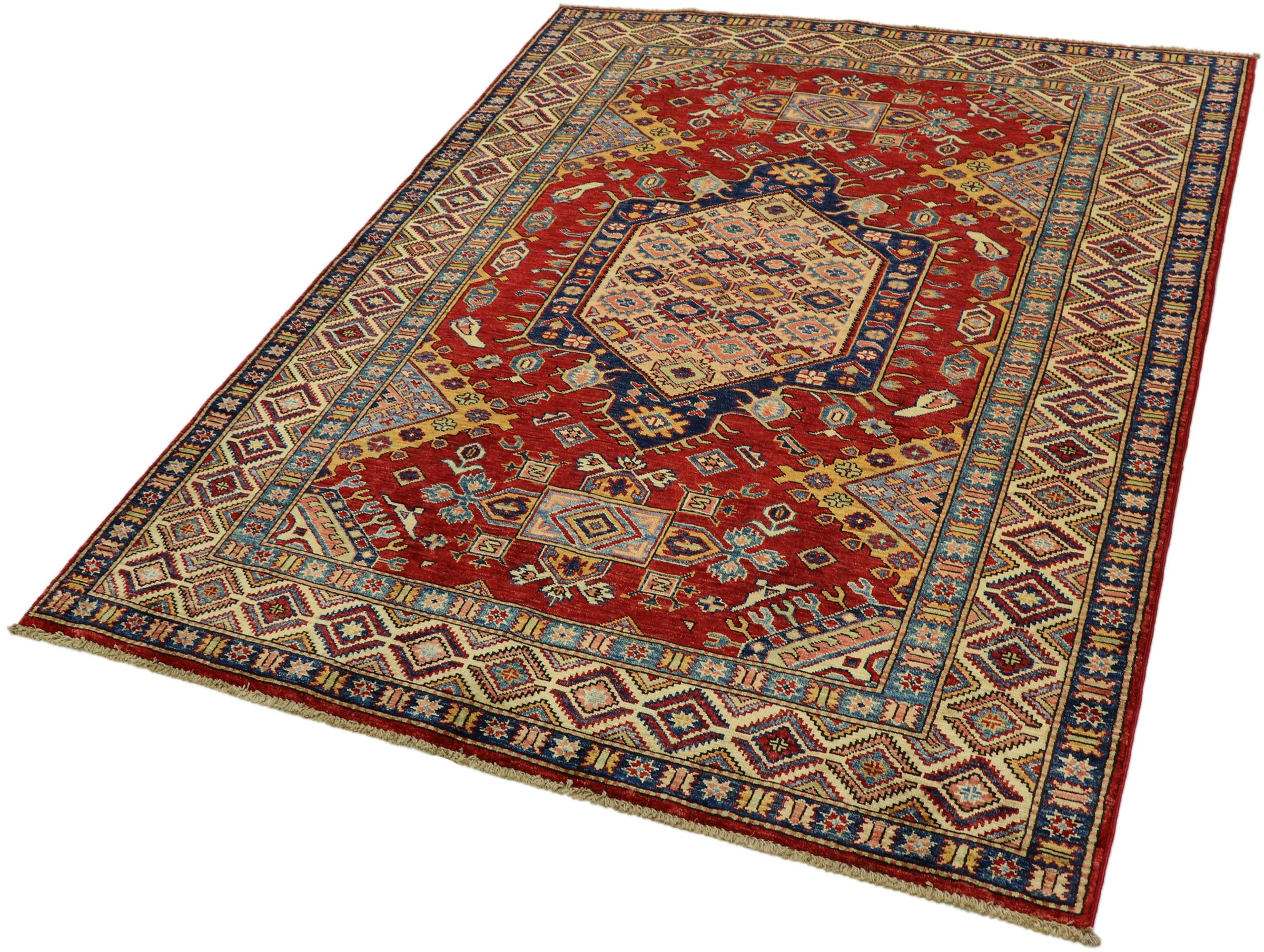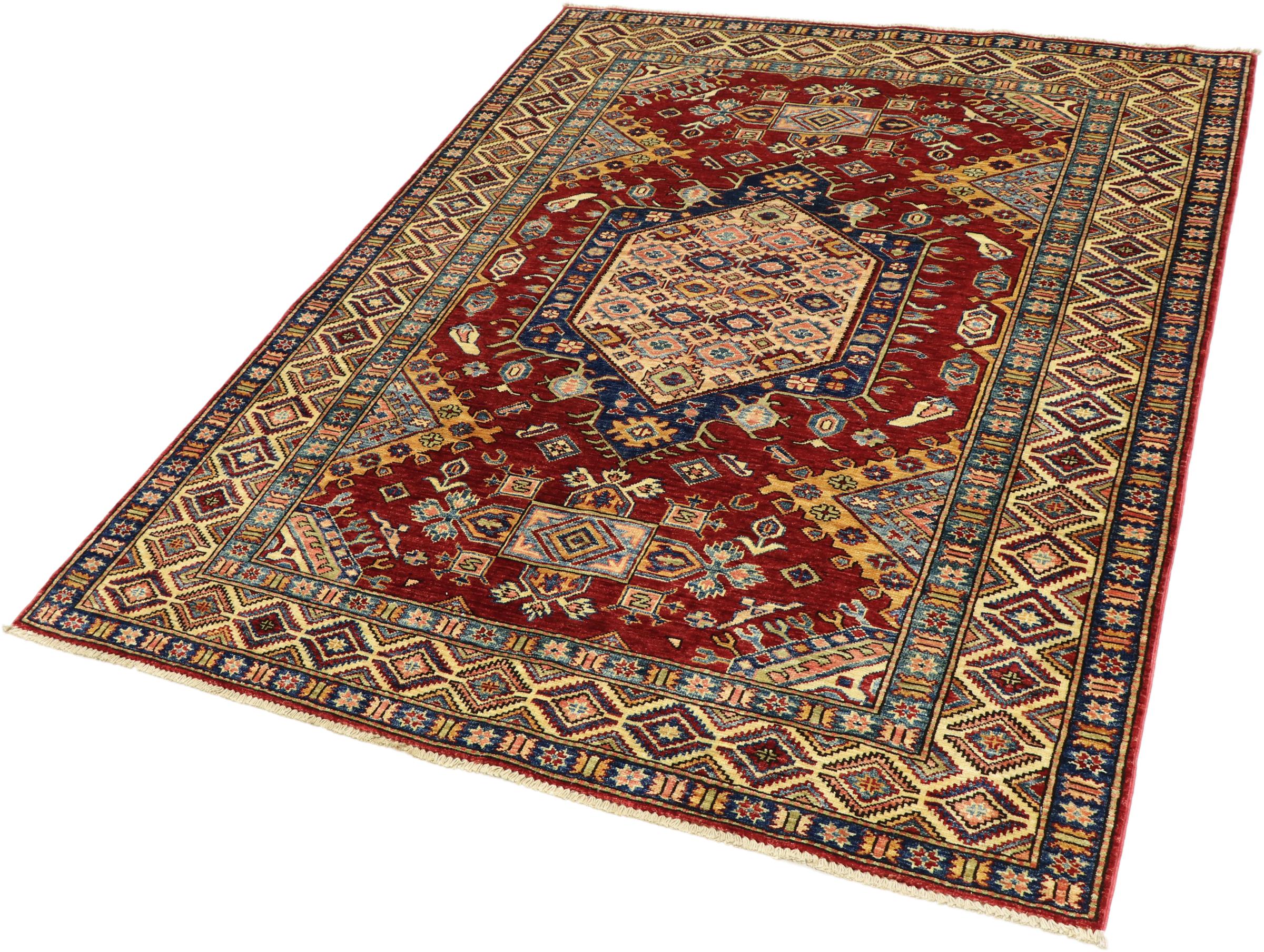 Esta alfombra Kazaka anudada a mano al estilo de las alfombras caucásicas convence por su gran robustez y sus vivos tonos. Así, refleja la cultura del Cáucaso en una bella composición. Una cultura que domina el arte de anudar alfombras desde hace siglos y que lo transmite al mundo exterior con formas encantadoramente sencillas en colores impresionantemente vivos.