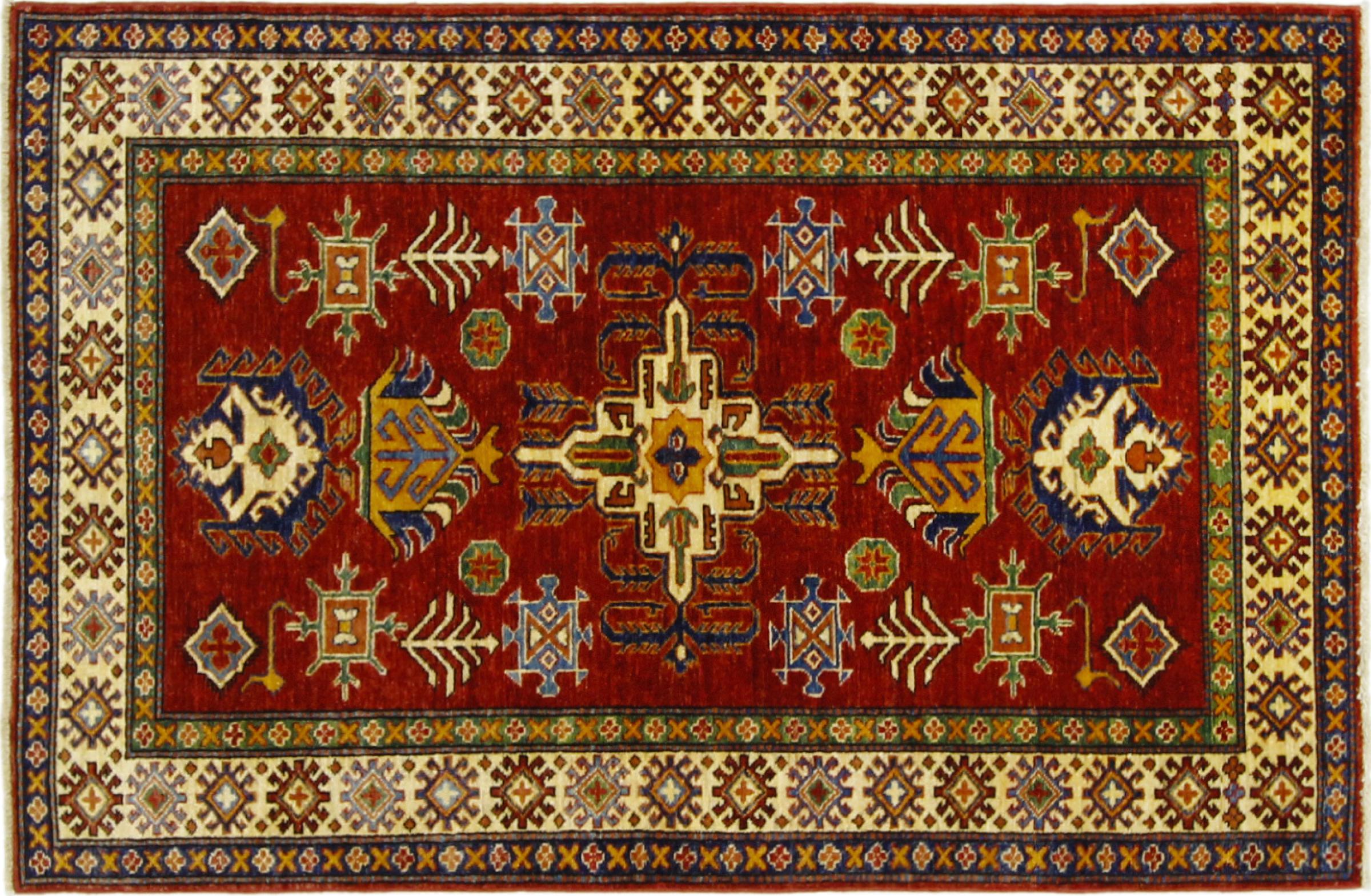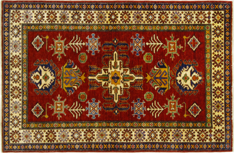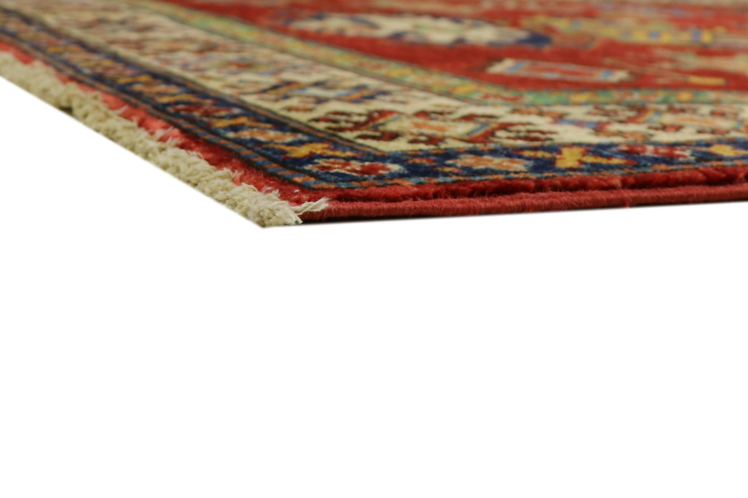 Esta alfombra Kazaka anudada a mano al estilo de las alfombras caucásicas convence por su gran robustez y sus vivos tonos. Así, refleja la cultura del Cáucaso en una bella composición. Una cultura que domina el arte de anudar alfombras desde hace siglos y que lo transmite al mundo exterior con formas encantadoramente sencillas en colores impresionantemente vivos.