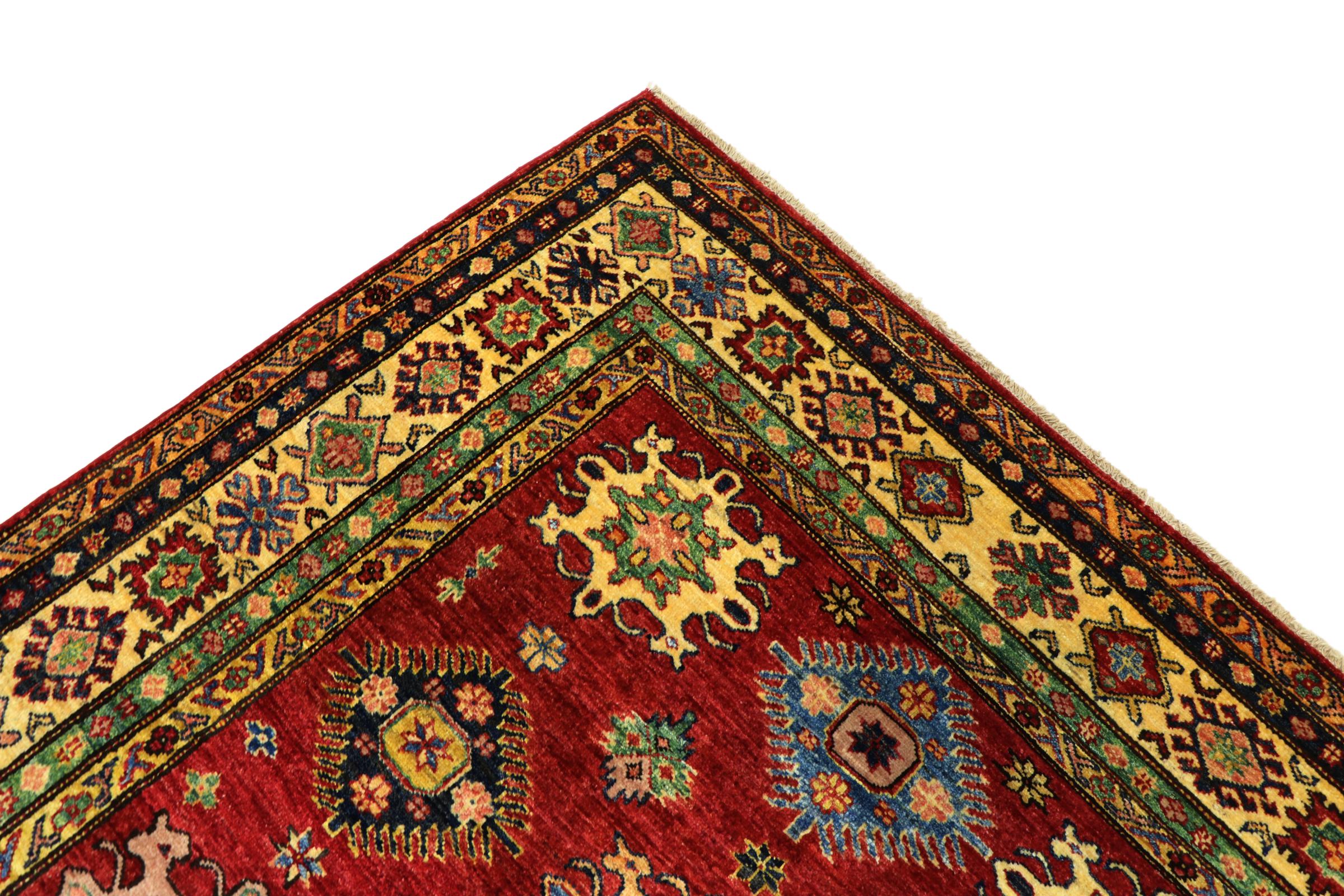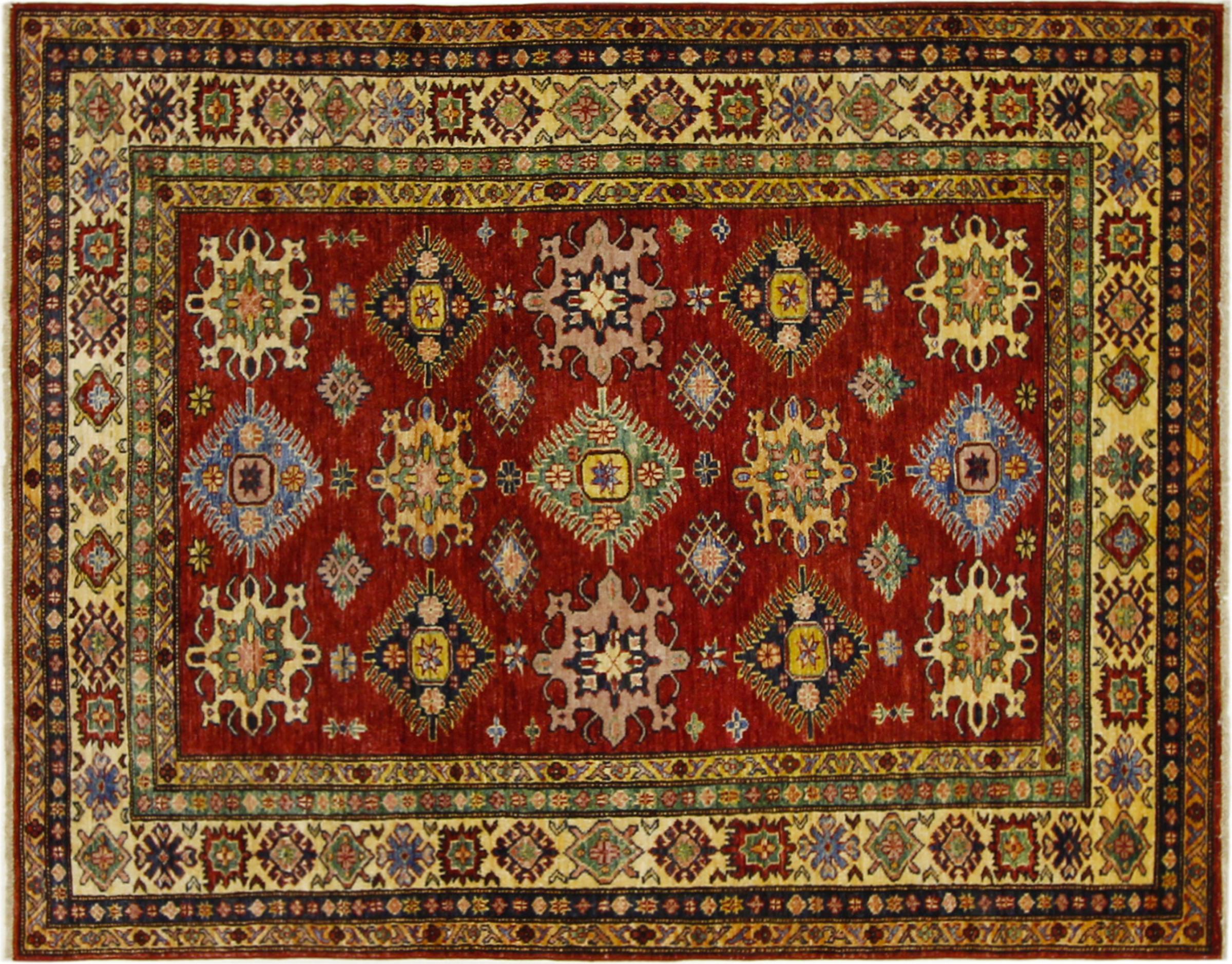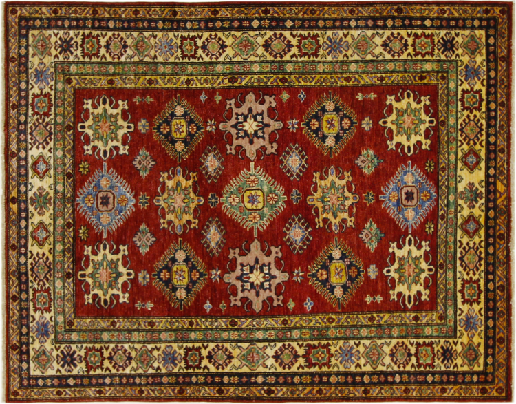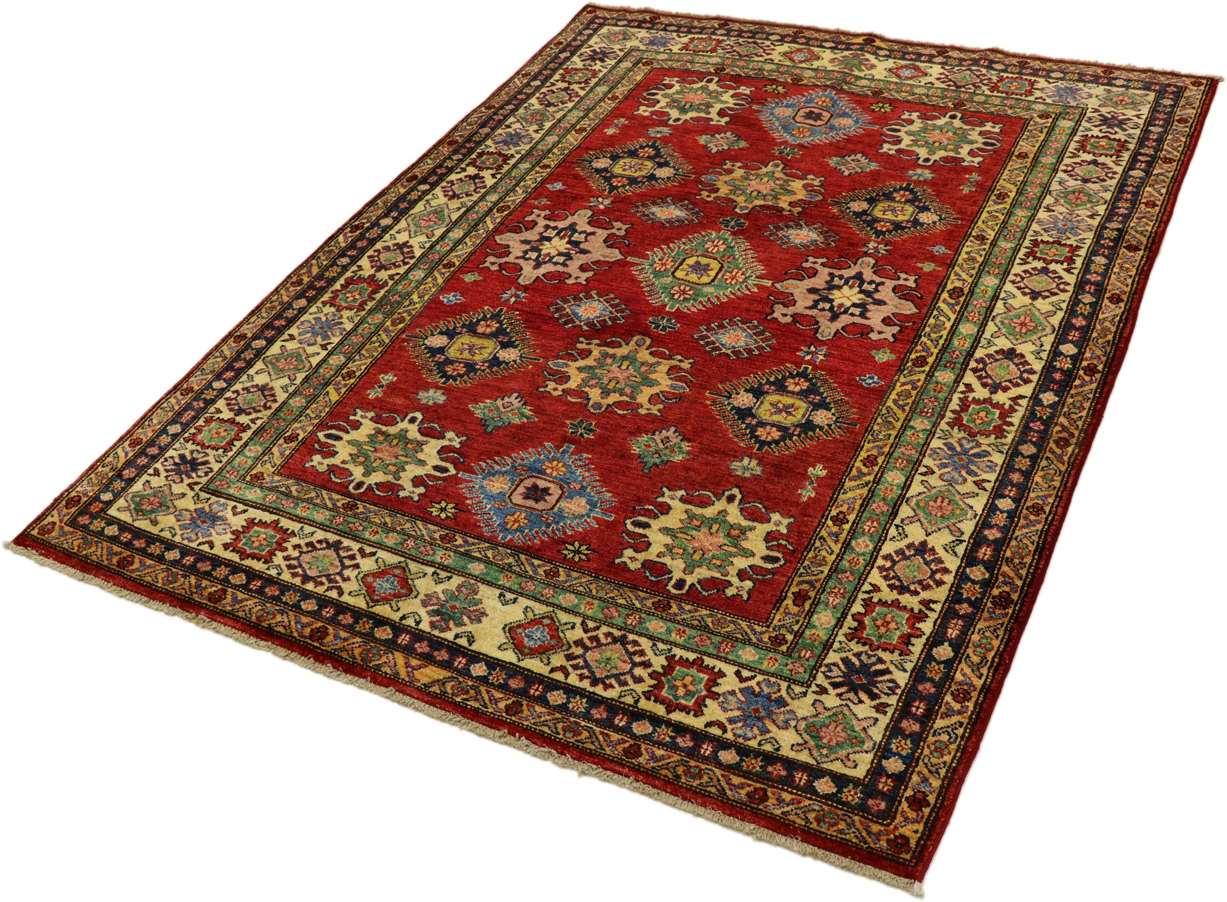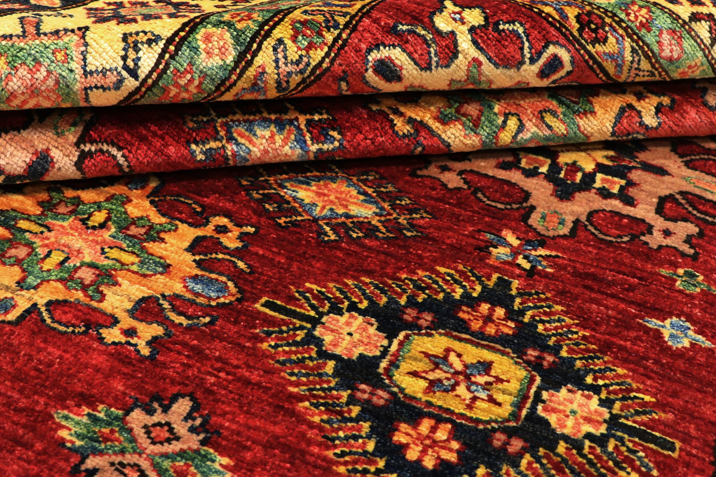 Esta alfombra Kazaka anudada a mano al estilo de las alfombras caucásicas convence por su gran robustez y sus vivos tonos. Así, refleja la cultura del Cáucaso en una bella composición. Una cultura que domina el arte de anudar alfombras desde hace siglos y que lo transmite al mundo exterior con formas encantadoramente sencillas en colores impresionantemente vivos.