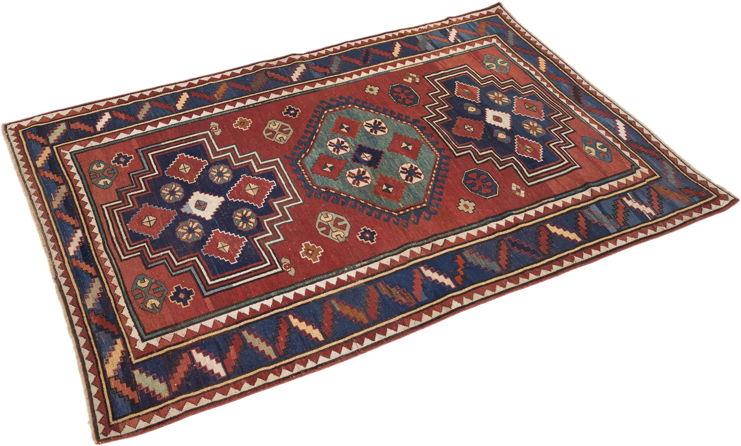 El Cáucaso se encuentra entre el Mar Negro y el Mar Caspio. Las montañas del Cáucaso son conocidas por su pintoresco paisaje y sus ciudades, que han sido moldeadas por muchas alfombras anudadas a mano de esta región. Las alfombras caucásicas y rusas son populares gracias a sus coloridos y vivos diseños. Los patrones geométricos y lineales son notablemente comunes en las alfombras orientales del Cáucaso.