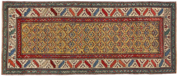 Alfombra número: 316190009489965 Tamaño: 233x98 cm Espesor: alrededor de 6 mm Nudos: 320 000 - 360 000 / m² Elaboración: Anudado a mano Crespón: Lana hilada a mano Urdimbre: Algodón Estado / Conservación Perfecta Origen: Azerbaijan / Rusia Edad: Antigua, mayor de 80 años Peso: alrededor de 8 kg Cantidad en stock: Única - Solo 1 en stock