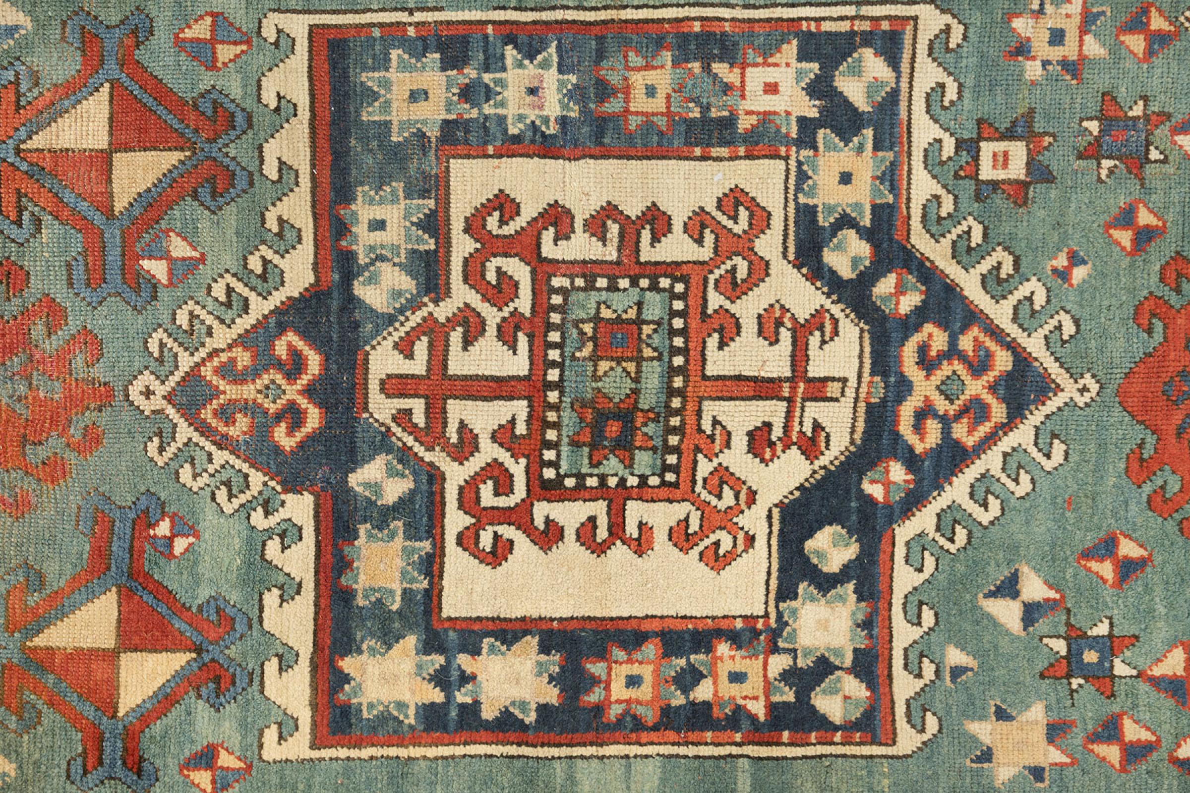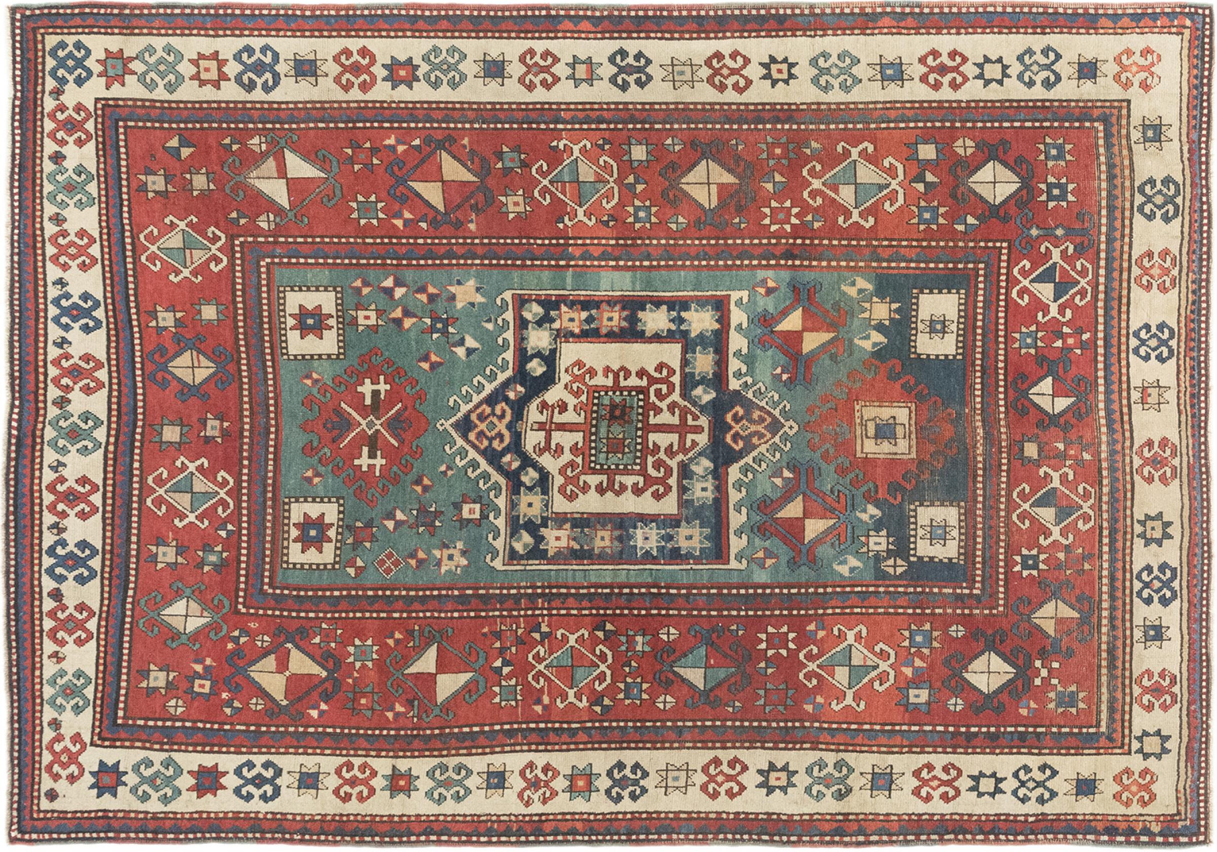 El Cáucaso se encuentra entre el Mar Negro y el Mar Caspio. Las montañas del Cáucaso son conocidas por su pintoresco paisaje y sus ciudades, que han sido moldeadas por muchas alfombras anudadas a mano de esta región. Las alfombras caucásicas y rusas son populares gracias a sus coloridos y vivos diseños. Los patrones geométricos y lineales son notablemente comunes en las alfombras orientales del Cáucaso.