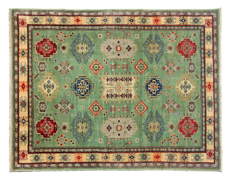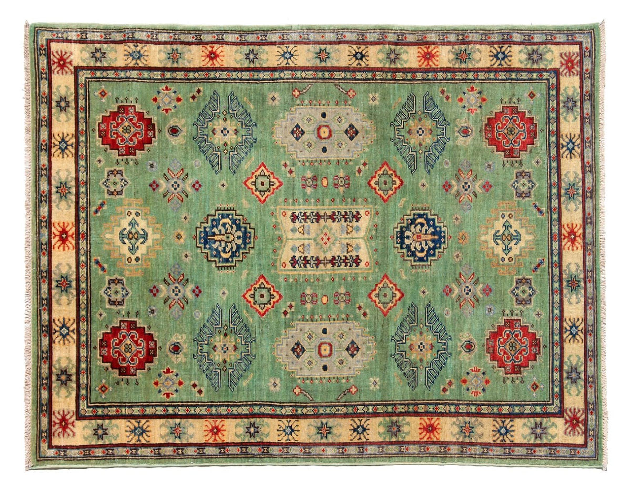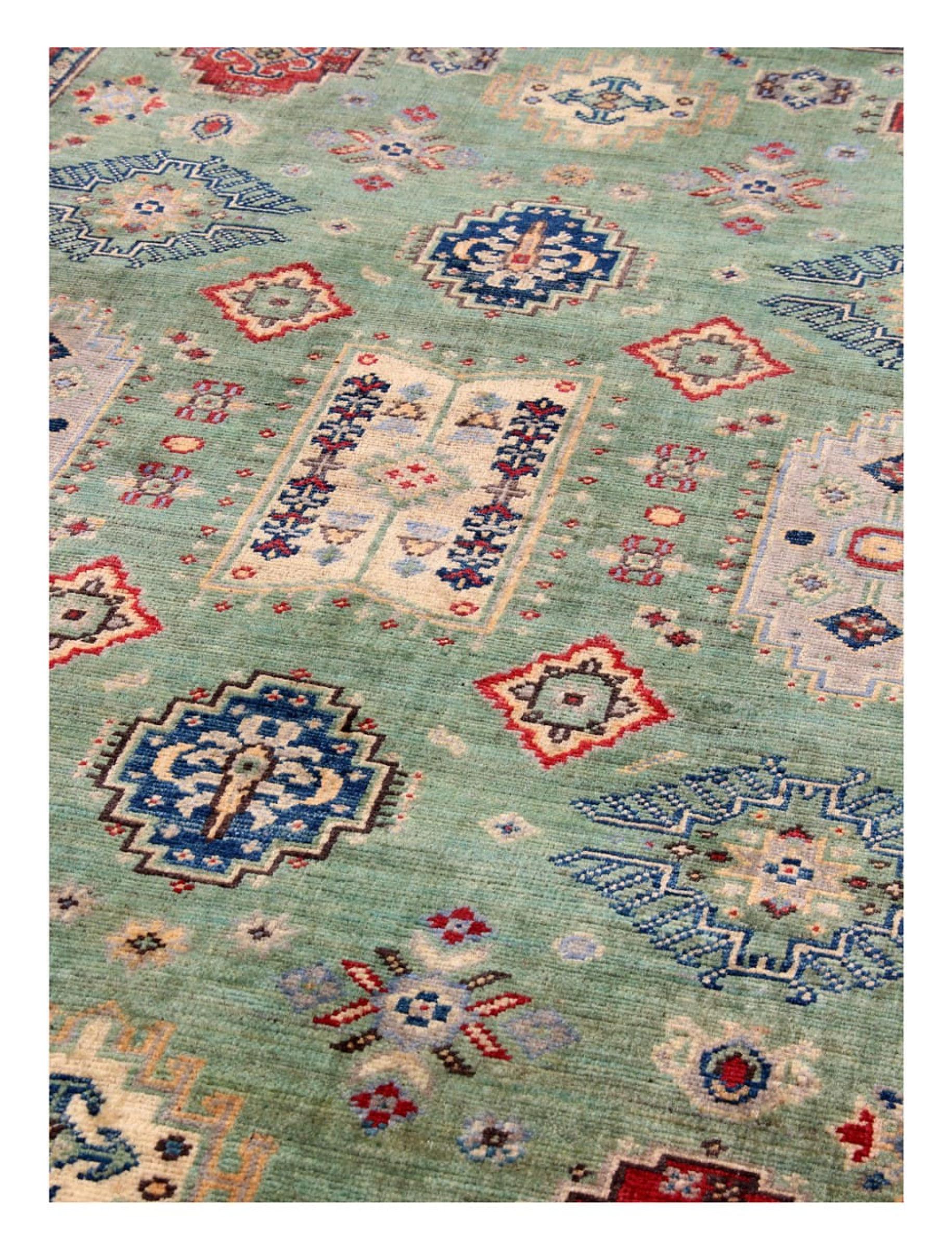 Esta alfombra Kazaka anudada a mano al estilo de las alfombras caucásicas convence por su gran robustez y sus vivos tonos. Así, refleja la cultura del Cáucaso en una bella composición. Una cultura que domina el arte de anudar alfombras desde hace siglos y que lo transmite al mundo exterior con formas encantadoramente sencillas en colores impresionantemente vivos.