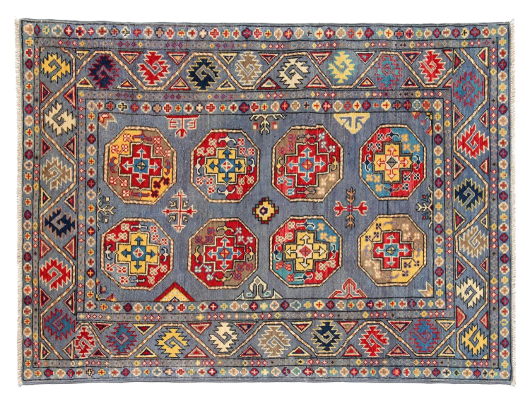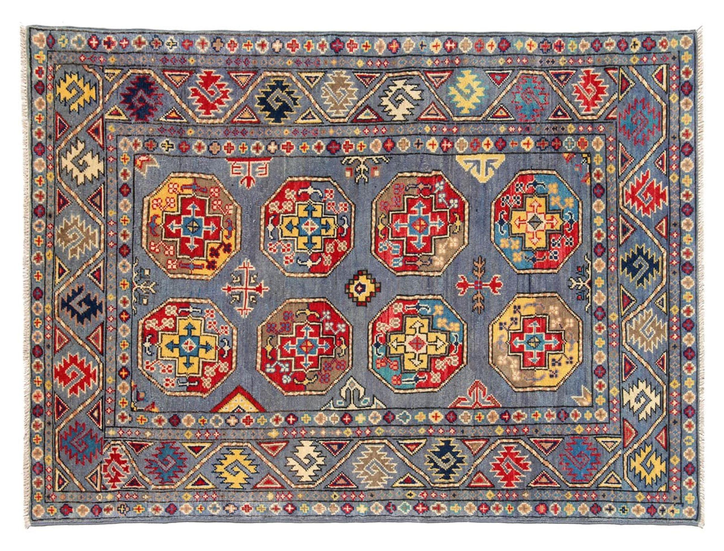 Esta alfombra Kazaka anudada a mano al estilo de las alfombras caucásicas convence por su gran robustez y sus vivos tonos. Así, refleja la cultura del Cáucaso en una bella composición. Una cultura que domina el arte de anudar alfombras desde hace siglos y que lo transmite al mundo exterior con formas encantadoramente sencillas en colores impresionantemente vivos.