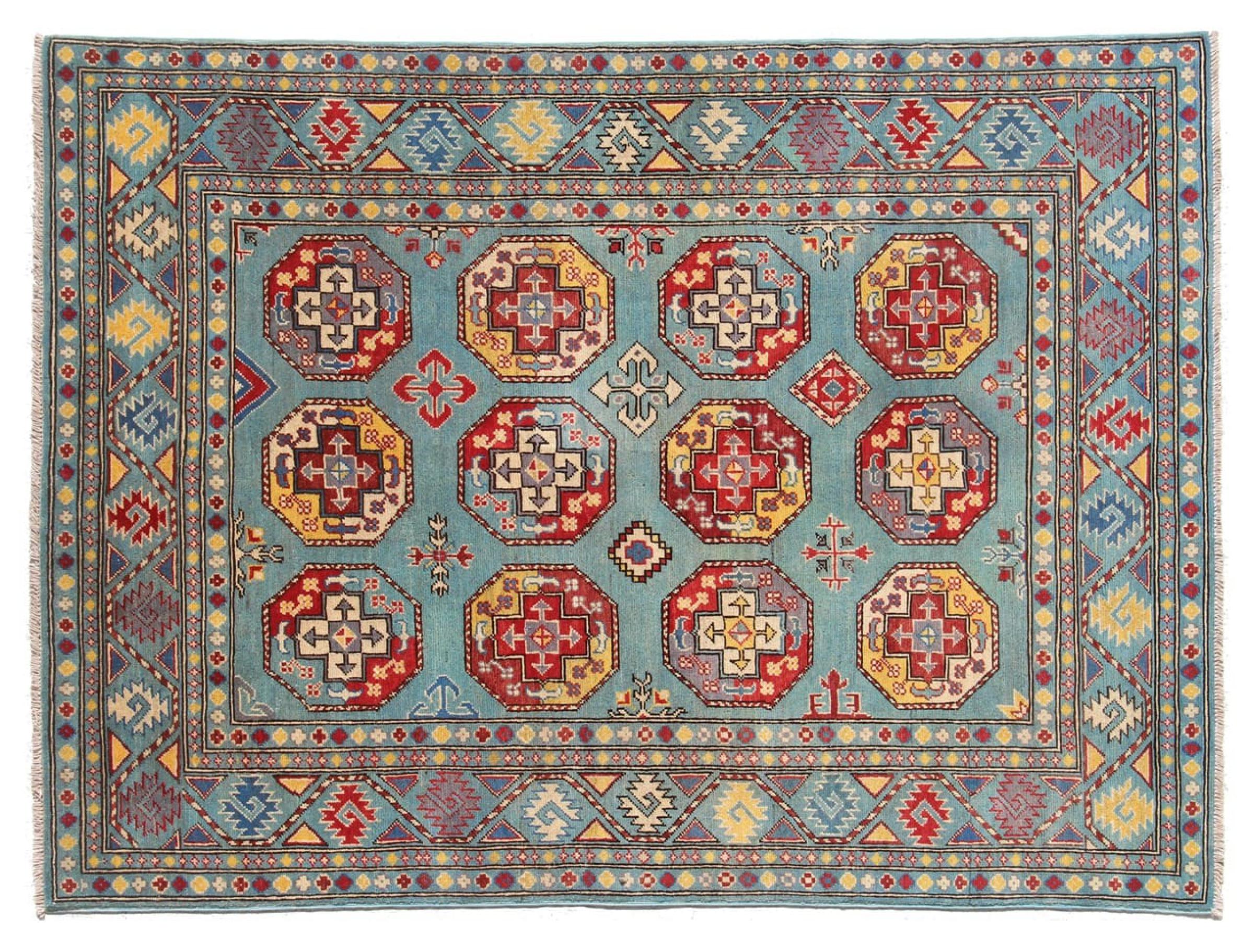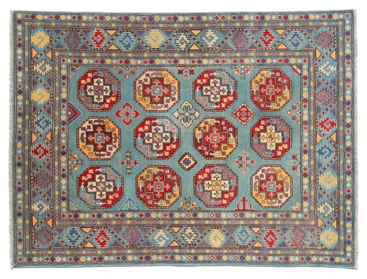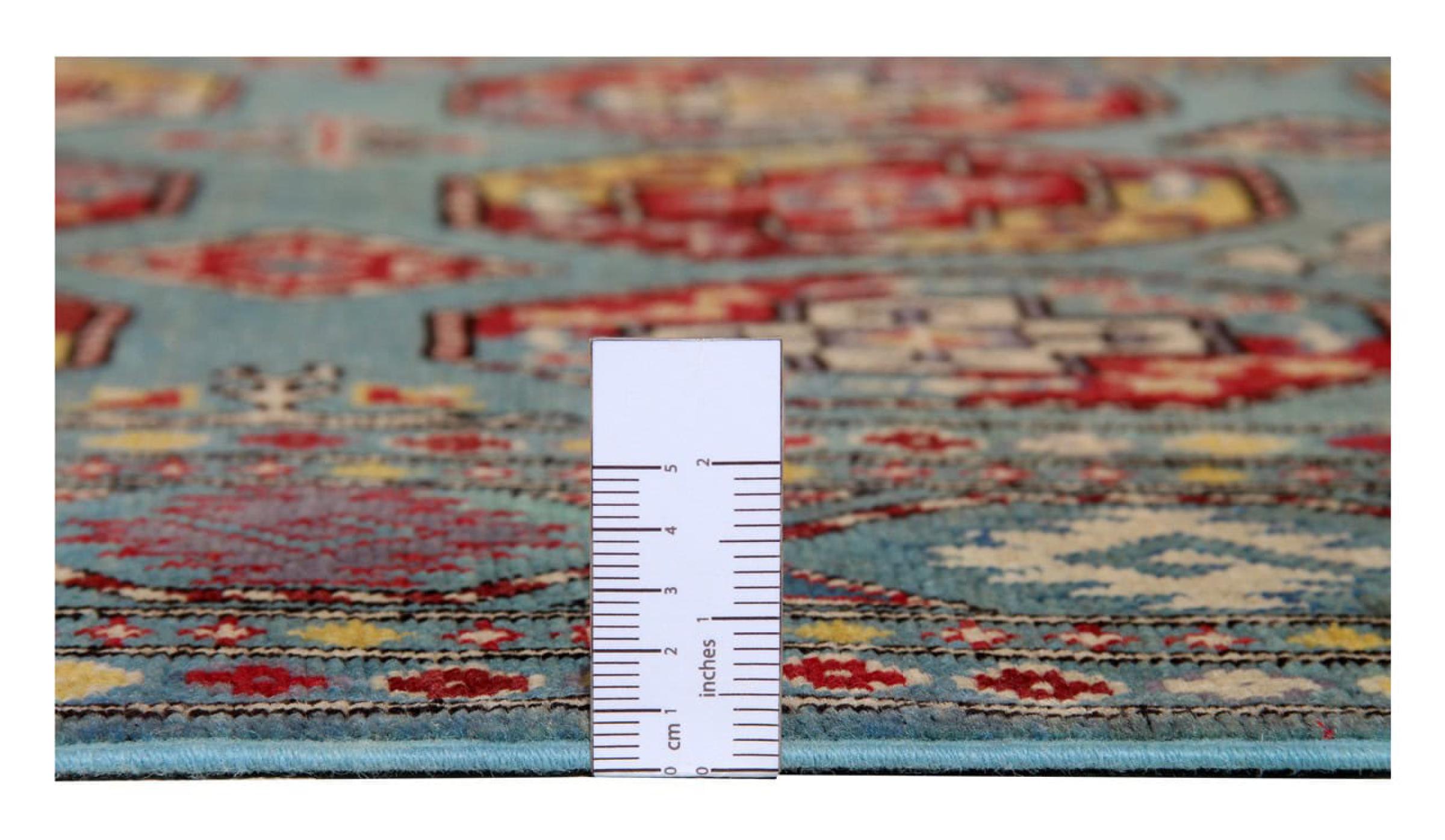 Esta alfombra Kazaka anudada a mano al estilo de las alfombras caucásicas convence por su gran robustez y sus vivos tonos. Así, refleja la cultura del Cáucaso en una bella composición. Una cultura que domina el arte de anudar alfombras desde hace siglos y que lo transmite al mundo exterior con formas encantadoramente sencillas en colores impresionantemente vivos.
