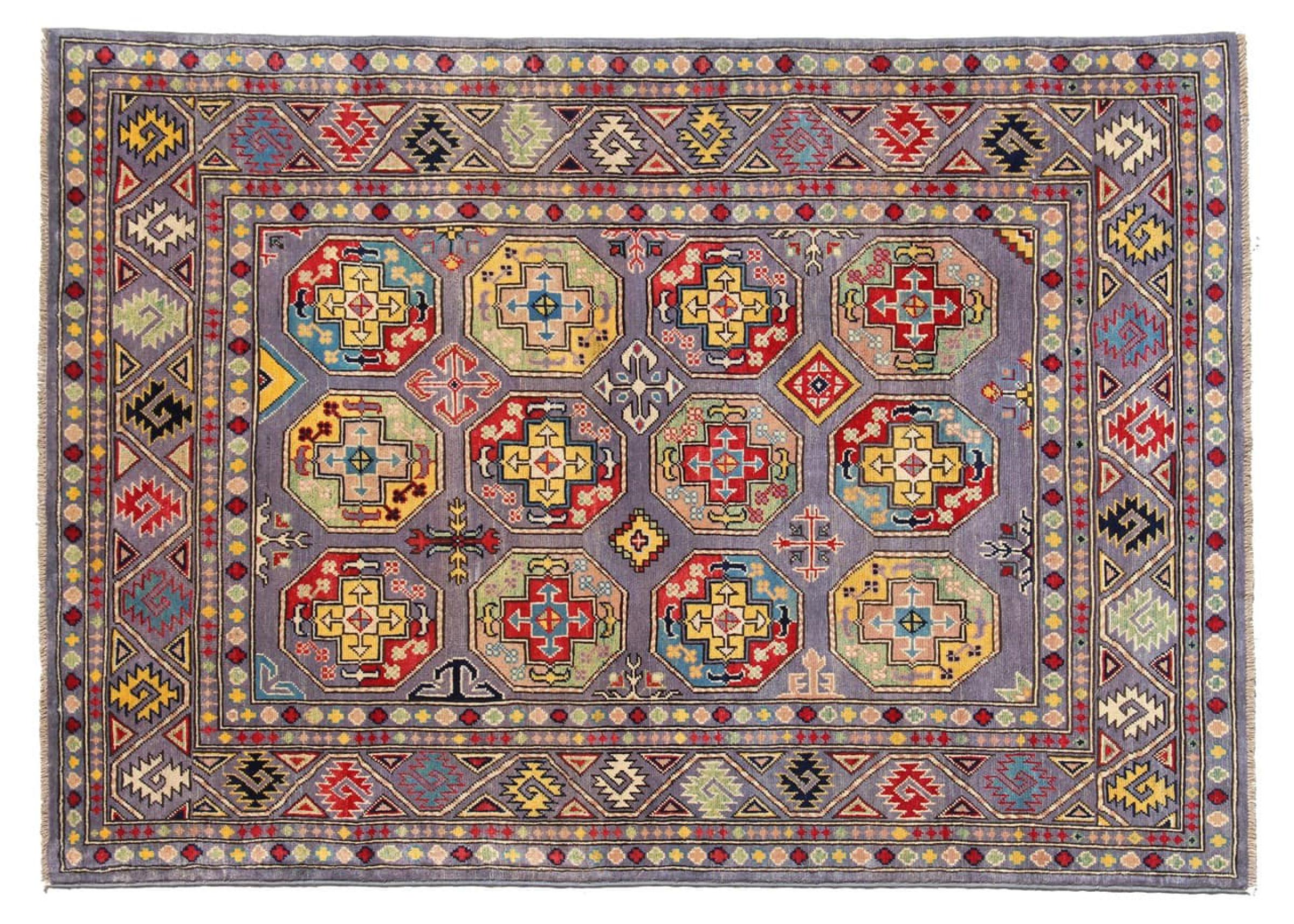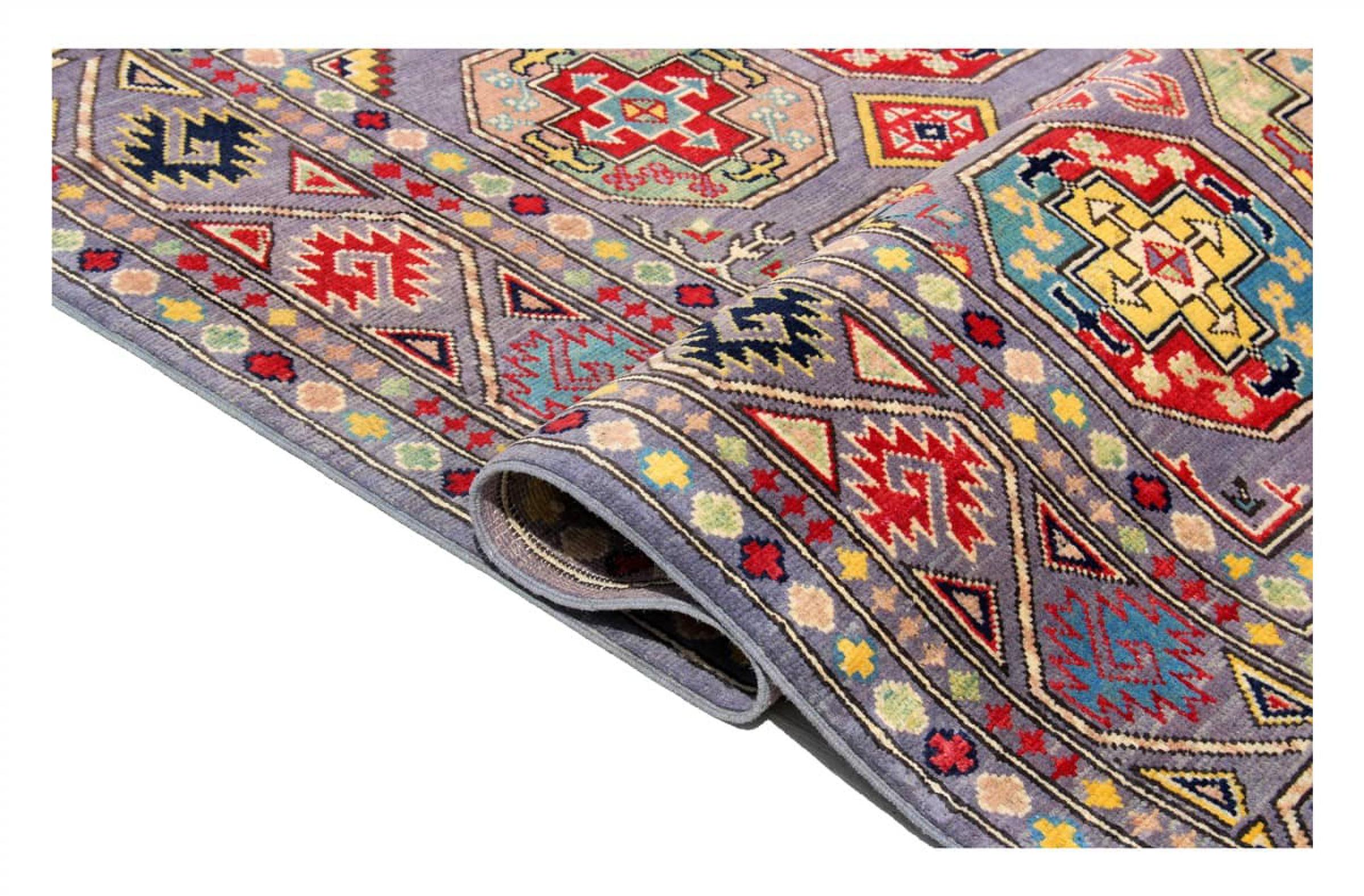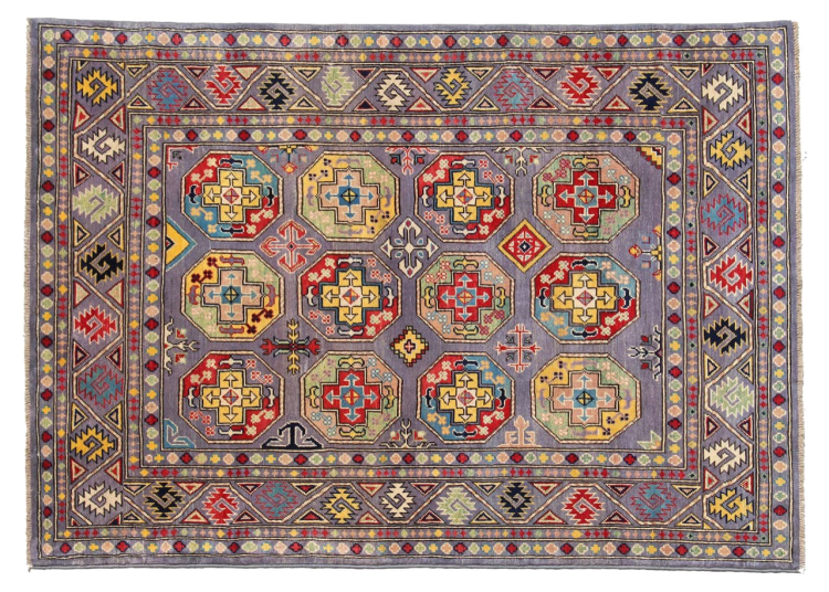 Esta alfombra Kazaka anudada a mano al estilo de las alfombras caucásicas convence por su gran robustez y sus vivos tonos. Así, refleja la cultura del Cáucaso en una bella composición. Una cultura que domina el arte de anudar alfombras desde hace siglos y que lo transmite al mundo exterior con formas encantadoramente sencillas en colores impresionantemente vivos.