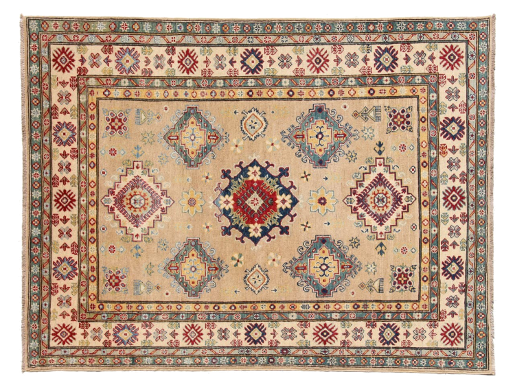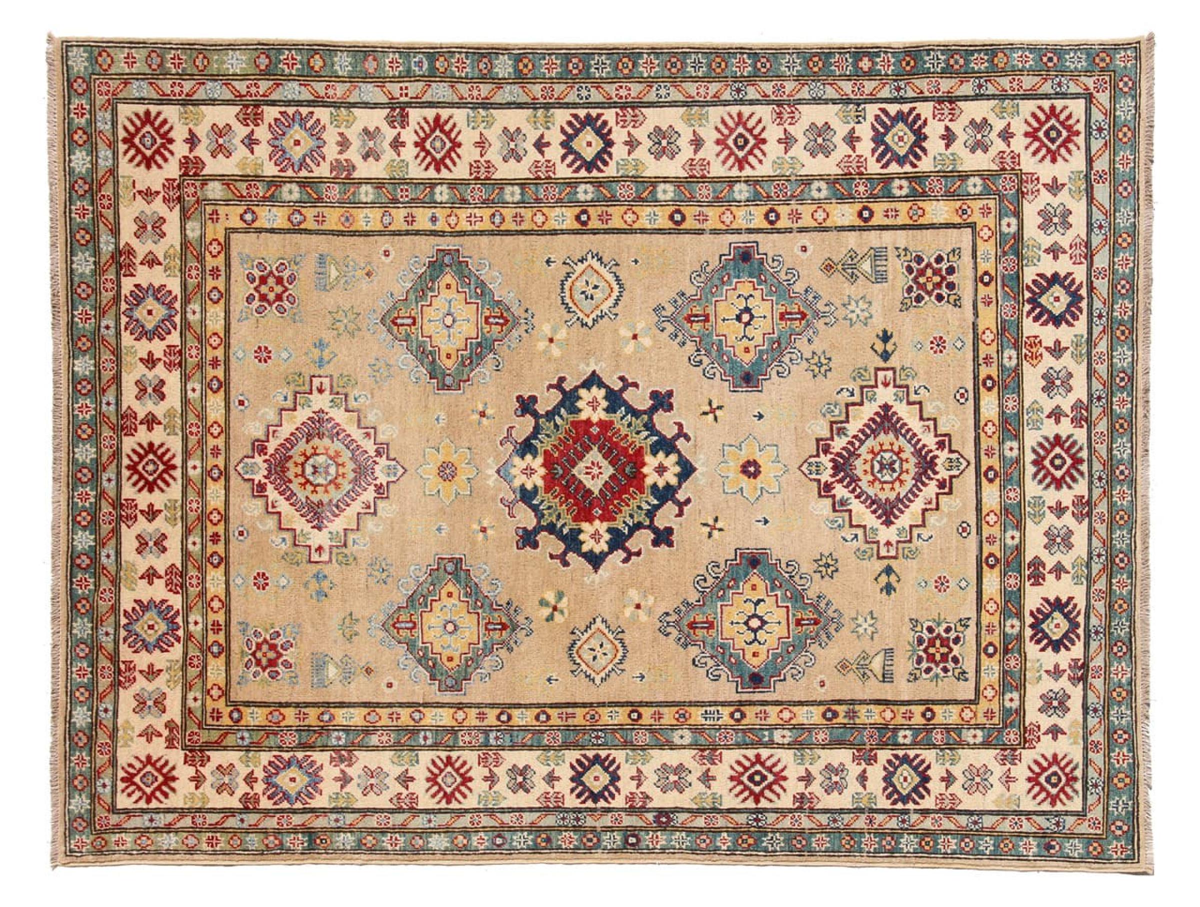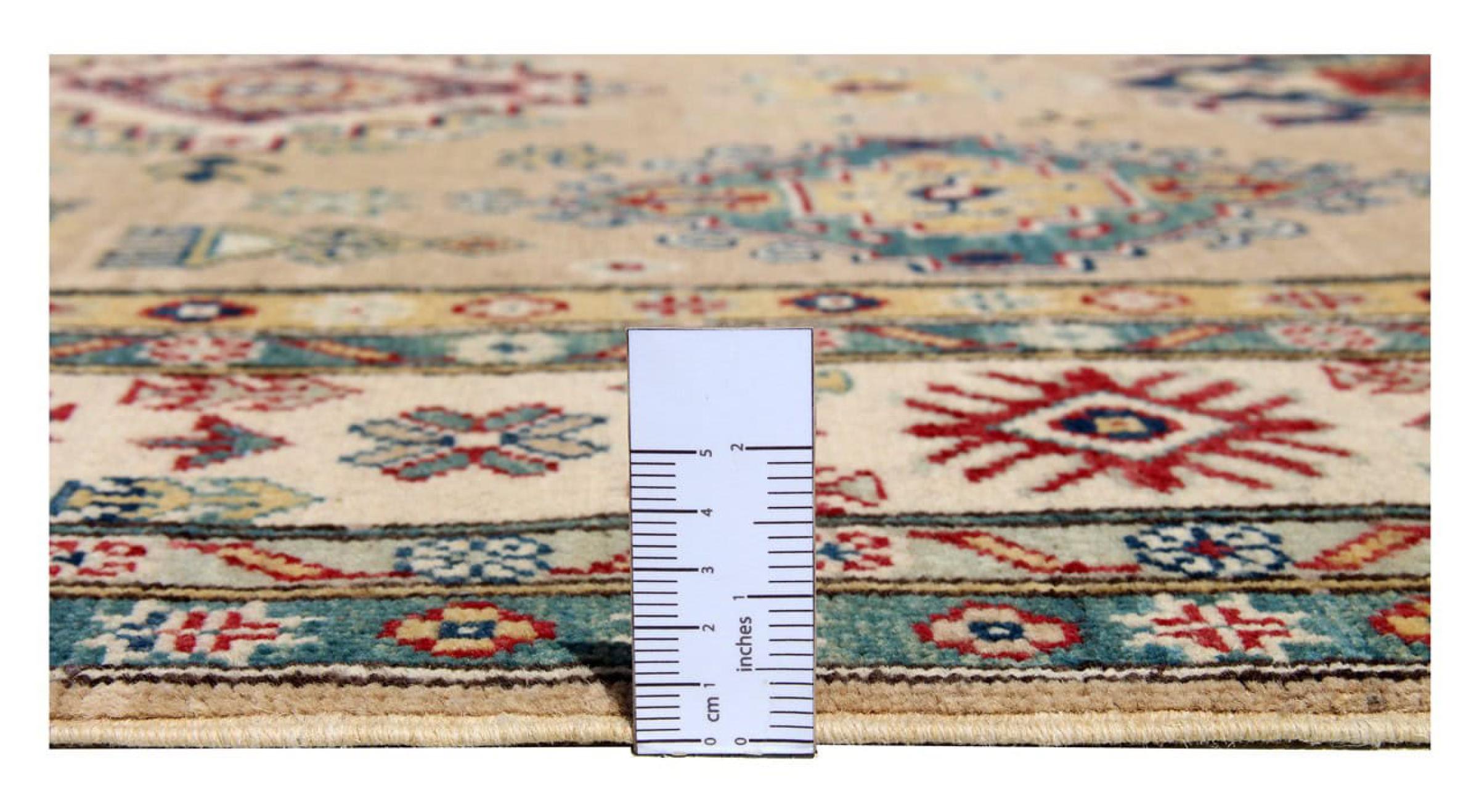 Esta alfombra Kazaka anudada a mano al estilo de las alfombras caucásicas convence por su gran robustez y sus vivos tonos. Así, refleja la cultura del Cáucaso en una bella composición. Una cultura que domina el arte de anudar alfombras desde hace siglos y que lo transmite al mundo exterior con formas encantadoramente sencillas en colores impresionantemente vivos.
