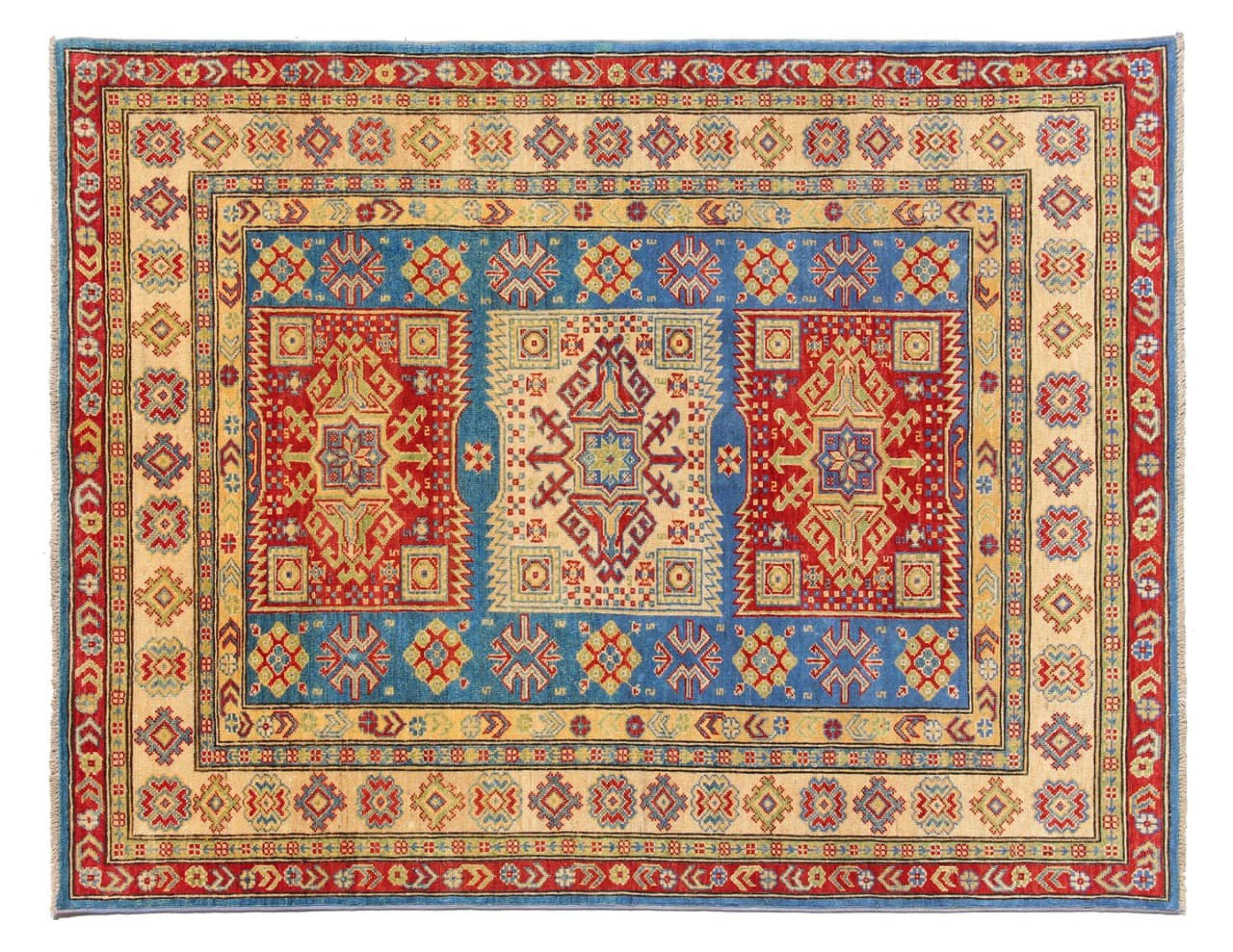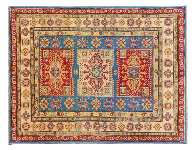 Esta alfombra Kazaka anudada a mano al estilo de las alfombras caucásicas convence por su gran robustez y sus vivos tonos. Así, refleja la cultura del Cáucaso en una bella composición. Una cultura que domina el arte de anudar alfombras desde hace siglos y que lo transmite al mundo exterior con formas encantadoramente sencillas en colores impresionantemente vivos.