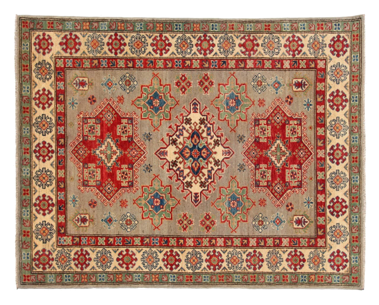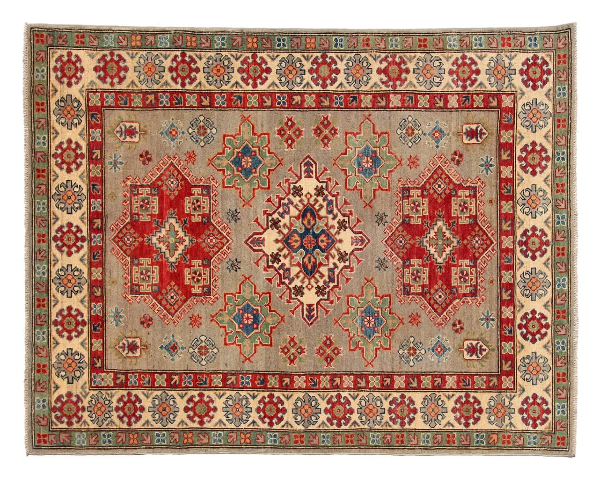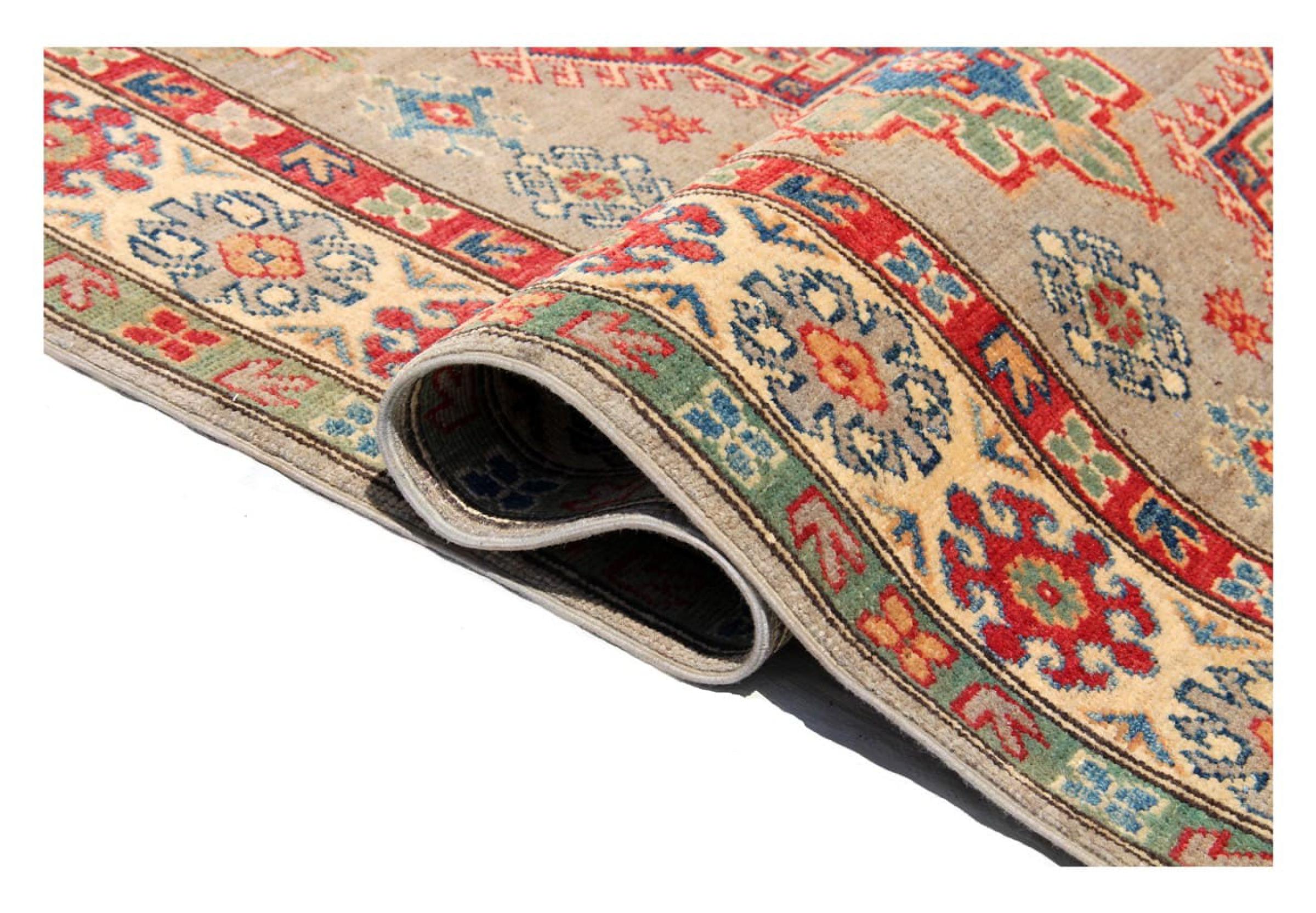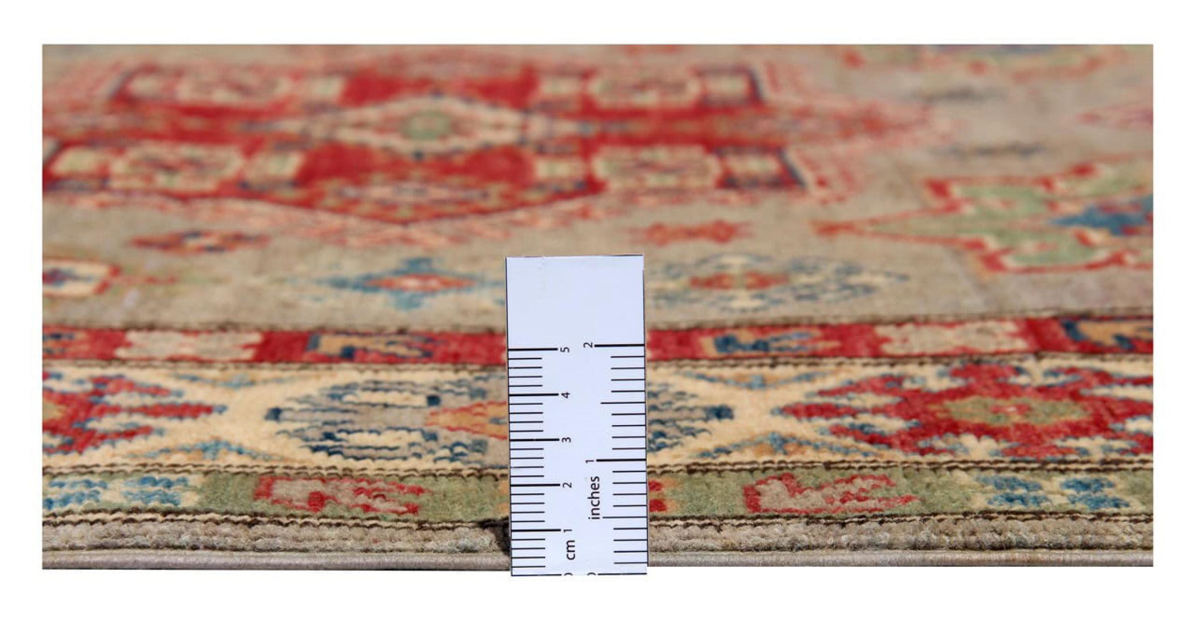 Esta alfombra Kazaka anudada a mano al estilo de las alfombras caucásicas convence por su gran robustez y sus vivos tonos. Así, refleja la cultura del Cáucaso en una bella composición. Una cultura que domina el arte de anudar alfombras desde hace siglos y que lo transmite al mundo exterior con formas encantadoramente sencillas en colores impresionantemente vivos.