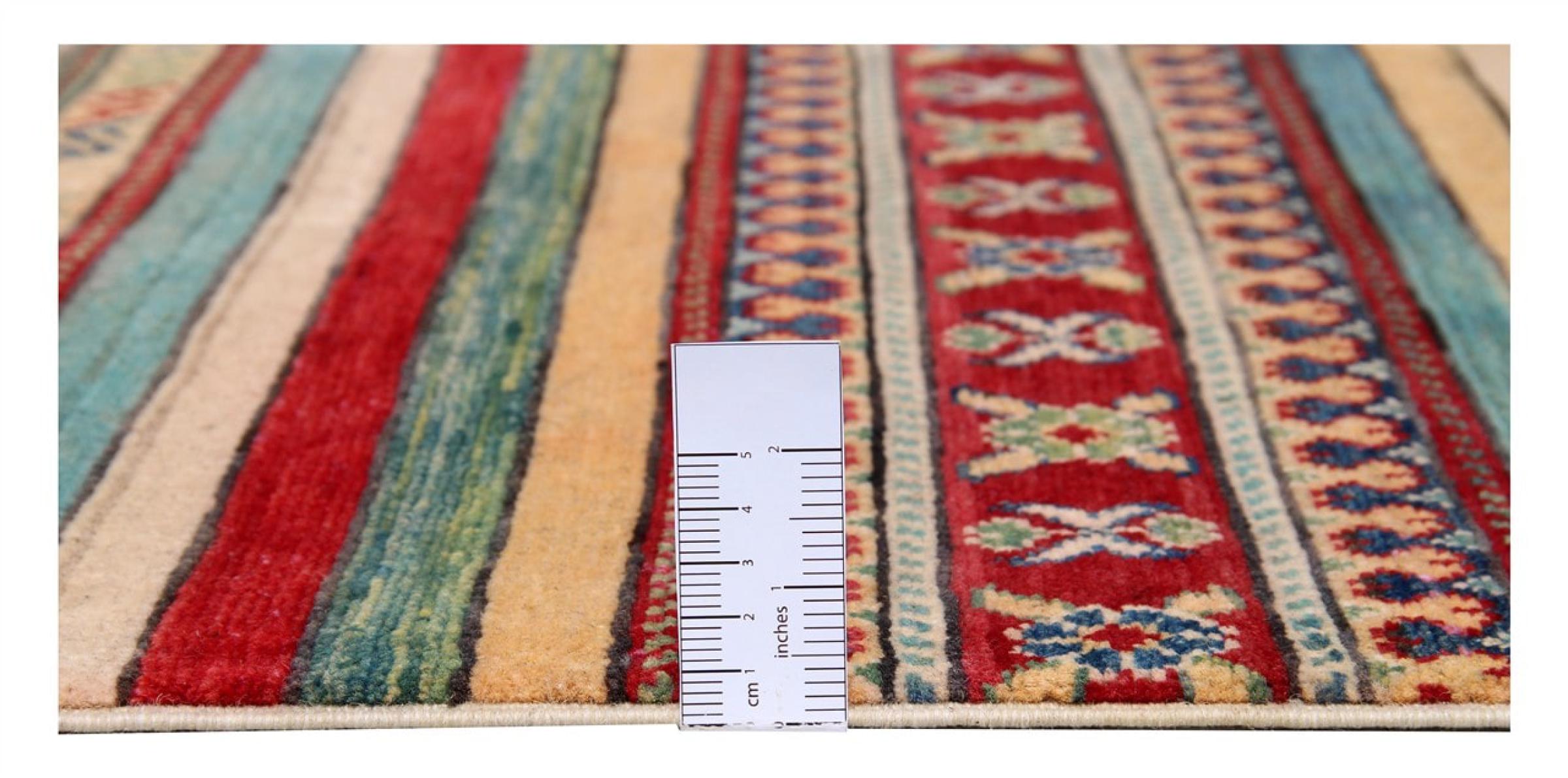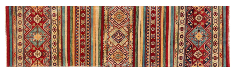 Esta alfombra Kazaka anudada a mano al estilo de las alfombras caucásicas convence por su gran robustez y sus vivos tonos. Así, refleja la cultura del Cáucaso en una bella composición. Una cultura que domina el arte de anudar alfombras desde hace siglos y que lo transmite al mundo exterior con formas encantadoramente sencillas en colores impresionantemente vivos.