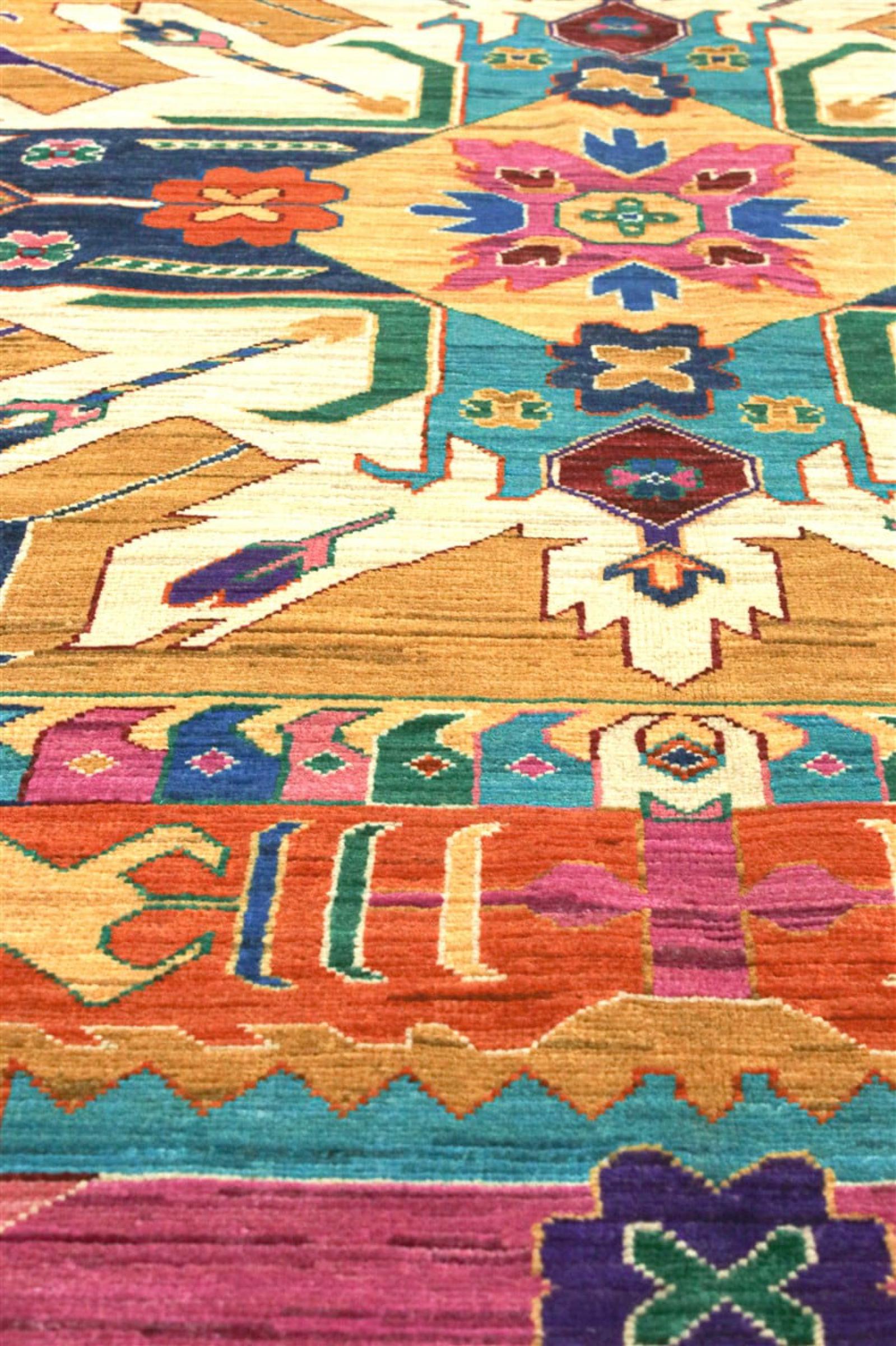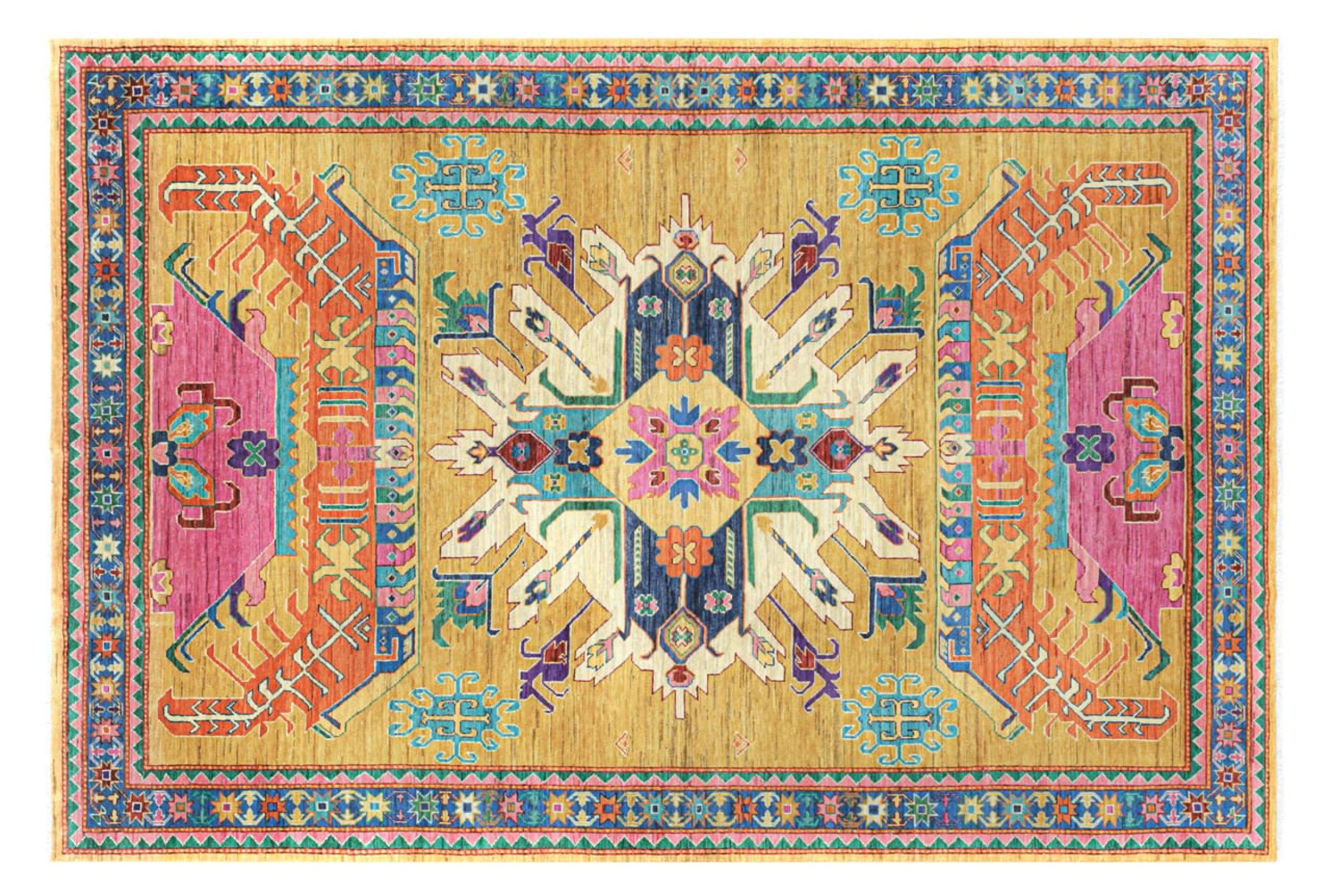 Esta alfombra Kazaka anudada a mano al estilo de las alfombras caucásicas convence por su gran robustez y sus vivos tonos. Así, refleja la cultura del Cáucaso en una bella composición. Una cultura que domina el arte de anudar alfombras desde hace siglos y que lo transmite al mundo exterior con formas encantadoramente sencillas en colores impresionantemente vivos.