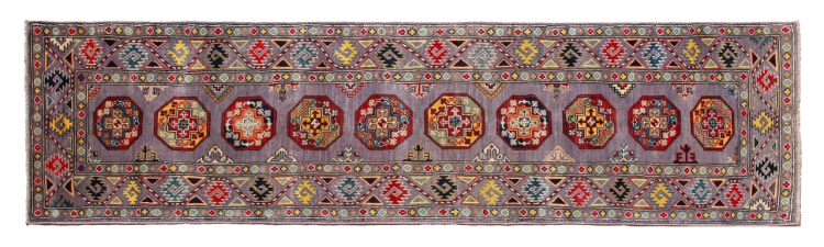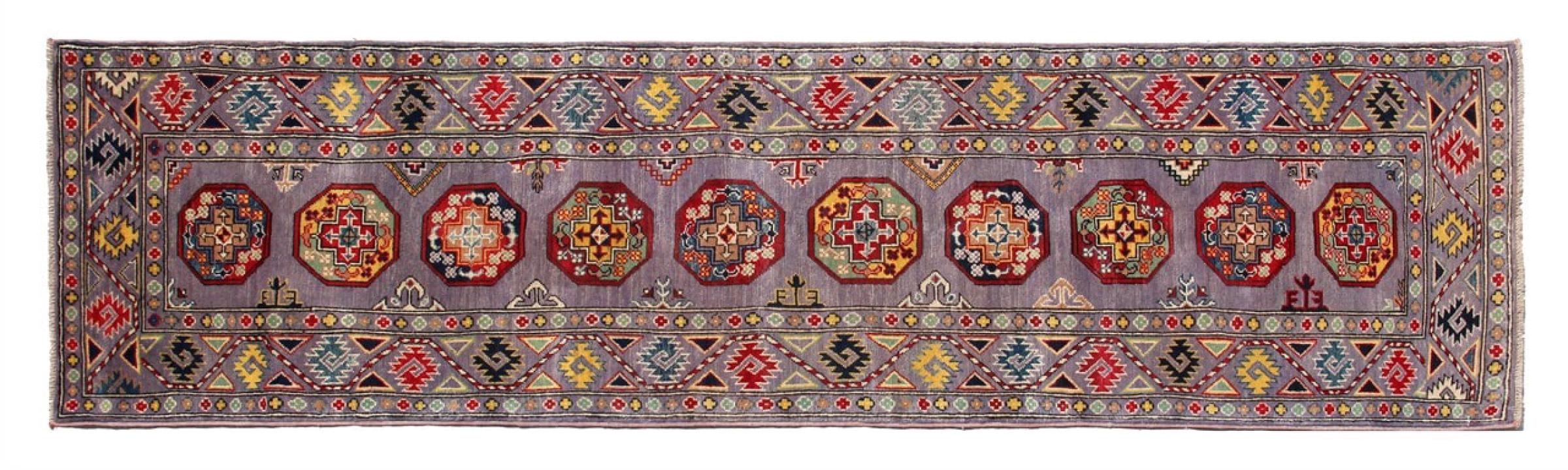 Esta alfombra Kazaka anudada a mano al estilo de las alfombras caucásicas convence por su gran robustez y sus vivos tonos. Así, refleja la cultura del Cáucaso en una bella composición. Una cultura que domina el arte de anudar alfombras desde hace siglos y que lo transmite al mundo exterior con formas encantadoramente sencillas en colores impresionantemente vivos.