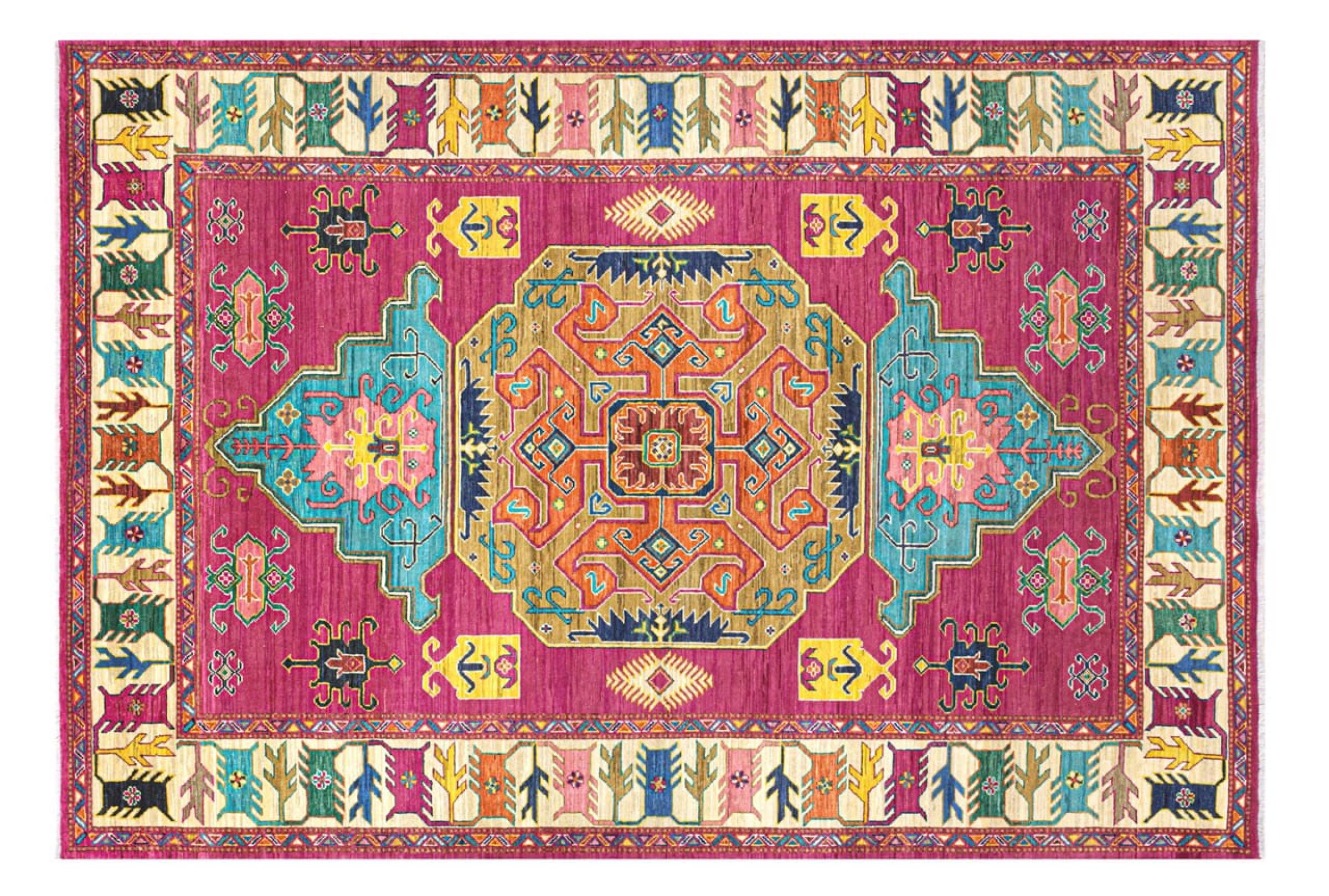 Esta alfombra Kazaka anudada a mano al estilo de las alfombras caucásicas convence por su gran robustez y sus vivos tonos. Así, refleja la cultura del Cáucaso en una bella composición. Una cultura que domina el arte de anudar alfombras desde hace siglos y que lo transmite al mundo exterior con formas encantadoramente sencillas en colores impresionantemente vivos.