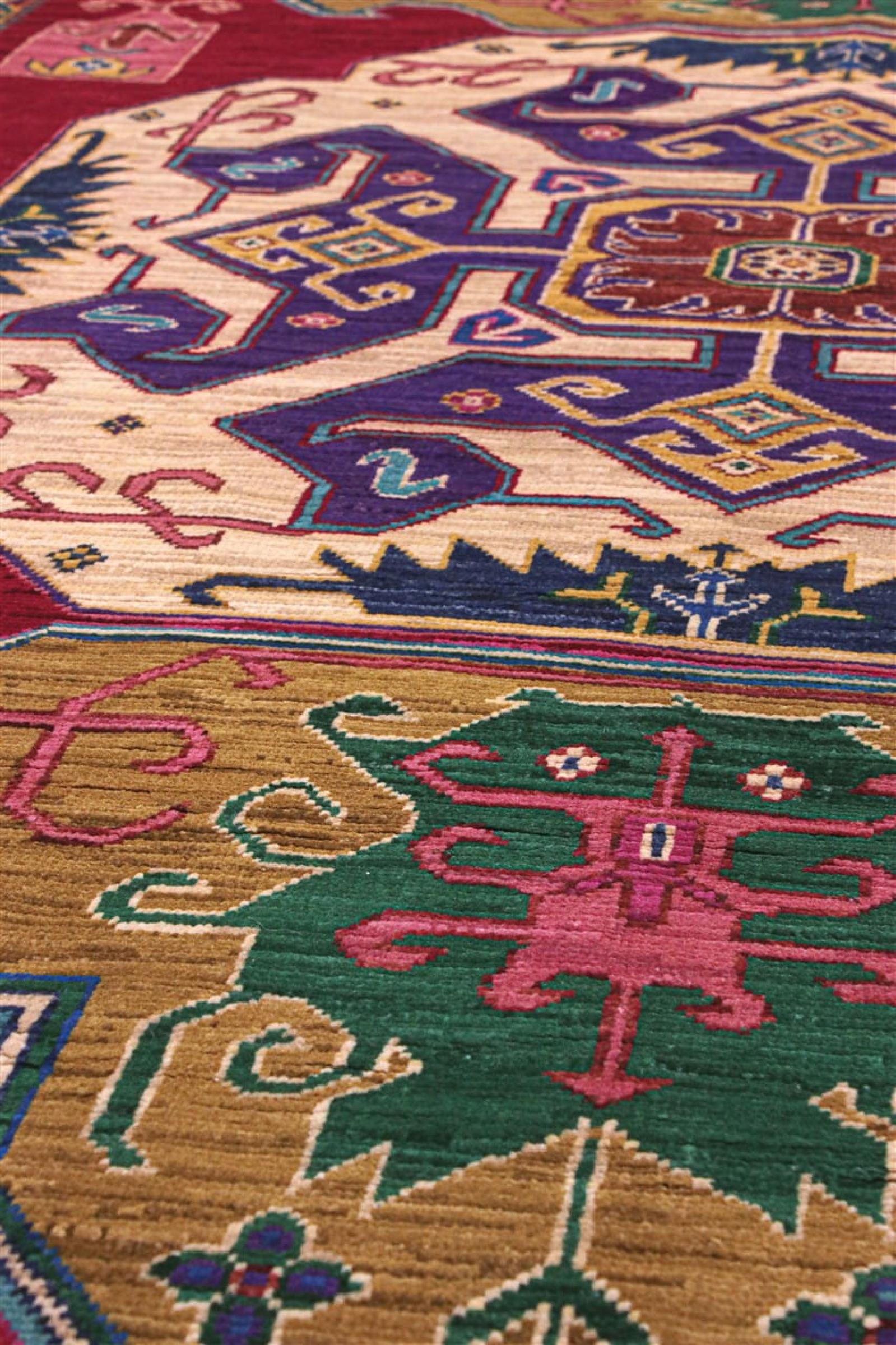 Esta alfombra Kazaka anudada a mano al estilo de las alfombras caucásicas convence por su gran robustez y sus vivos tonos. Así, refleja la cultura del Cáucaso en una bella composición. Una cultura que domina el arte de anudar alfombras desde hace siglos y que lo transmite al mundo exterior con formas encantadoramente sencillas en colores impresionantemente vivos.