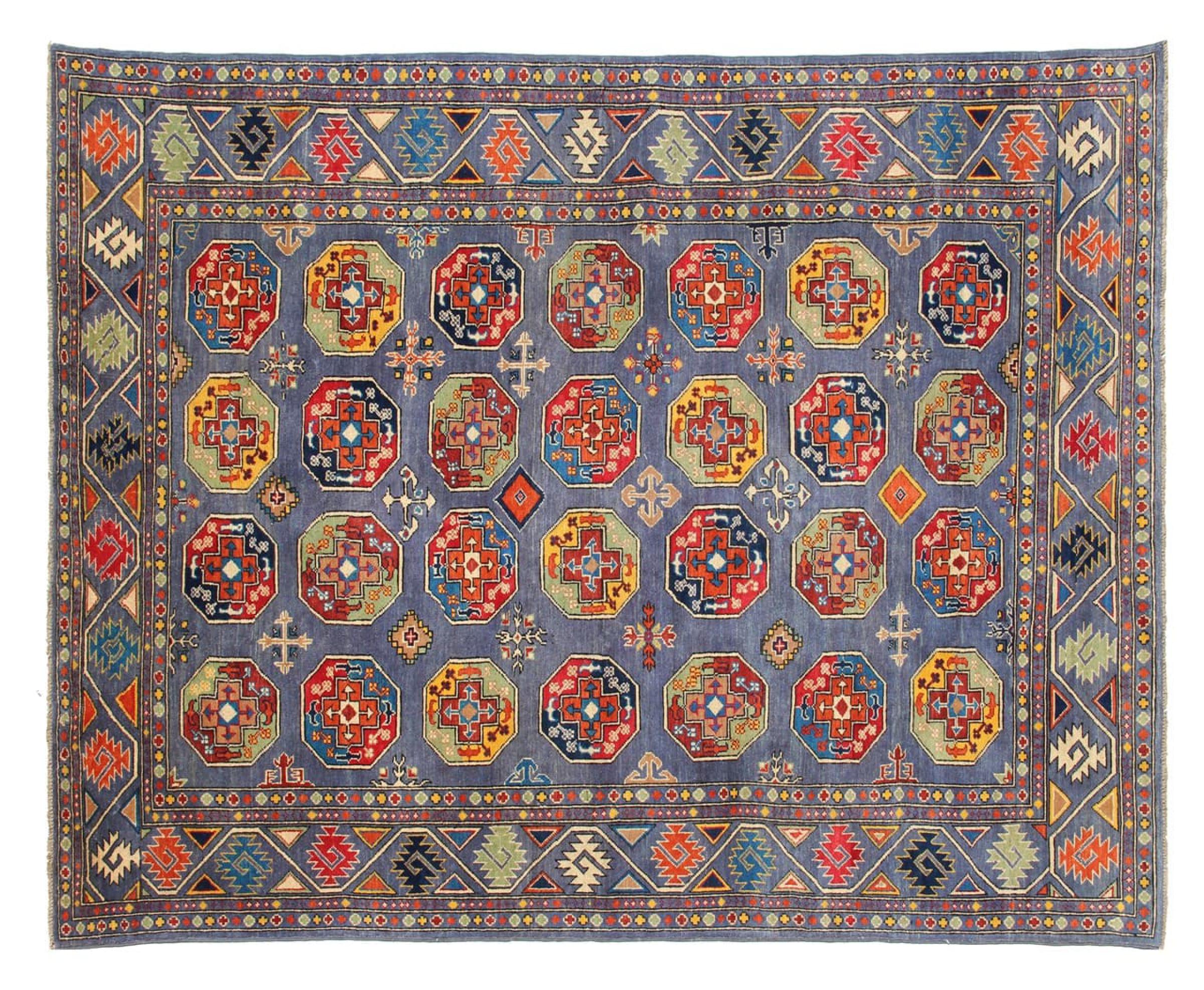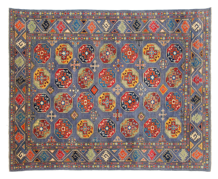 Esta alfombra Kazaka anudada a mano al estilo de las alfombras caucásicas convence por su gran robustez y sus vivos tonos. Así, refleja la cultura del Cáucaso en una bella composición. Una cultura que domina el arte de anudar alfombras desde hace siglos y que lo transmite al mundo exterior con formas encantadoramente sencillas en colores impresionantemente vivos.