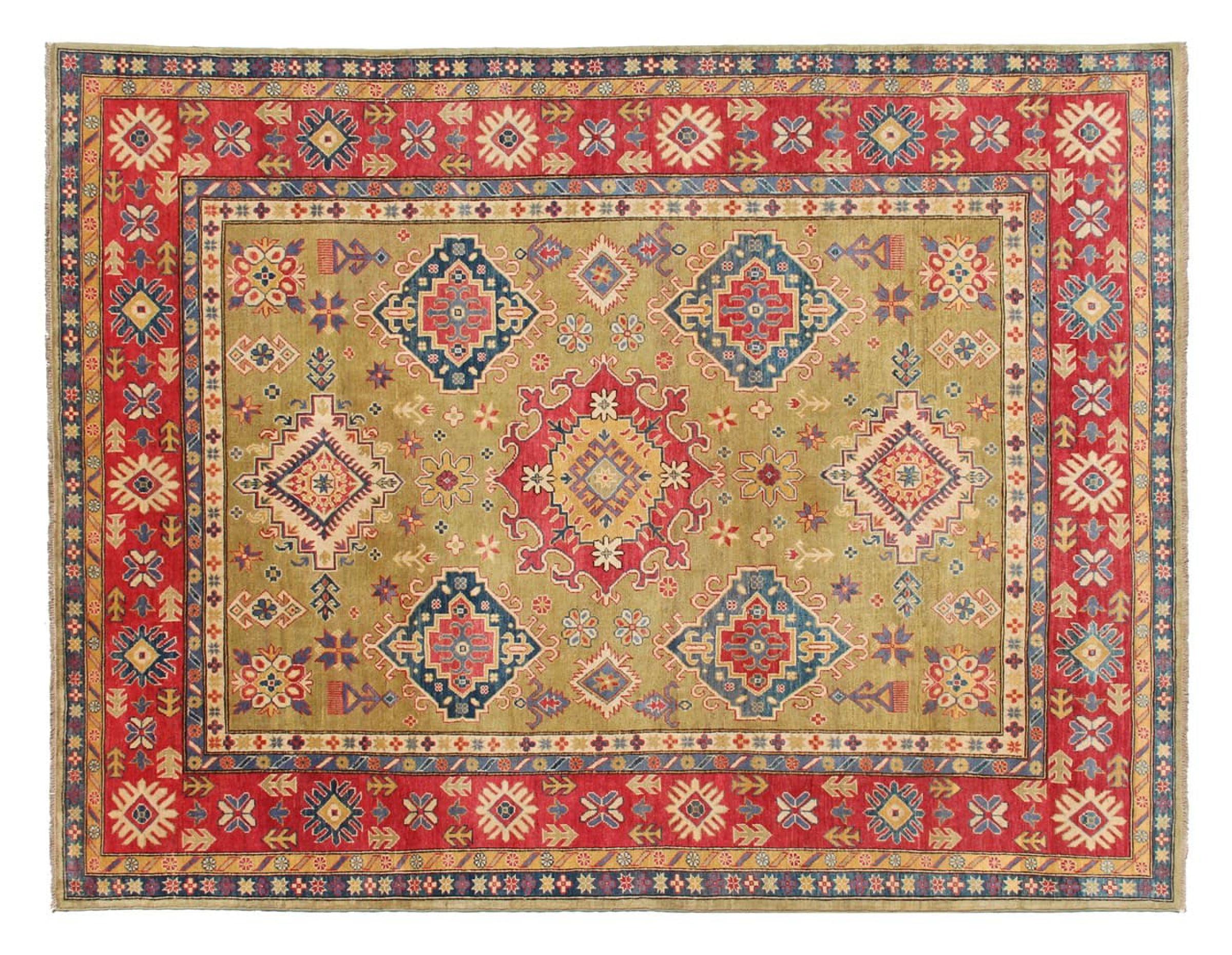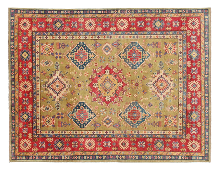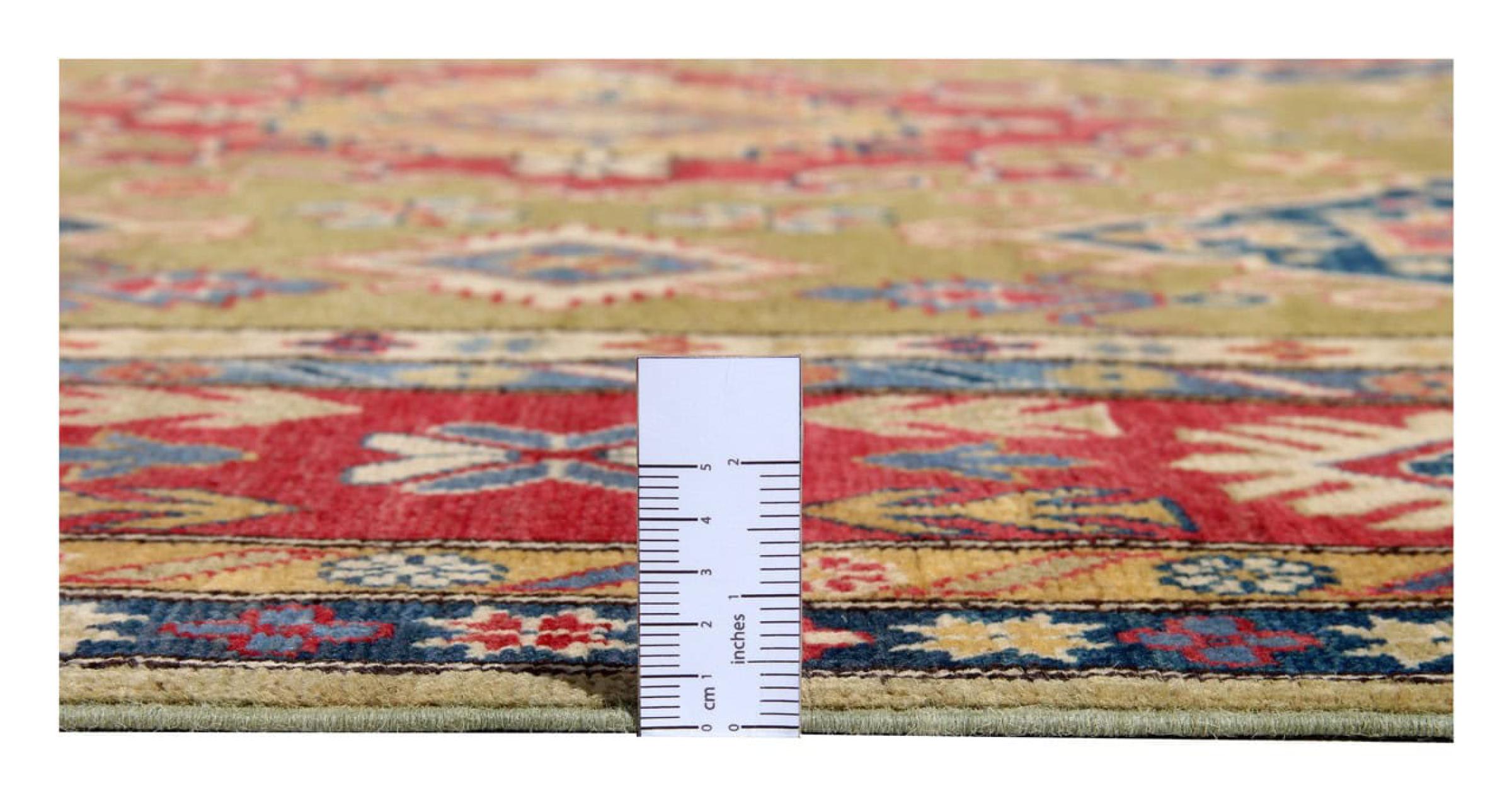 Esta alfombra Kazaka anudada a mano al estilo de las alfombras caucásicas convence por su gran robustez y sus vivos tonos. Así, refleja la cultura del Cáucaso en una bella composición. Una cultura que domina el arte de anudar alfombras desde hace siglos y que lo transmite al mundo exterior con formas encantadoramente sencillas en colores impresionantemente vivos.