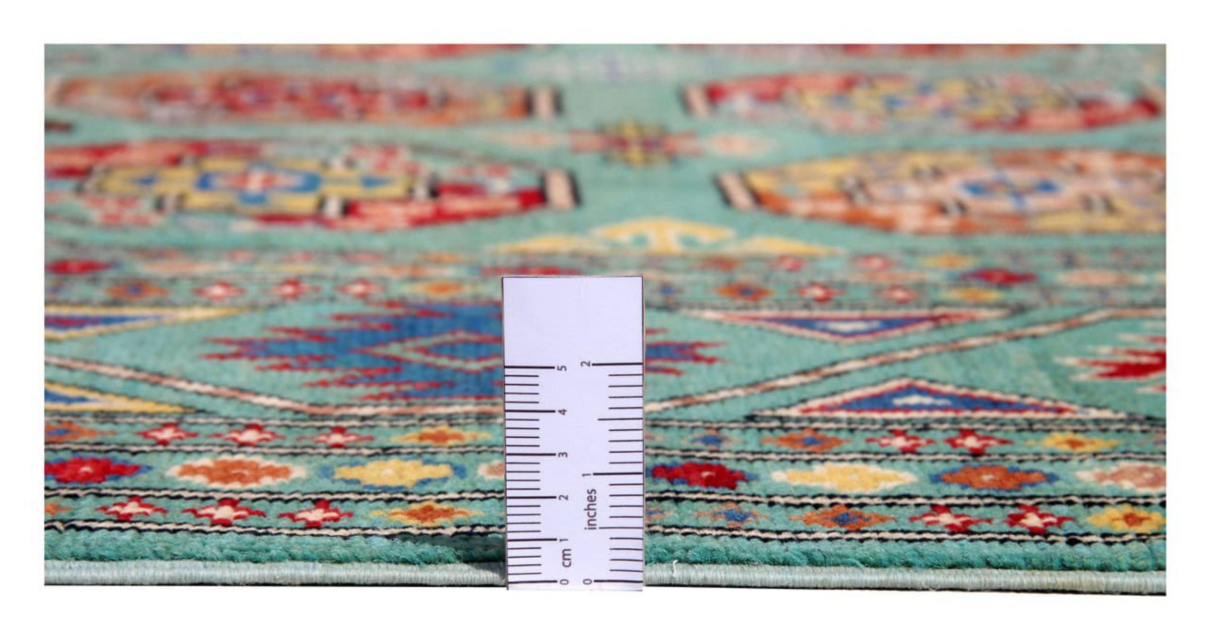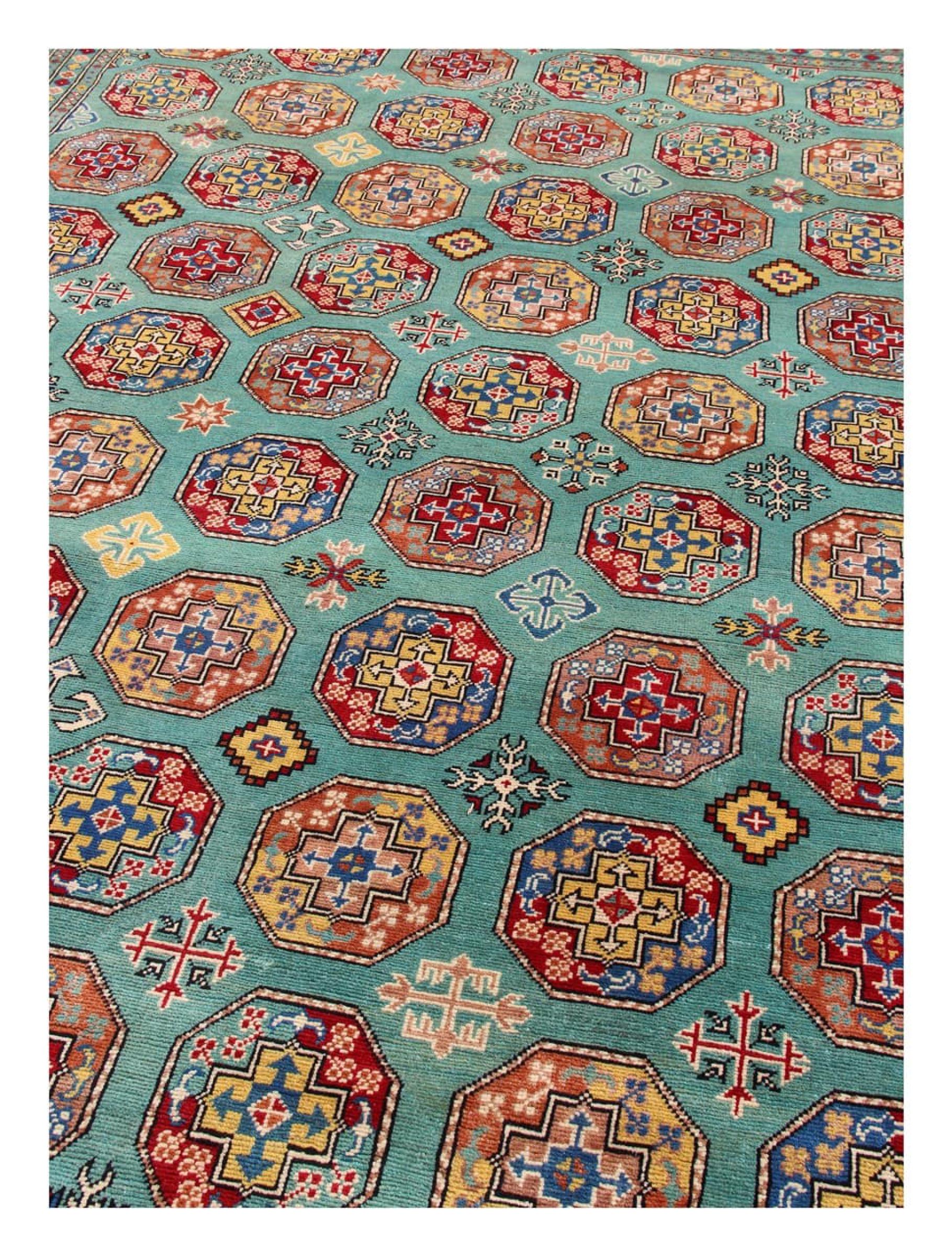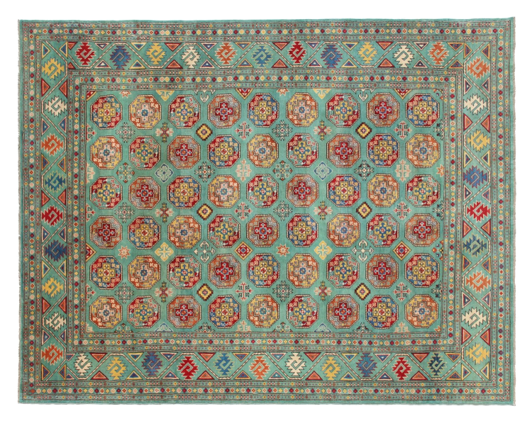 Esta alfombra Kazaka anudada a mano al estilo de las alfombras caucásicas convence por su gran robustez y sus vivos tonos. Así, refleja la cultura del Cáucaso en una bella composición. Una cultura que domina el arte de anudar alfombras desde hace siglos y que lo transmite al mundo exterior con formas encantadoramente sencillas en colores impresionantemente vivos.