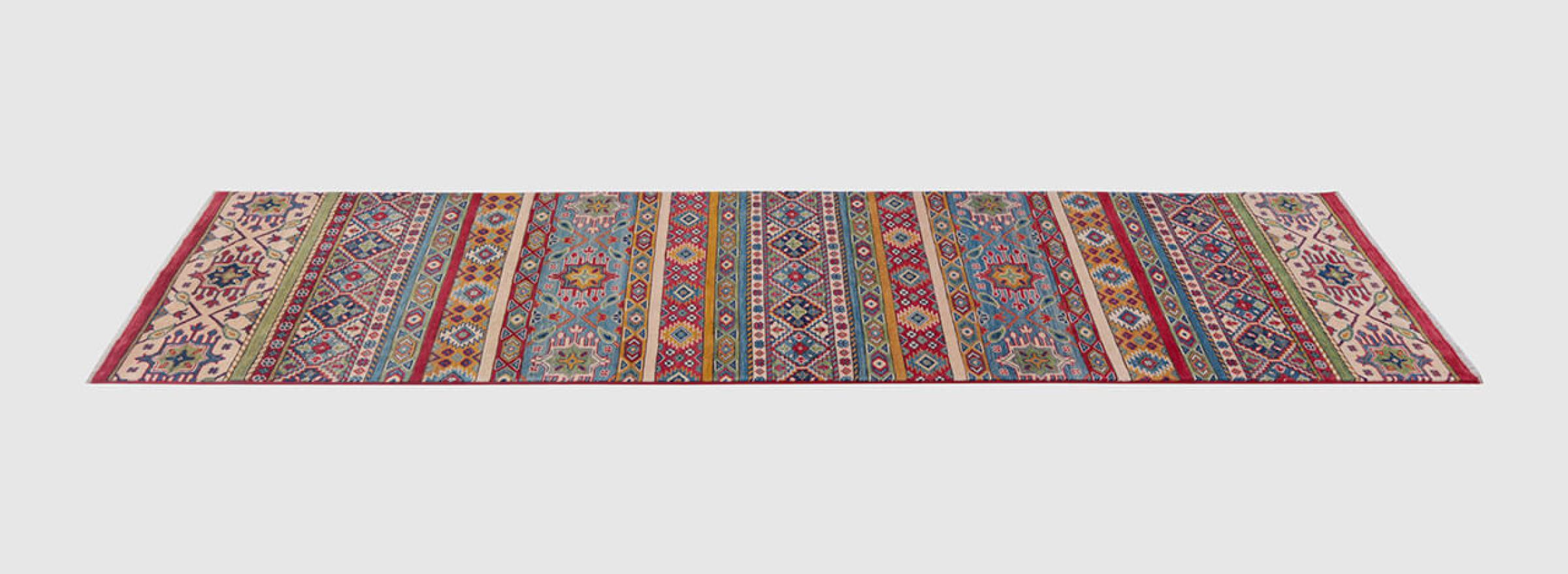 Alfombra número: 315344007200683 Tamaño: 368x80 cm Espesor: alrededor de 6 mm Nudos: 120 000 - 150 000 / m² Elaboración: Anudado a mano Crespón: Lana hilada a mano Urdimbre: Algodón Origen: Pakistán Edad: Nuevo Peso: alrededor de 10 kg Cantidad en stock: Única - Solo 1 en stock