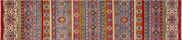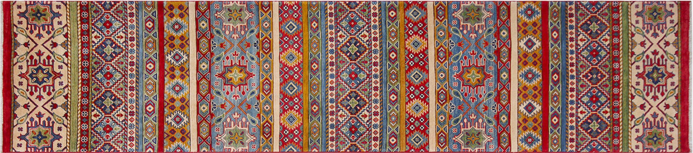 Esta alfombra Kazaka anudada a mano al estilo de las alfombras caucásicas convence por su gran robustez y sus vivos tonos. Así, refleja la cultura del Cáucaso en una bella composición. Una cultura que domina el arte de anudar alfombras desde hace siglos y que lo transmite al mundo exterior con formas encantadoramente sencillas en colores impresionantemente vivos.